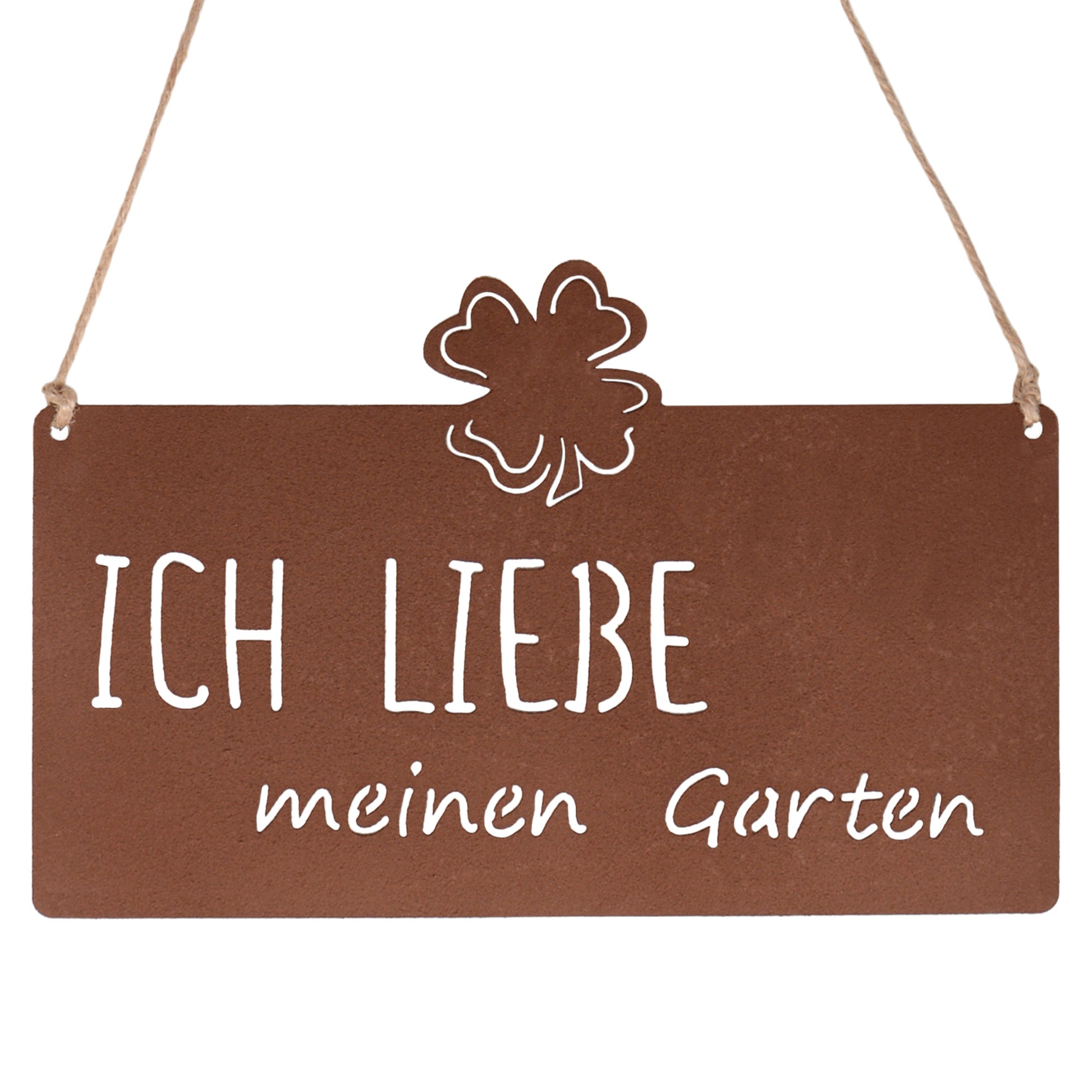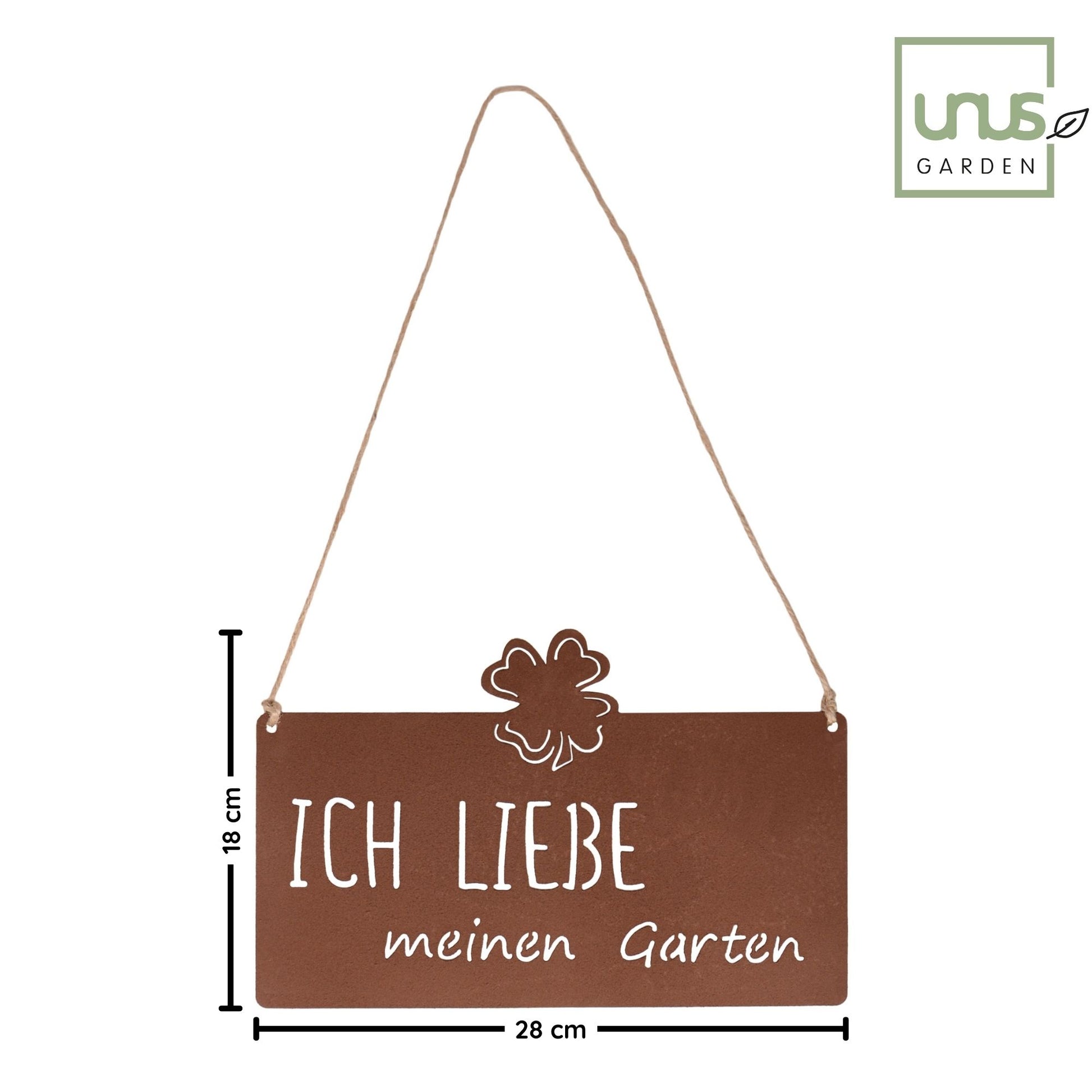 UNUS Gartenschild Ich liebe meinen Garten – dekoratives Metallschild in Rostoptik