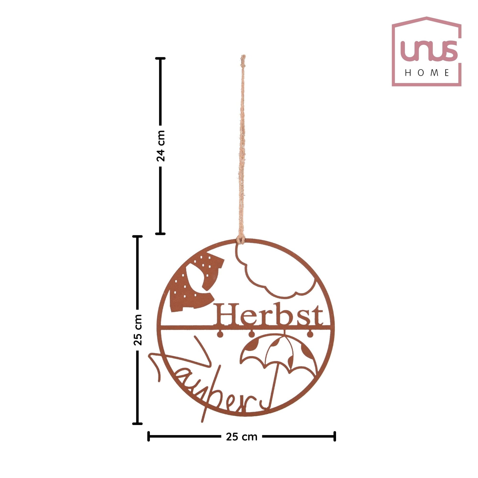 Gefertigt aus robustem Metall eignet sich der Anhänger sowohl für den Innen- als auch den geschützten Außenbereich – zum Beispiel an der Haustür, auf dem Balkon oder im Wintergarten.