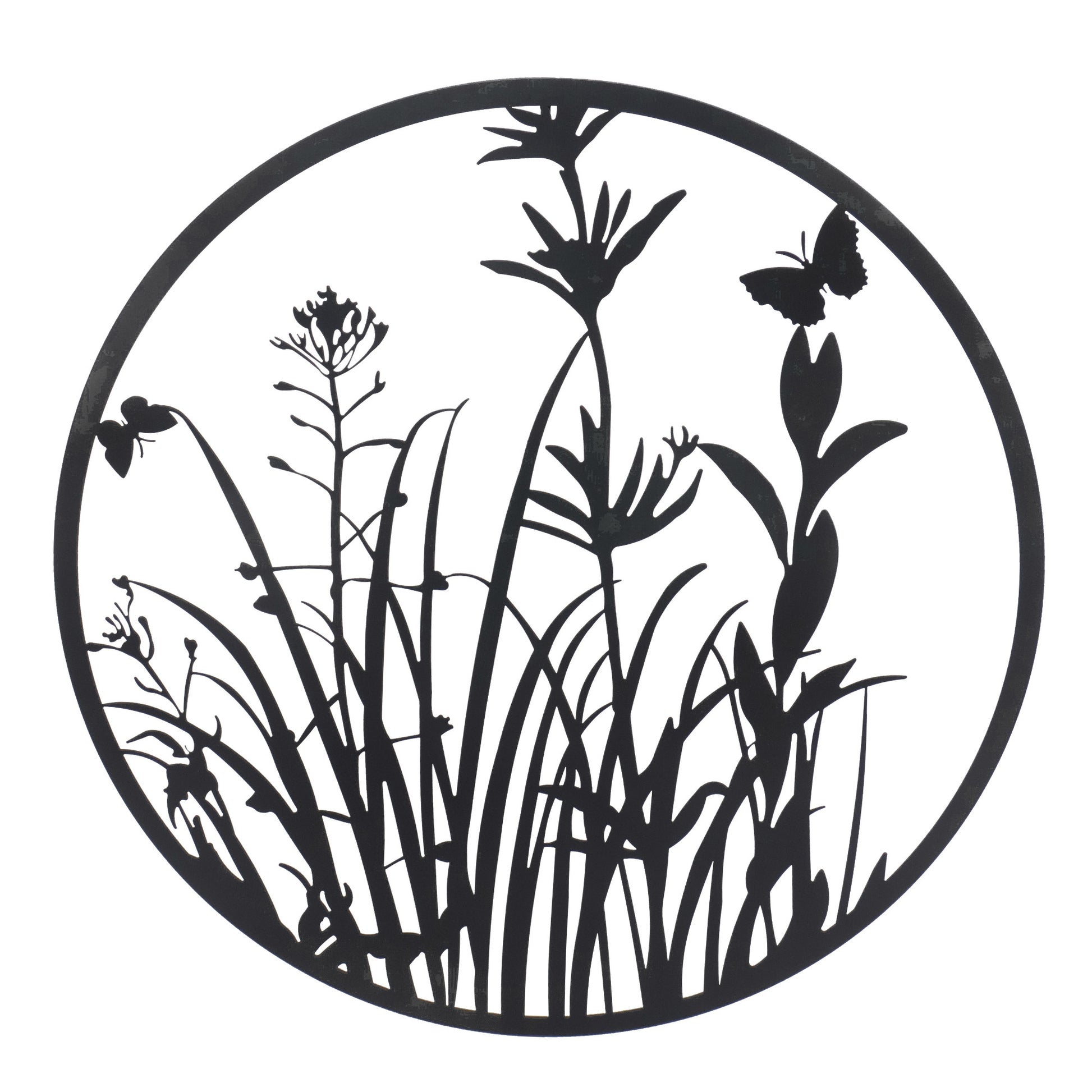 UNUS® Metall-Aufhänger Pflanzenmotiv – runde Wanddeko in Schwarz