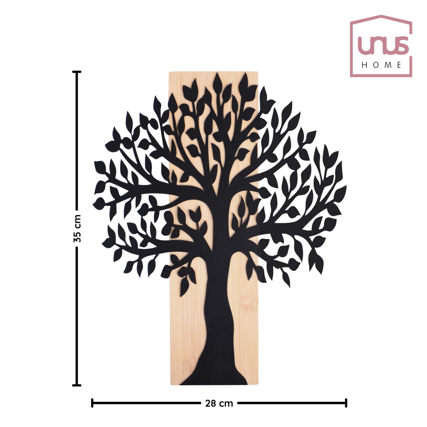 UNUS® Wanddeko Metallbaum auf Bambusbrett – der Baum des Lebens in Schwarz oder Rost