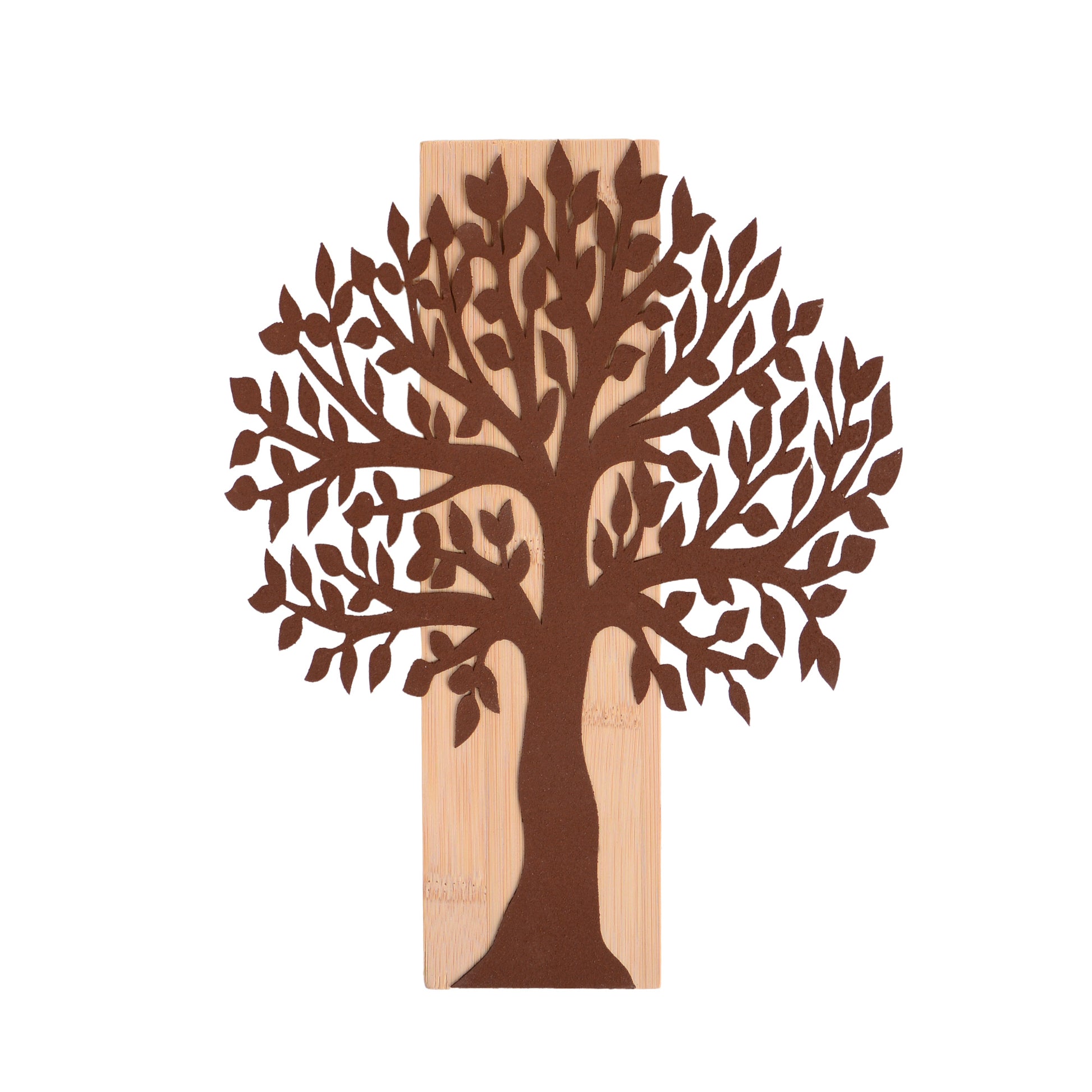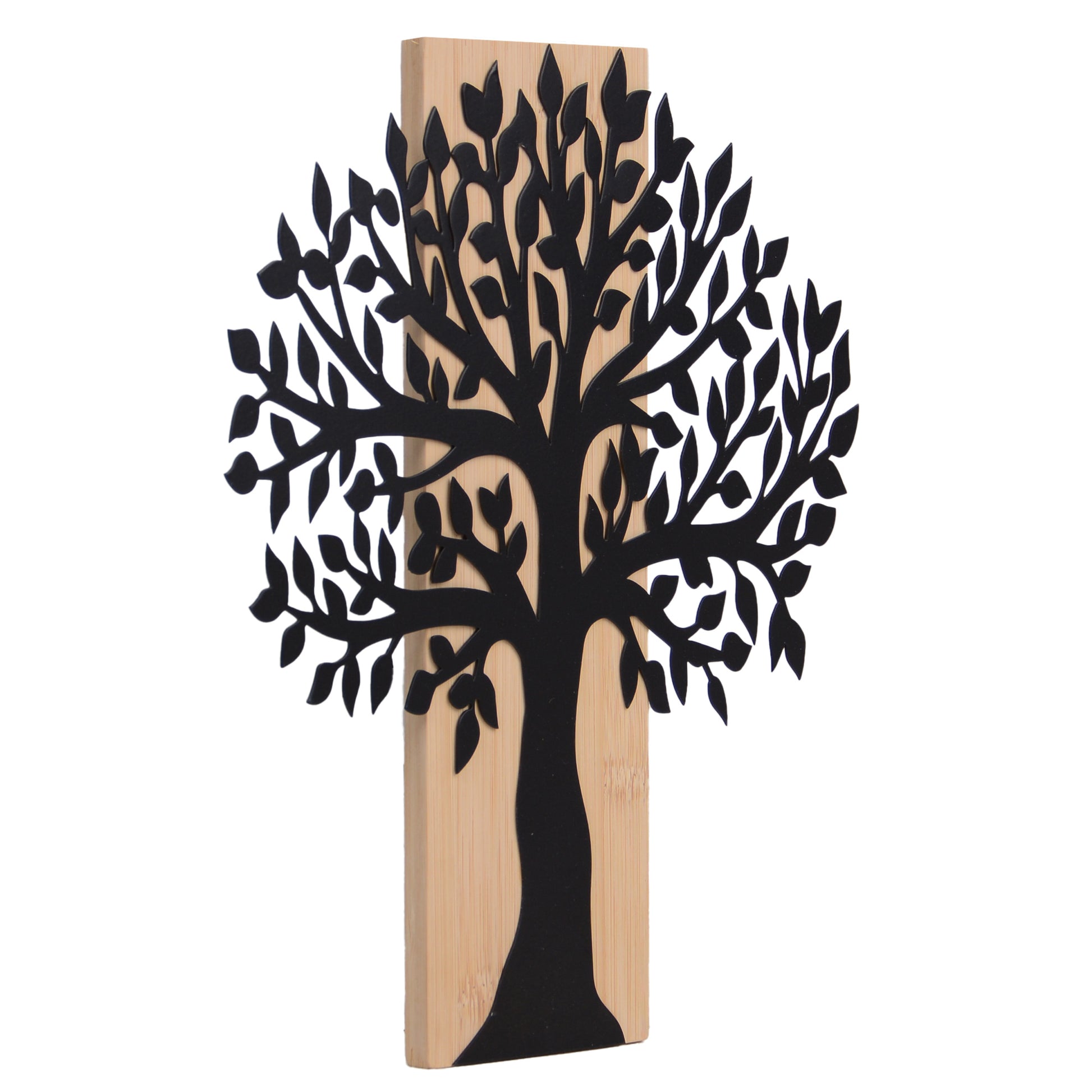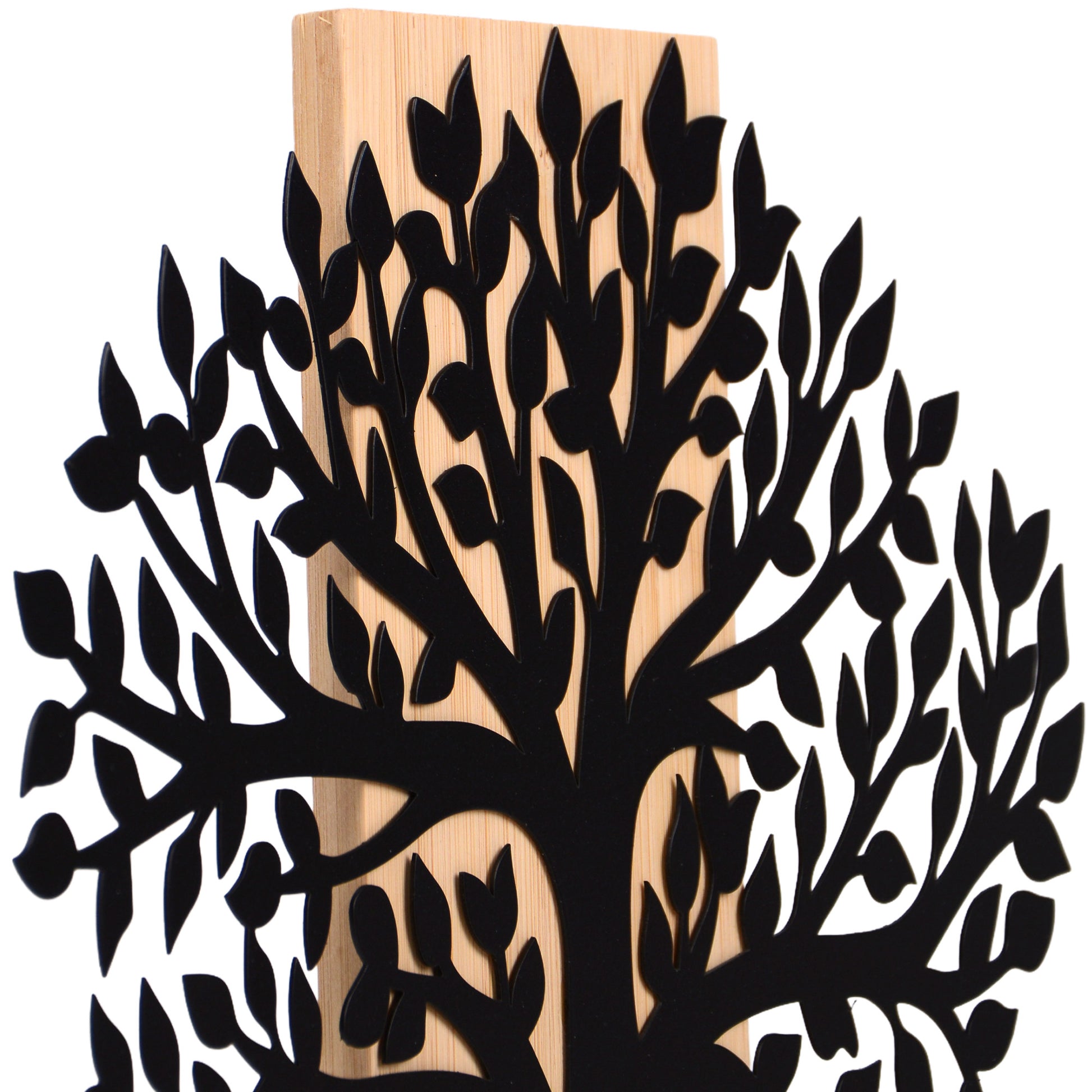 Verleihen Sie Ihren Räumen eine besondere Ausstrahlung mit dieser kunstvollen Wanddekoration. Der detailreiche Baum ist aus Metall gefertigt und auf einem hochwertigen Bambusbrett befestigt. Die Kombination aus schwarzem oder rostfarbenem Metall und natürlichem Bambus bringt Eleganz und Harmonie in jedes Zuhause.