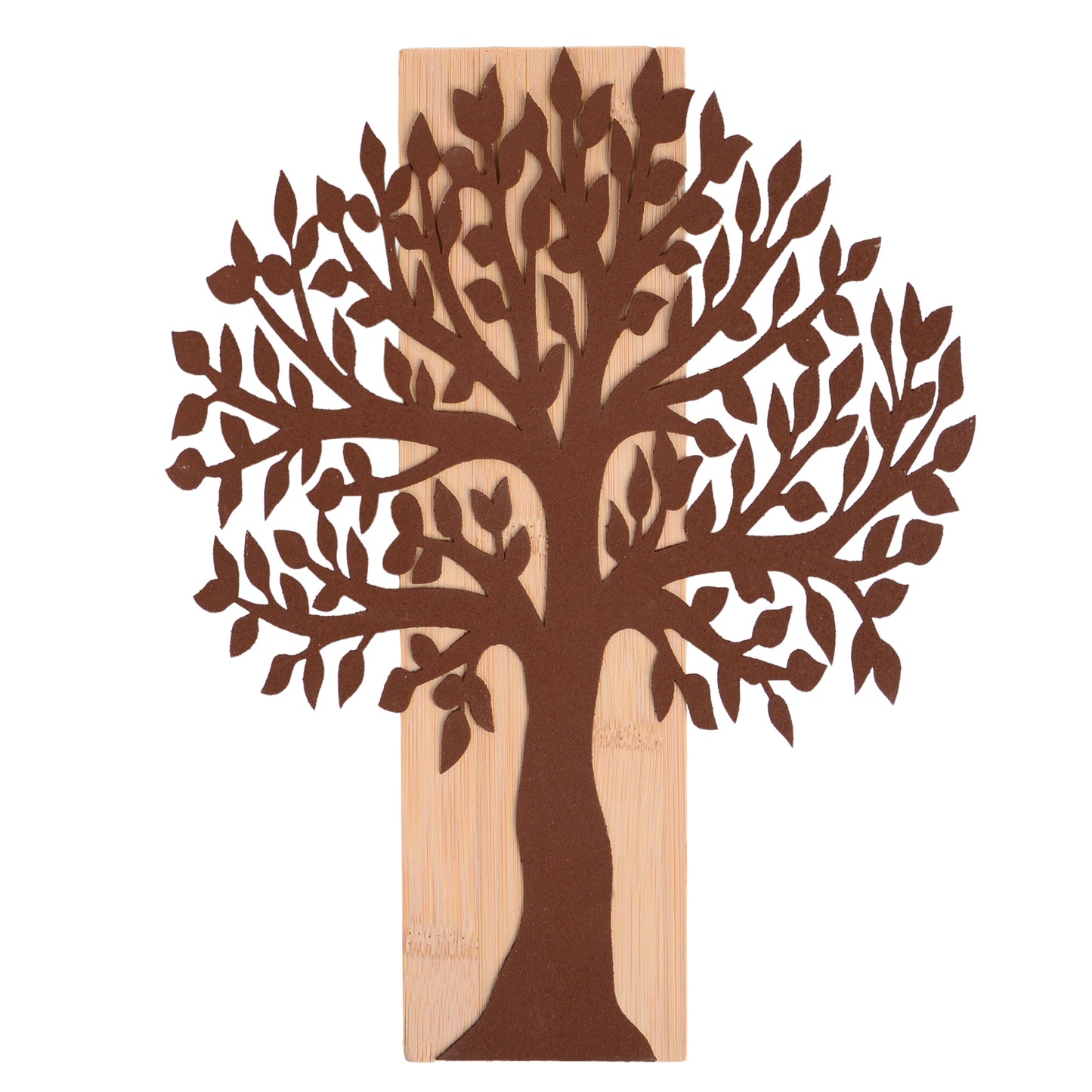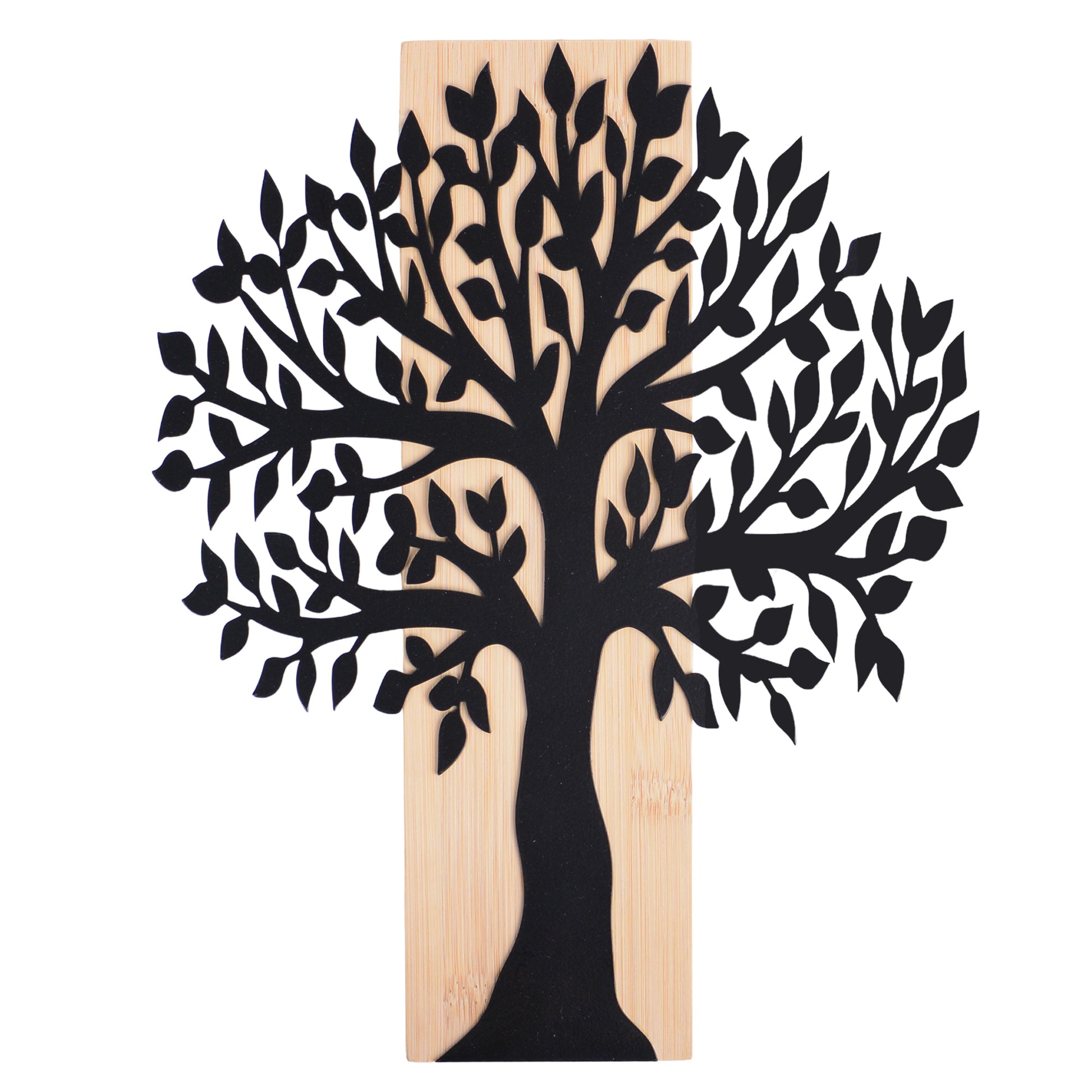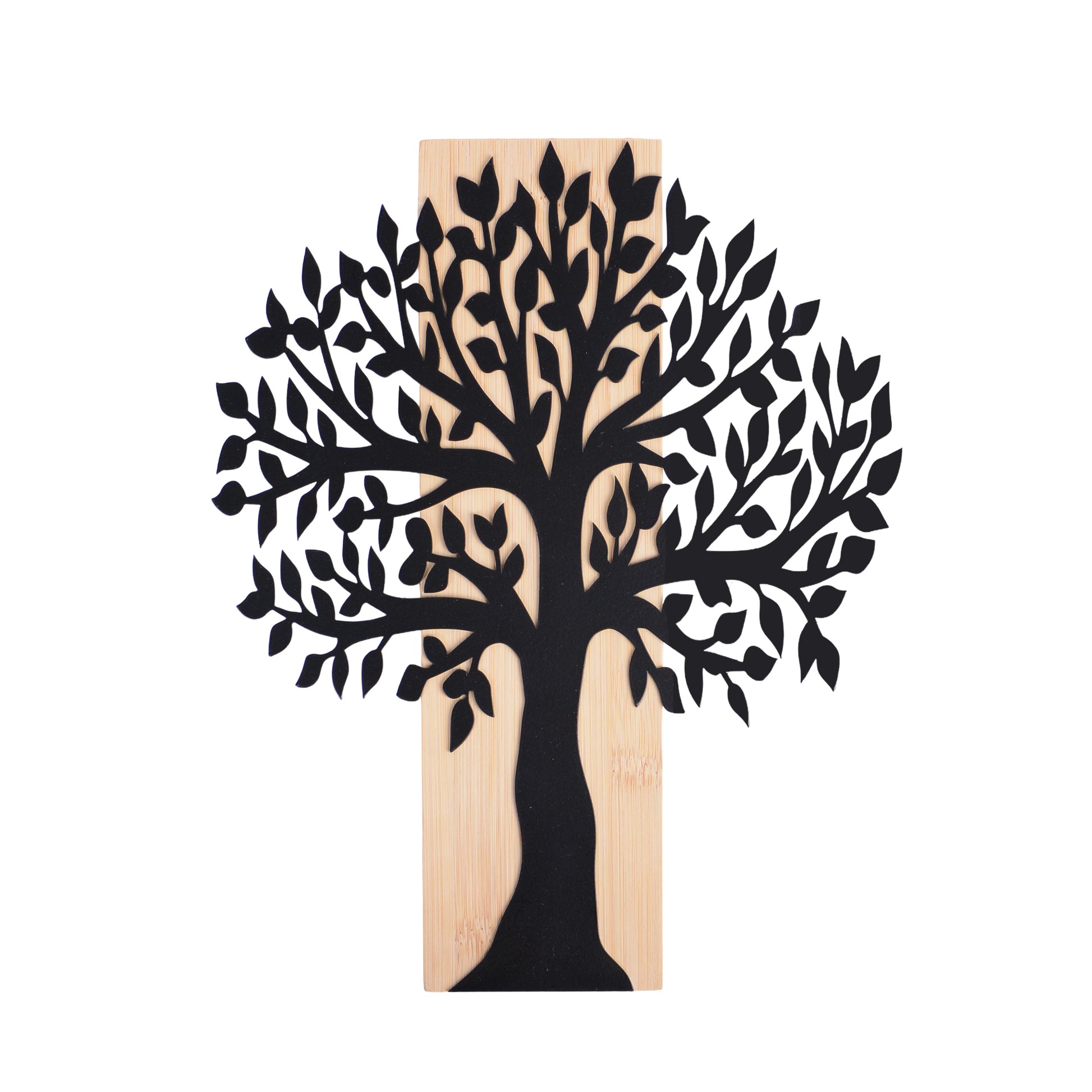 Verleihen Sie Ihren Räumen eine besondere Ausstrahlung mit dieser kunstvollen Wanddekoration. Der detailreiche Baum ist aus Metall gefertigt und auf einem hochwertigen Bambusbrett befestigt. Die Kombination aus schwarzem oder rostfarbenem Metall und natürlichem Bambus bringt Eleganz und Harmonie in jedes Zuhause.