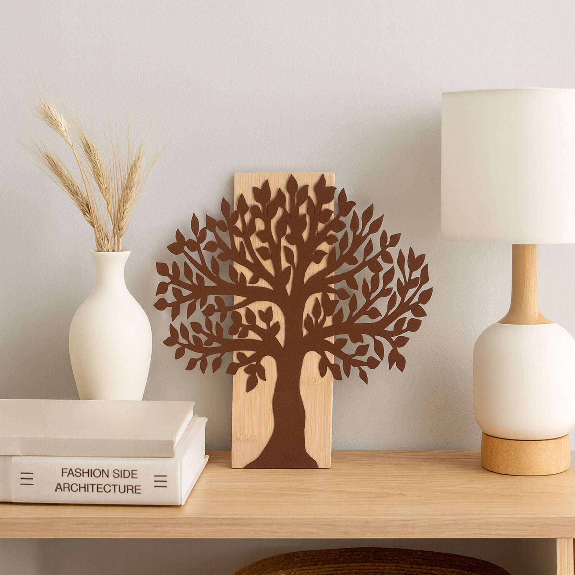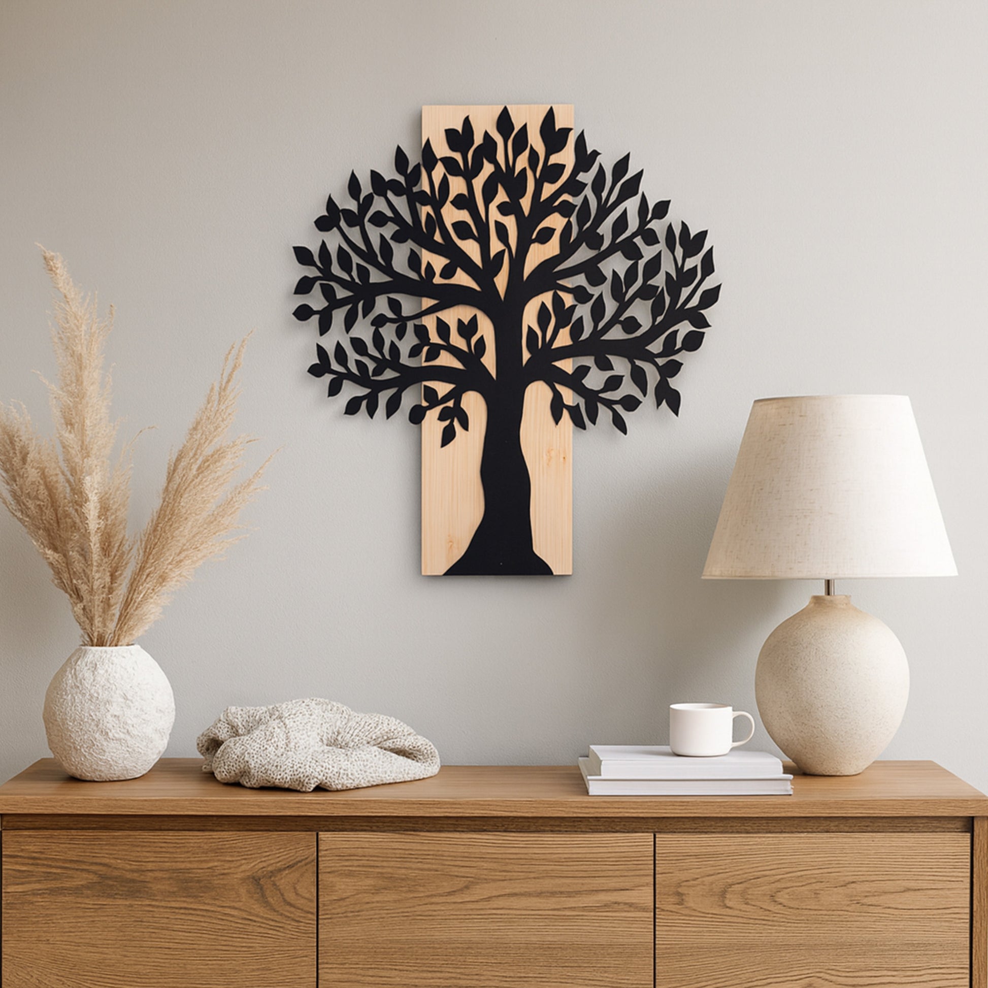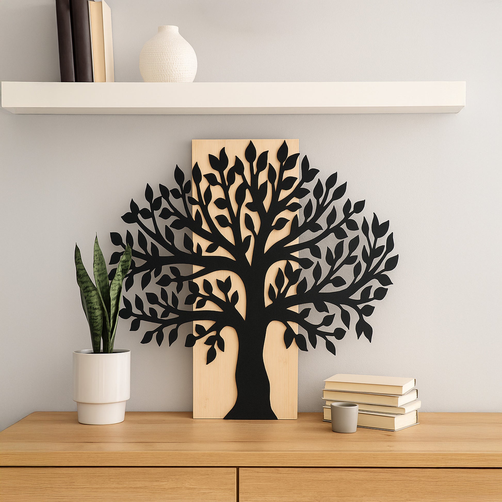 Dank seines zeitlosen Designs harmoniert der Baum mit Naturtönen, modernen Möbeln und dekorativen Elementen wie Holz, Glas oder Textilien. Besonders wirkungsvoll ist er als Einzelstück, kann aber auch mit weiteren Wanddekorationen kombiniert werden.