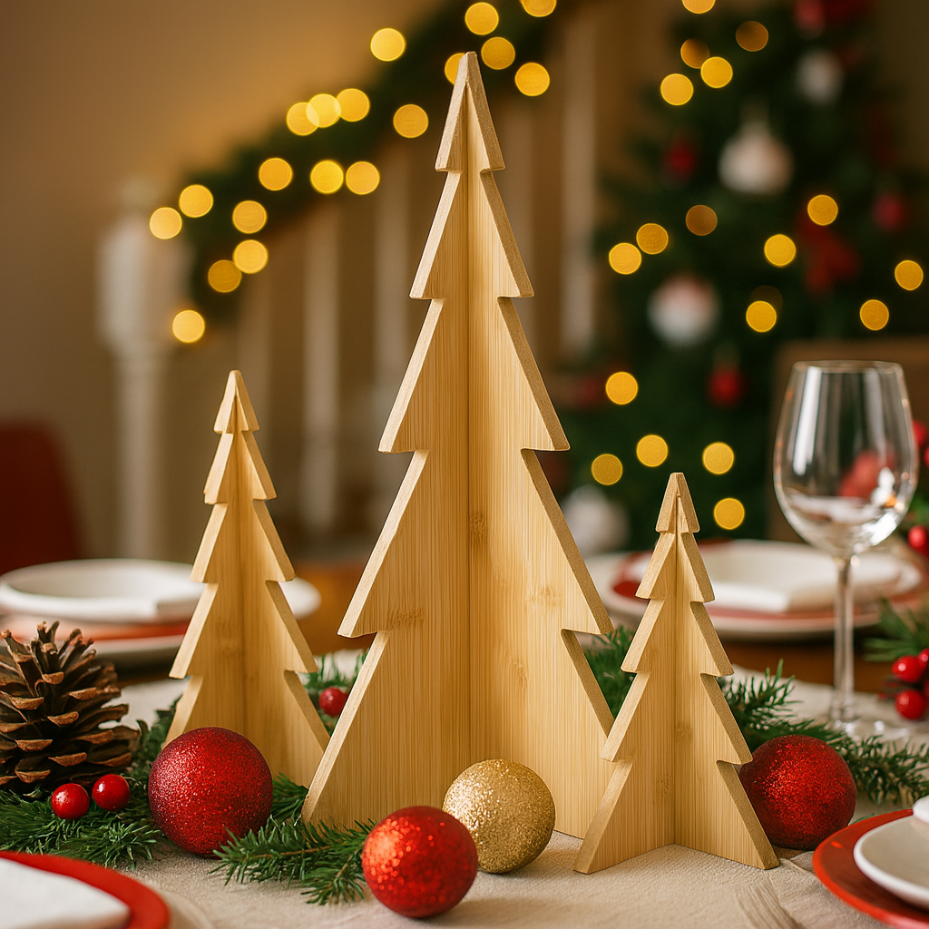 Mit dem Tannenbaum-Aufsteller 3er Set aus Holz holen Sie sich eine warme, natürliche Note in Ihre Winter- und Weihnachtsdekoration. Die klaren, zeitlosen Baumformen und die helle Holzfarbe schaffen ein harmonisches Gesamtbild, das sowohl modern als auch gemütlich wirkt.
