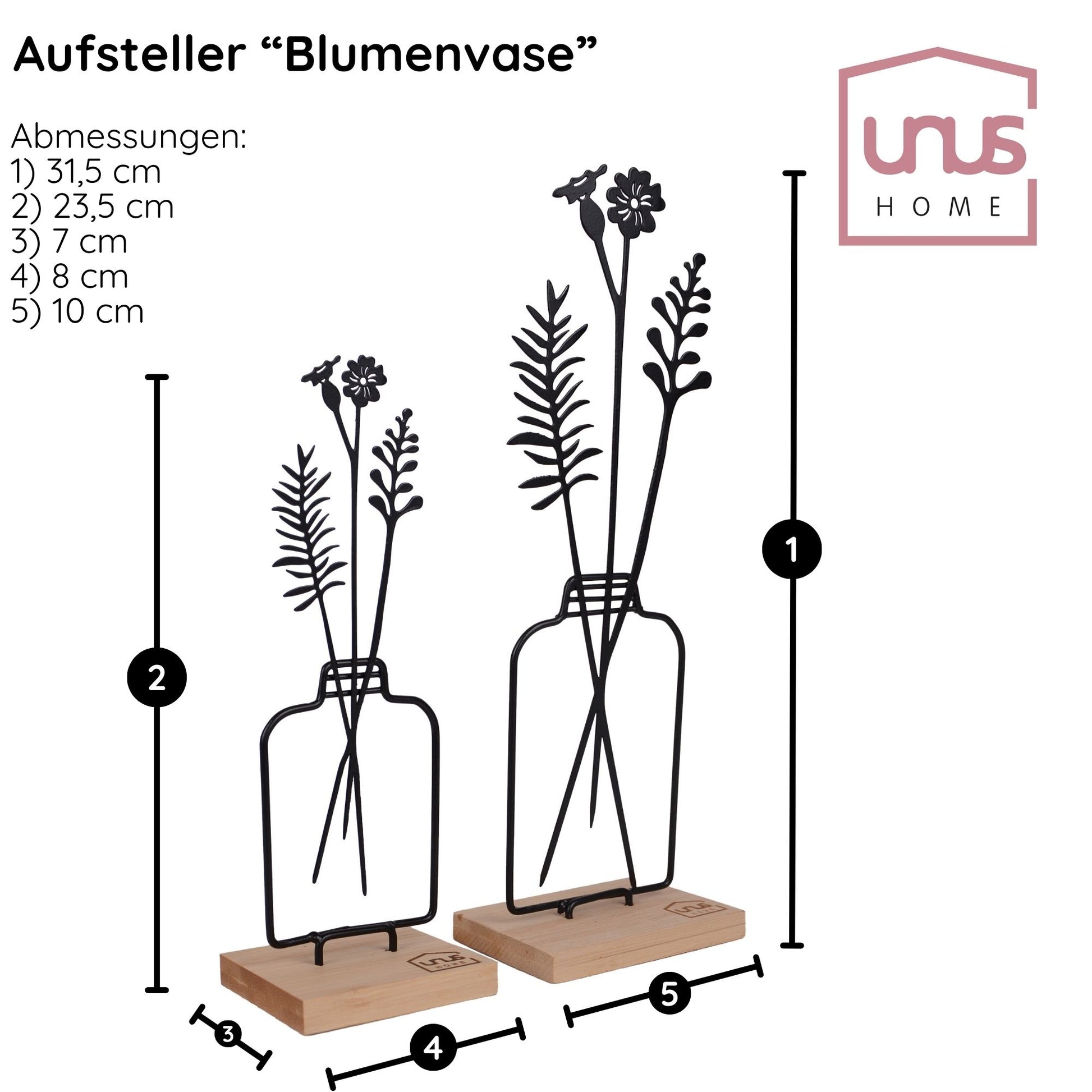 Verleihen Sie Ihrem Zuhause eine elegante und moderne Note mit diesen dekorativen Metallaufstellern im Design stilisierter Blumenvasen. Dieses 2er-Set bringt die natürliche Schönheit von Blumen in einer minimalistischen und zeitlosen Silhouette zur Geltung.