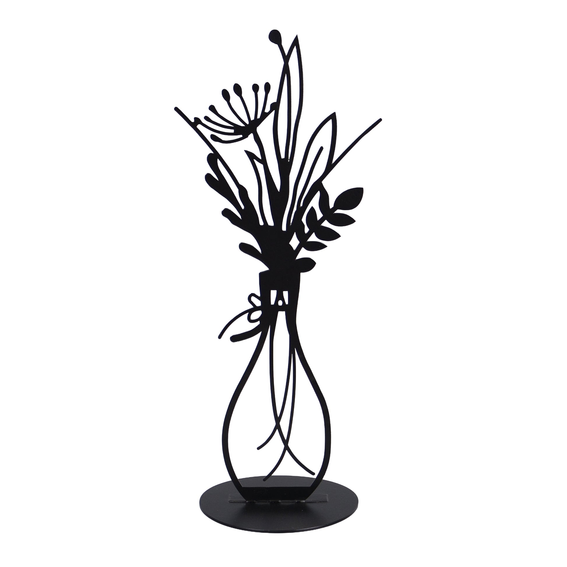 Dieser kunstvoll gestaltete UNUS Aufsteller aus schwarzem Metall verbindet moderne Linienführung mit einer eleganten floralen Silhouette. Die filigrane Vase wirkt leicht, stilvoll und fügt sich harmonisch in verschiedenste Wohnstile ein.