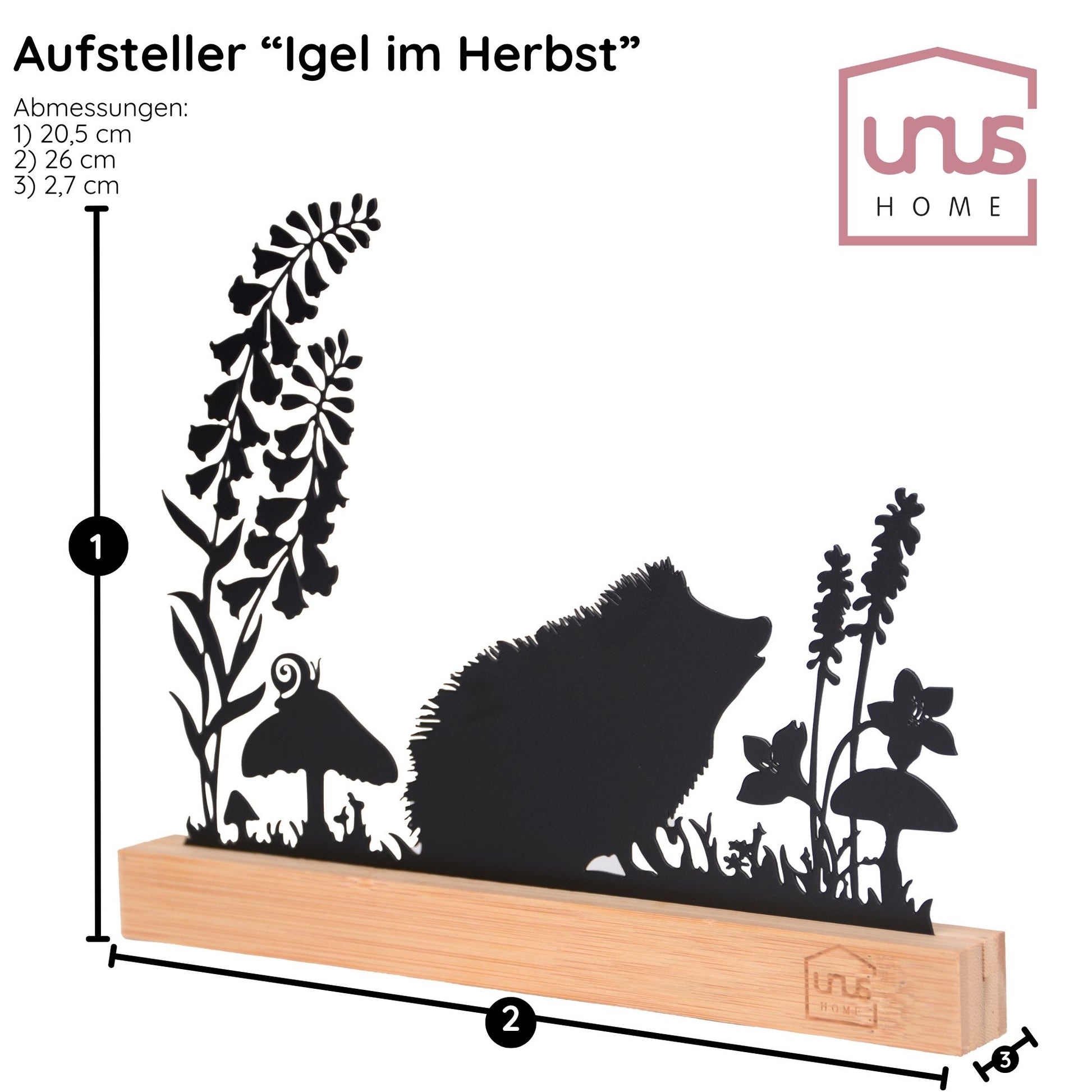 Perfekt geeignet für das Wohnzimmer, den Flur, die Küche oder die Fensterbank. Auch auf einem Sideboard, im Eingangsbereich oder als Blickfang auf einem Herbsttisch sorgt die Igel-Silhouette für einen stilvollen Akzent. Ein wunderbares Geschenk für Naturliebhaber oder alle, die nach einer besonderen Dekoration für die herbstliche Jahreszeit suchen.