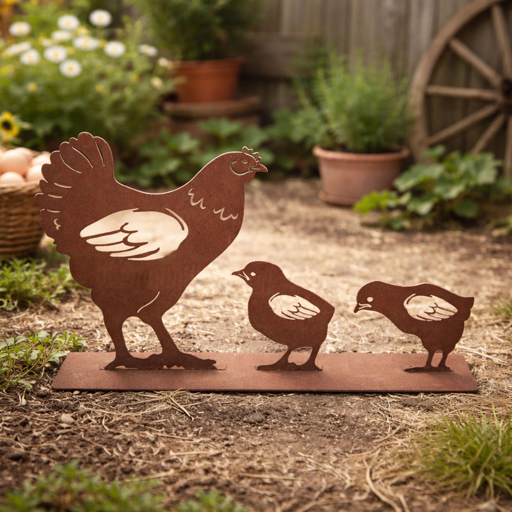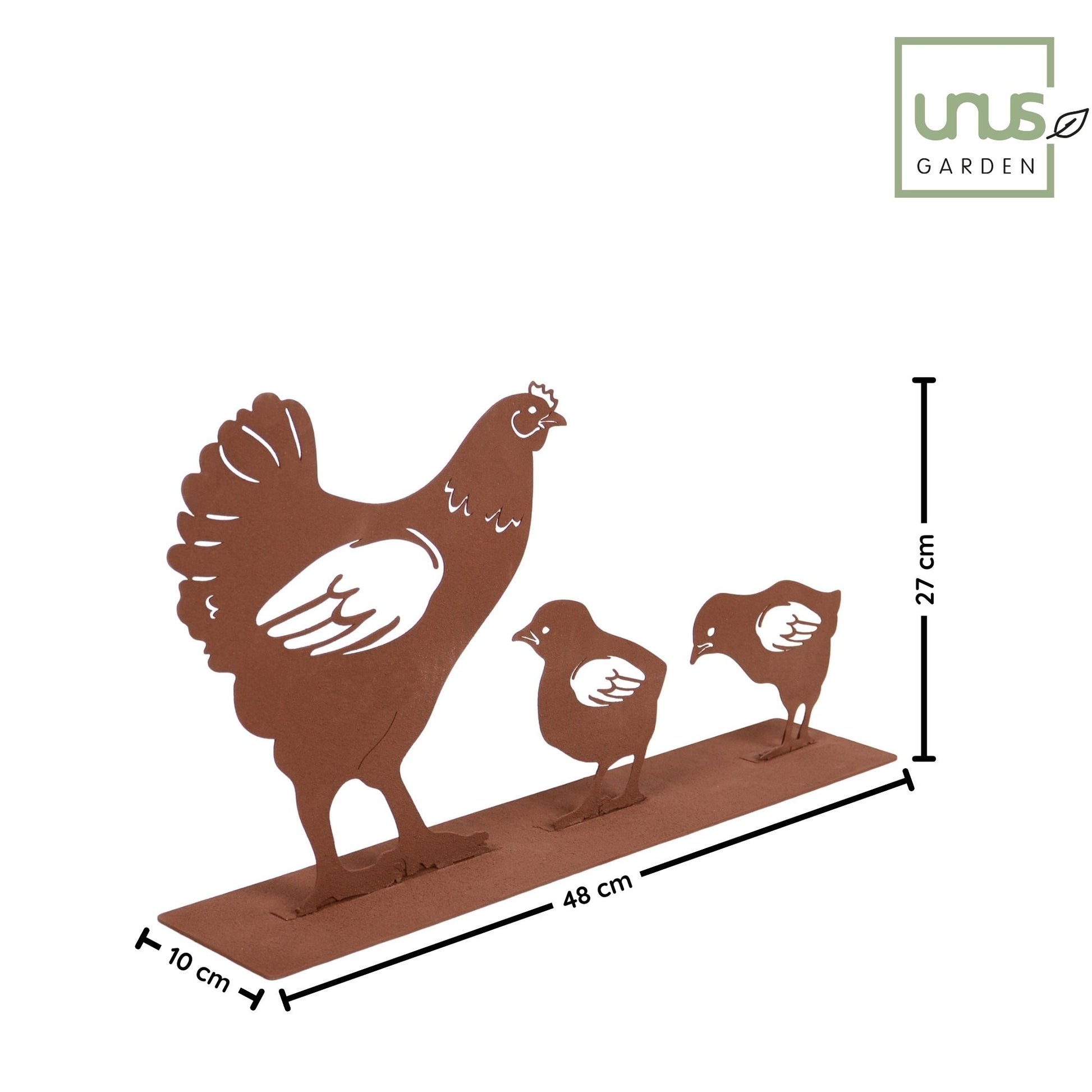 Die UNUS Hühnerfamilie ist ein echter Hingucker und bringt rustikalen Charme in jeden Außenbereich.