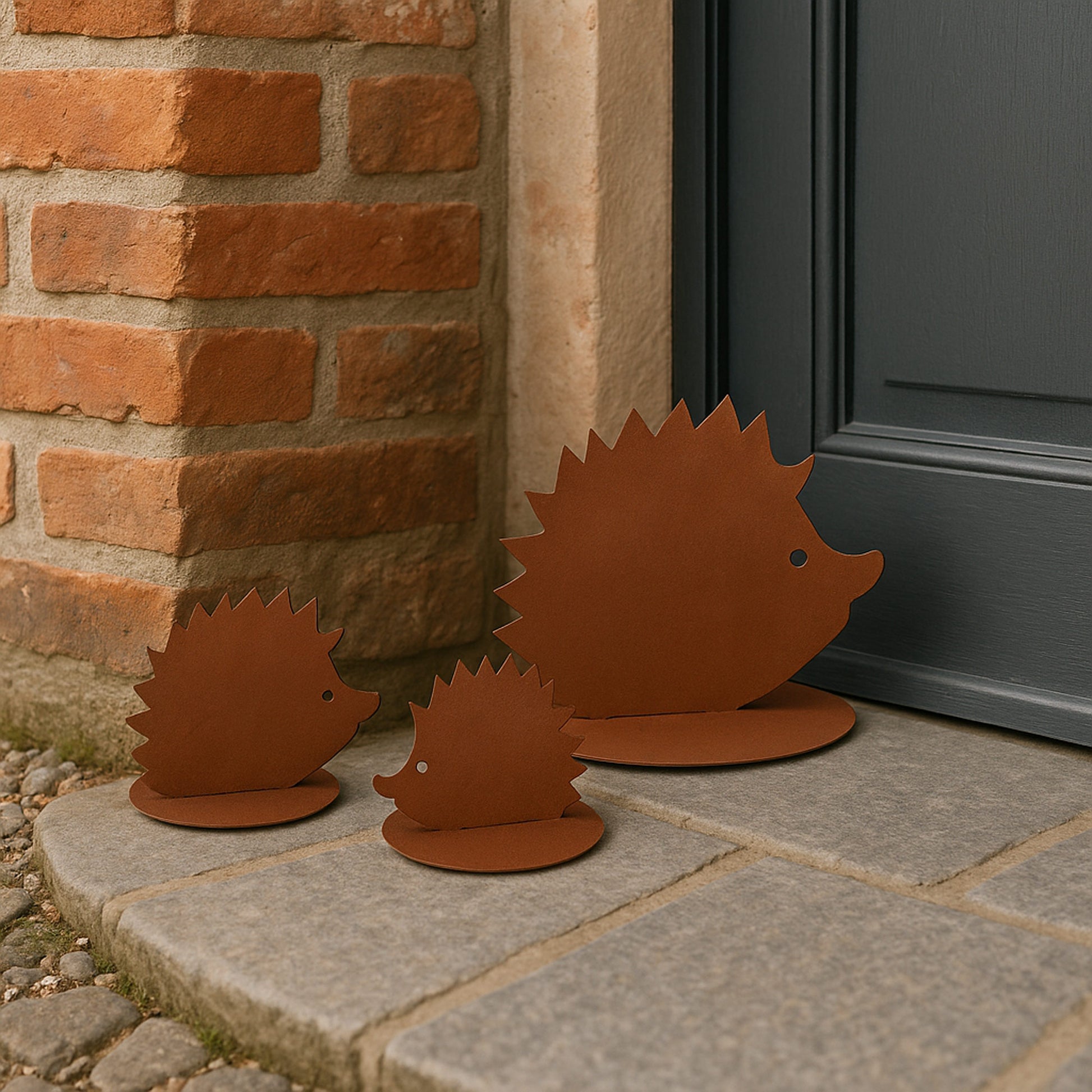 Aufsteller Igel in Schwarz oder Rost als 3er Set