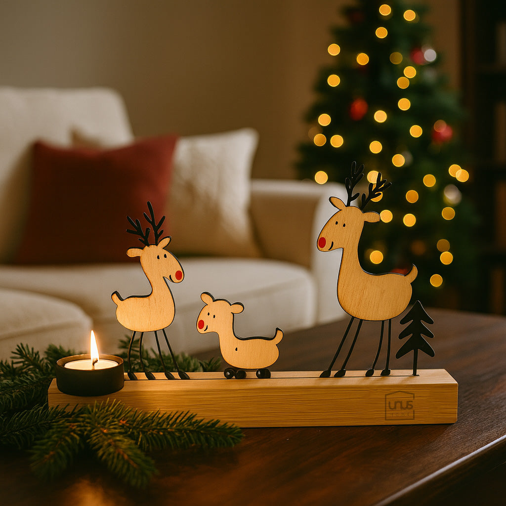 UNUS® Aufsteller „Rehe mit Kerzenhalter“ – natürliche Weihnachtsdeko für Ihr Zuhause