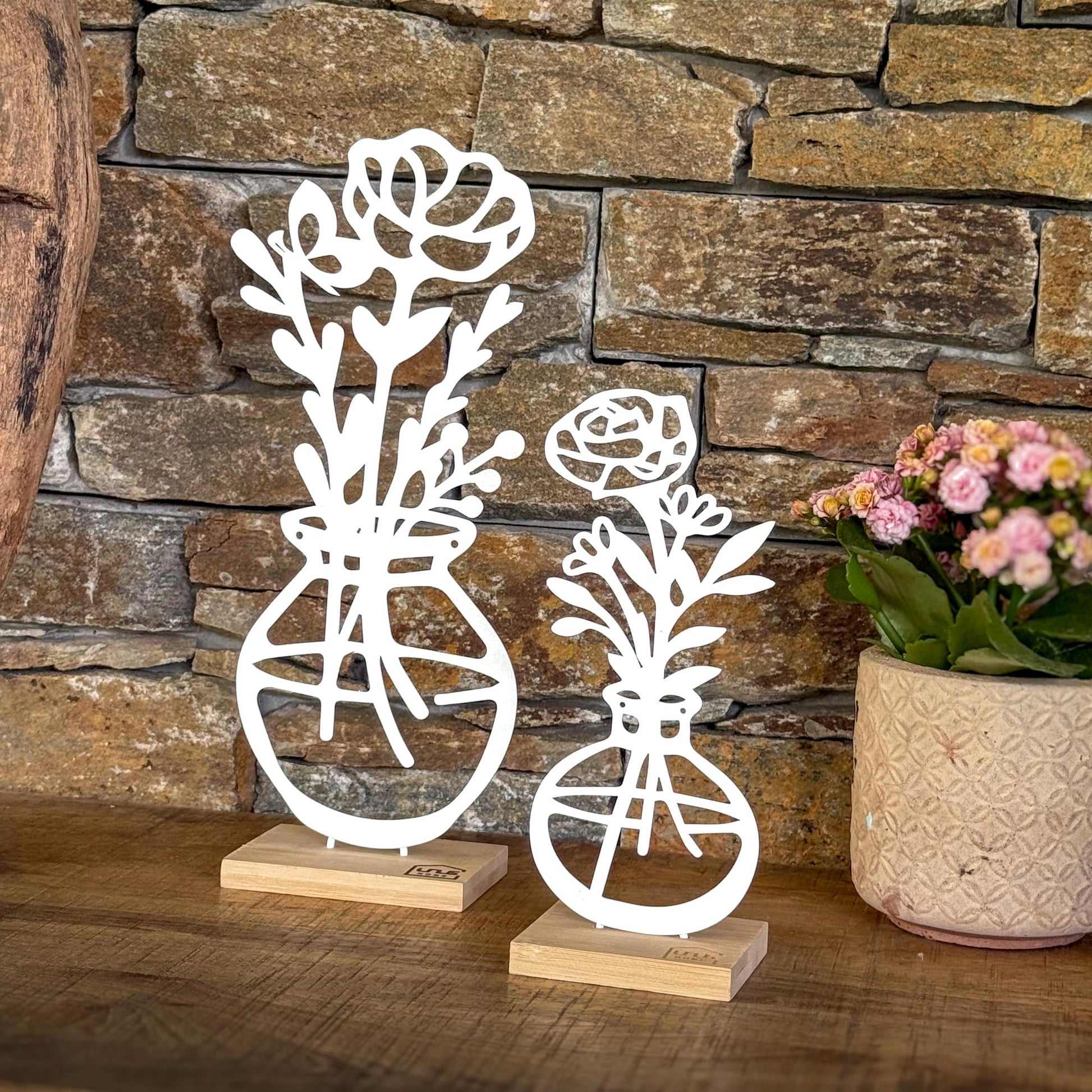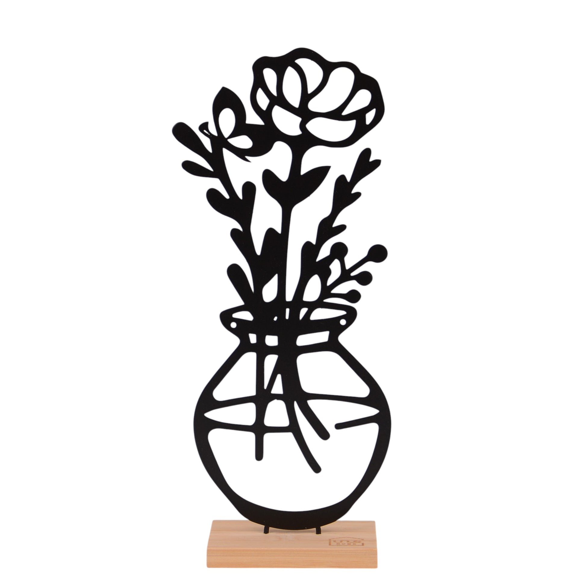 Deko-Aufsteller „Blume in Vase“ aus Metall - stilvolle Akzentdeko mit Bambus-Sockel für drinnen und draußen