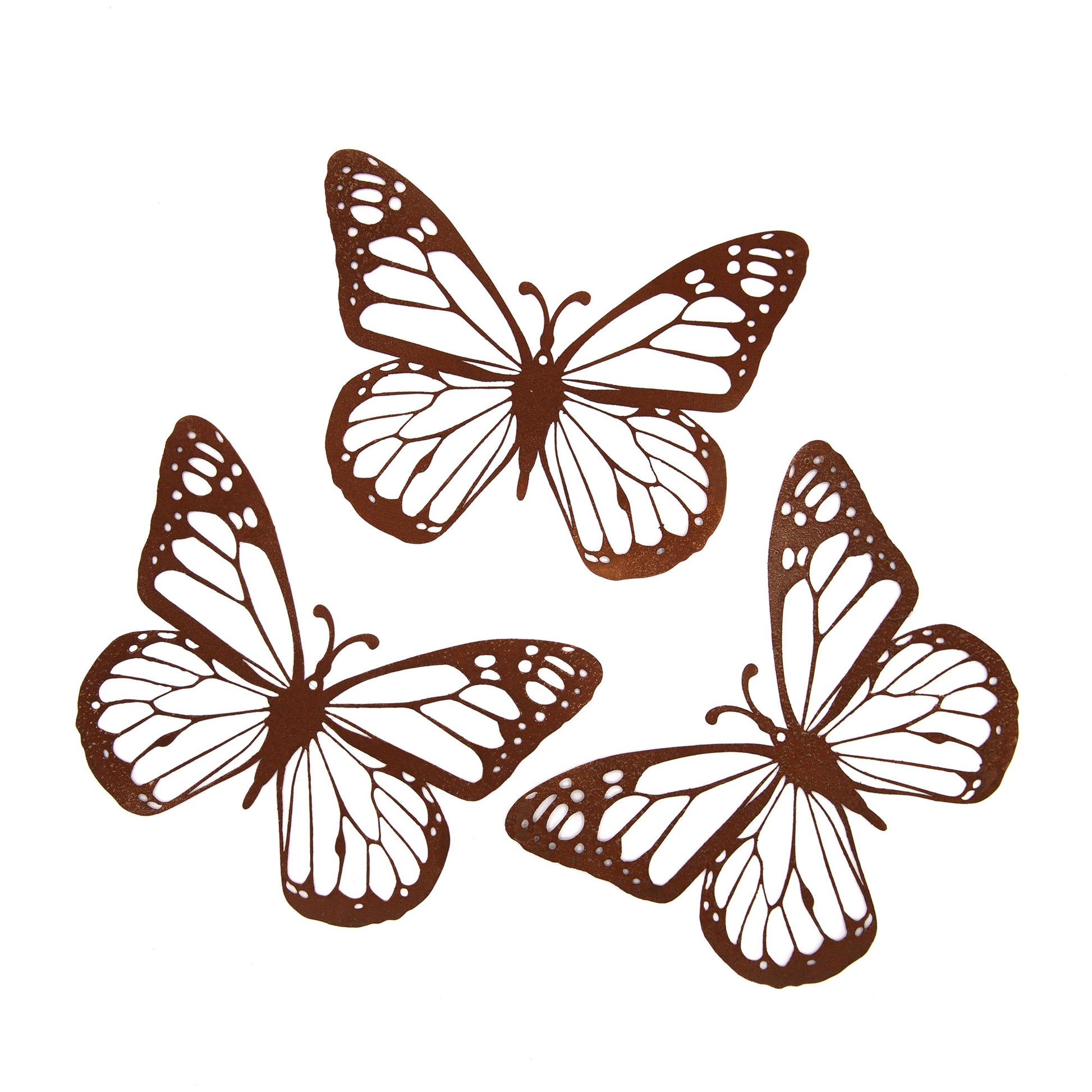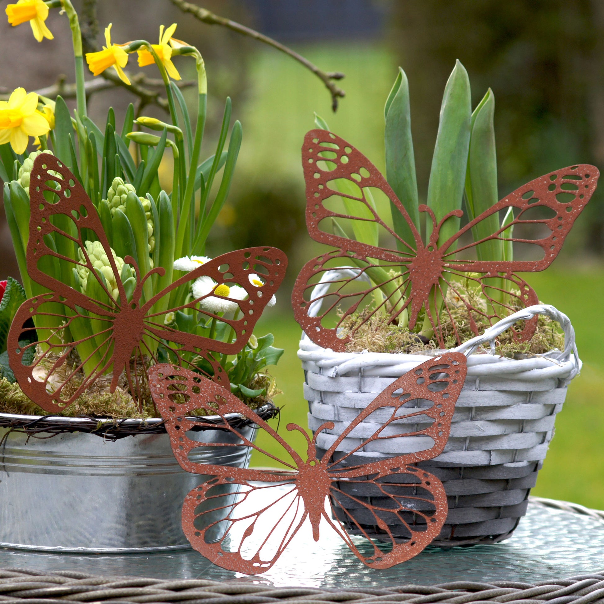 Baumstecker Schmetterling im 3er Set in Rostoptik