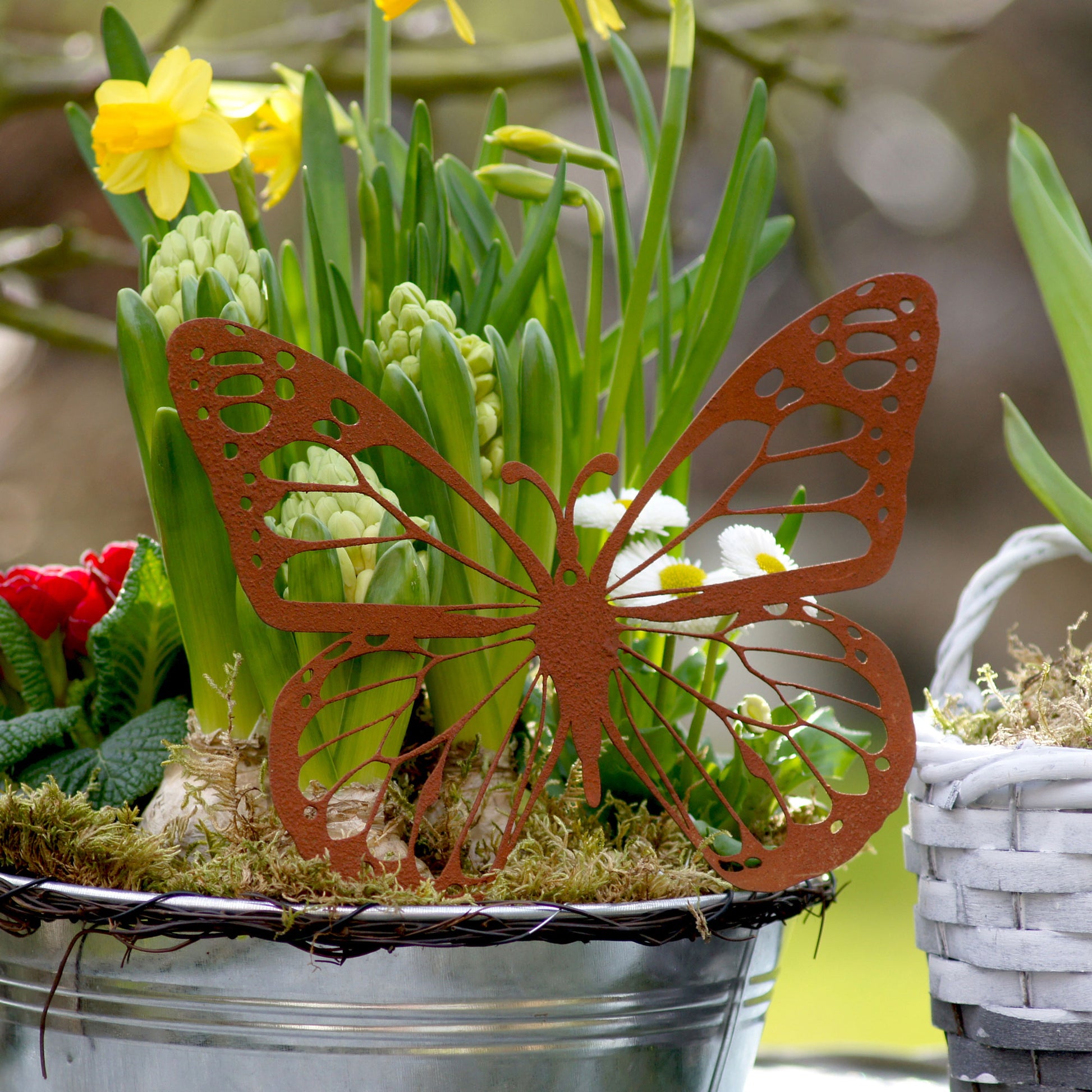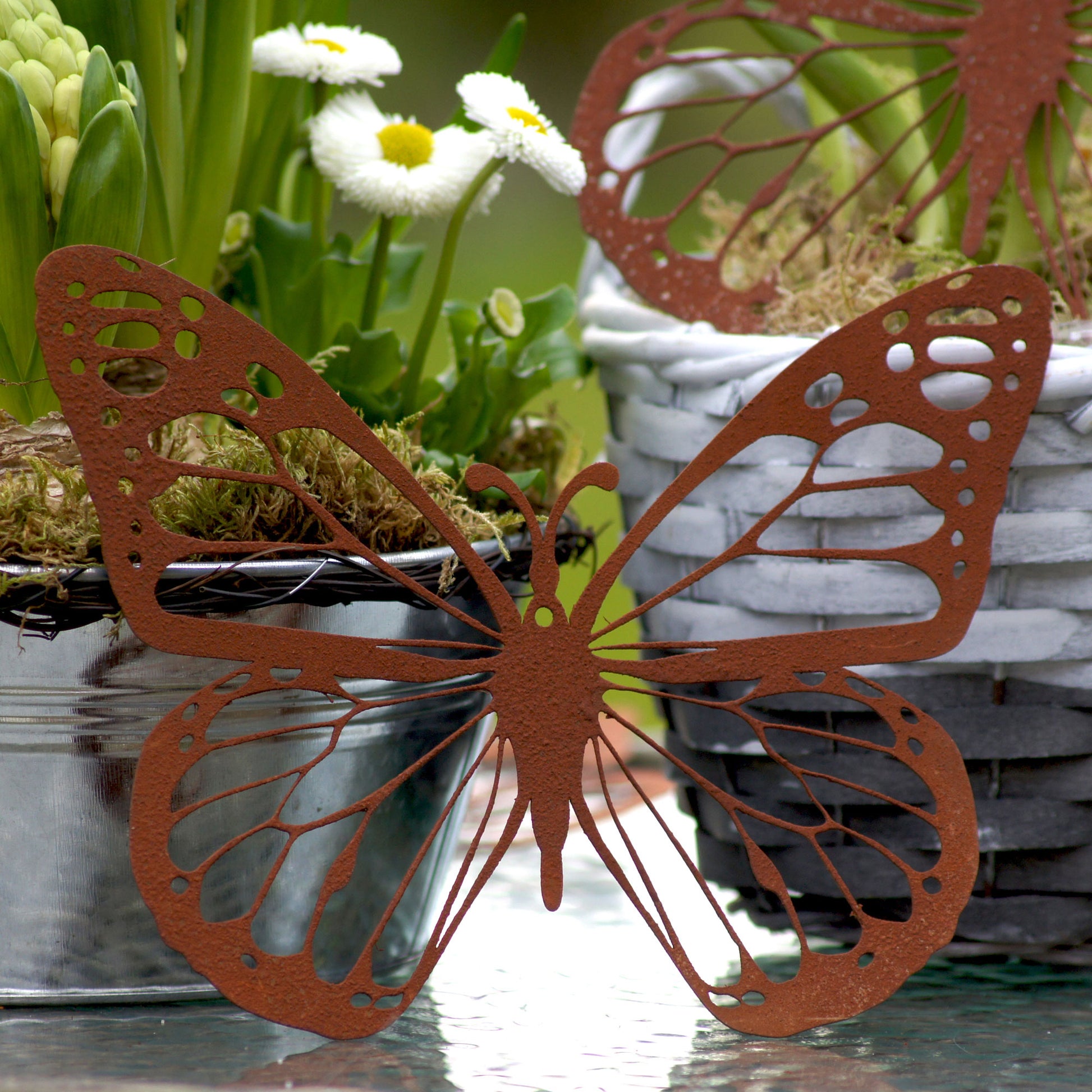 Diese Schmetterlinge in Rostoptik sind witterungsbeständig, sodass sie das ganze Jahr über im Freien bleiben können. Durch die einfache Befestigung an der gewünschten Stelle, gelingt eine flexible und kreative Gestaltung Ihres Außenbereichs.