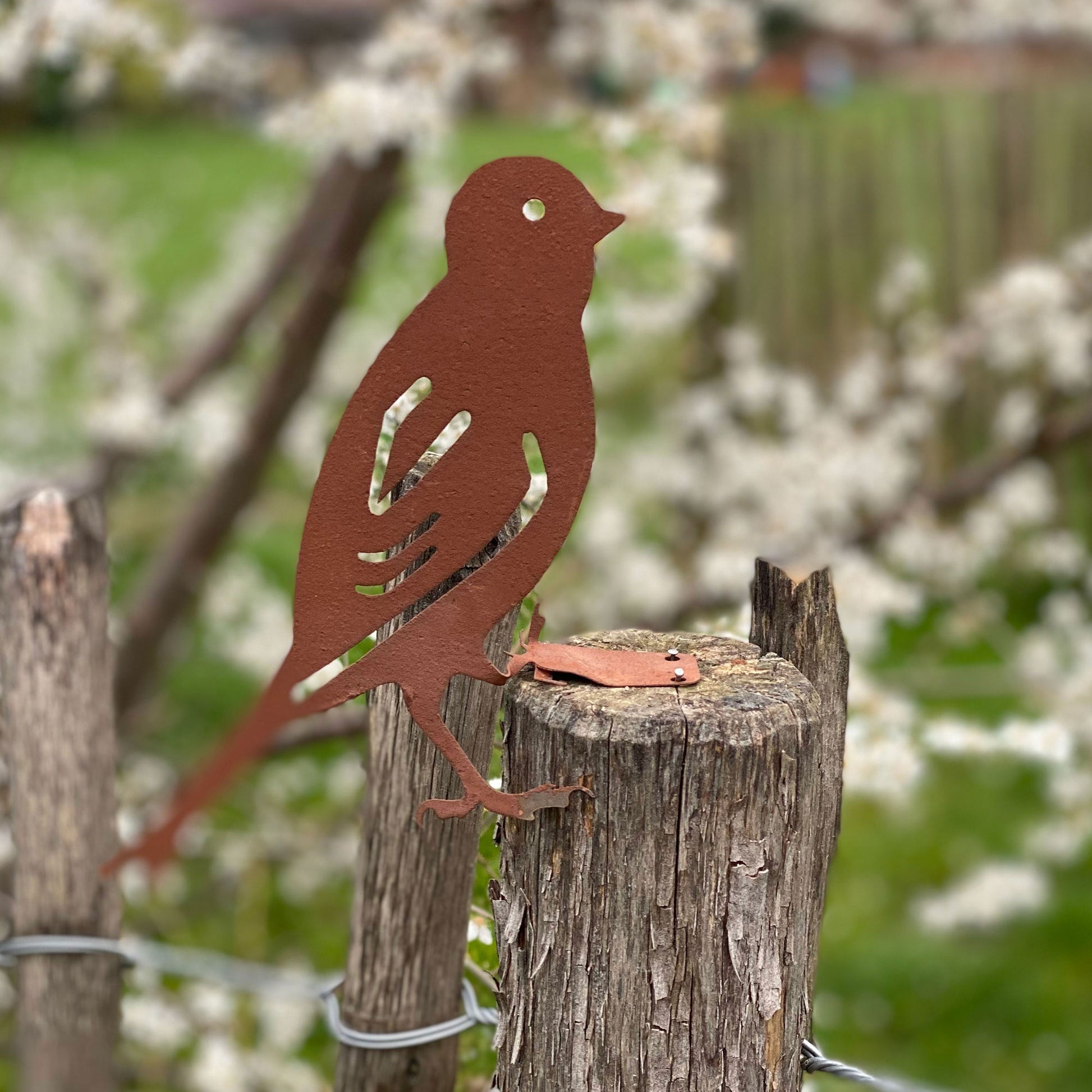 Die Vögel wurden aus robustem Metall in Rostoptik gefertigt und können sowohl drinnen als auch draußen dekoriert werden.