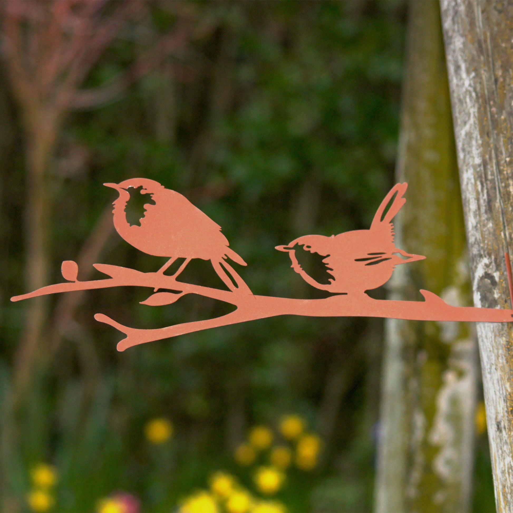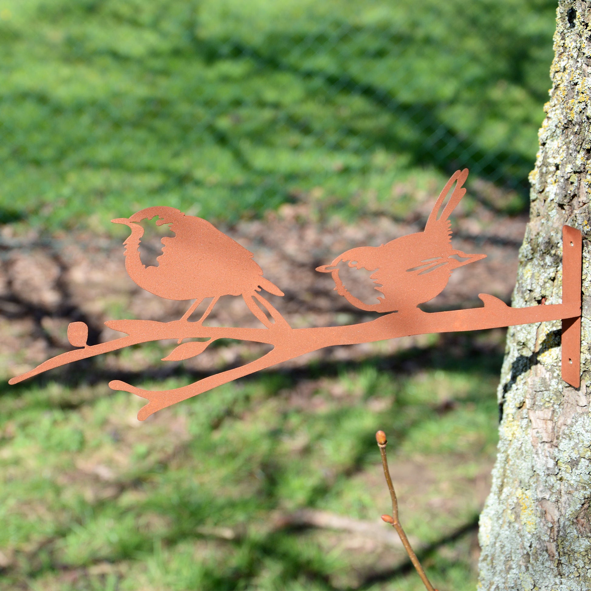 Die Vögel sind aus robustem Metall gefertigt und wetterfest verarbeitet. Sie lassen sich mit zwei Schrauben einfach befestigen, z. B. an einem Zaun oder einem Baumstamm. Je nach Bedarf kann die Befestigung gebogen werden, um optimalen Halt zu gewährleisten.
