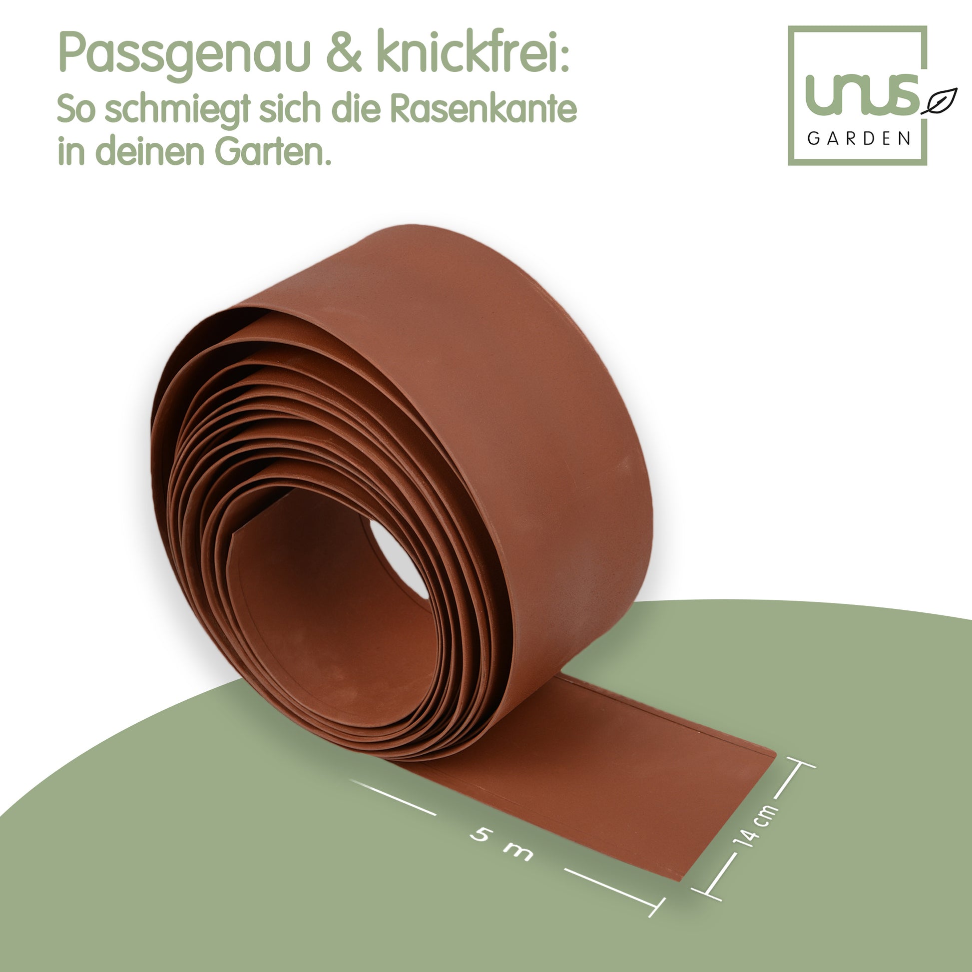 Fachgerechte Anwendung für dauerhafte Stabilität:Für eine langfristig stabile Verlegung ist es erforderlich, die Rasenkante mindestens 10-15 cm tief im Boden zu versenken. Eine zu geringe Einbautiefe kann dazu führen, dass sich die Kante im Laufe der Zeit löst oder aus dem Erdreich herausgedrückt wird. Idealerweise ragt die Rasenkante 1–2 cm über dem Boden, um eine saubere Abgrenzung zwischen verschiedenen Gartenbereichen zu erzielen.