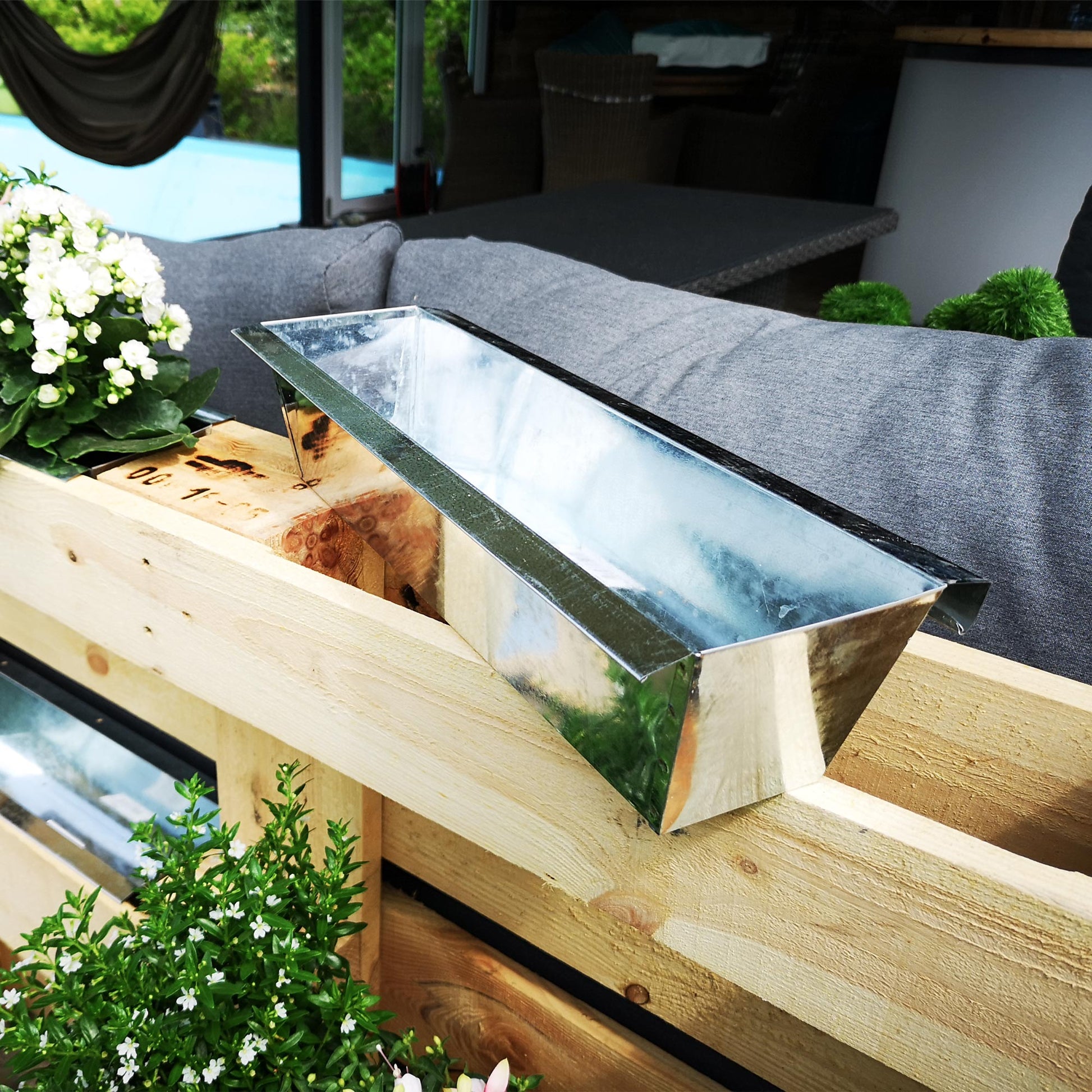Hochwertiger Blumen- / Pflanzkasten aus Zink für Europalette 38cm mit Aufhängung