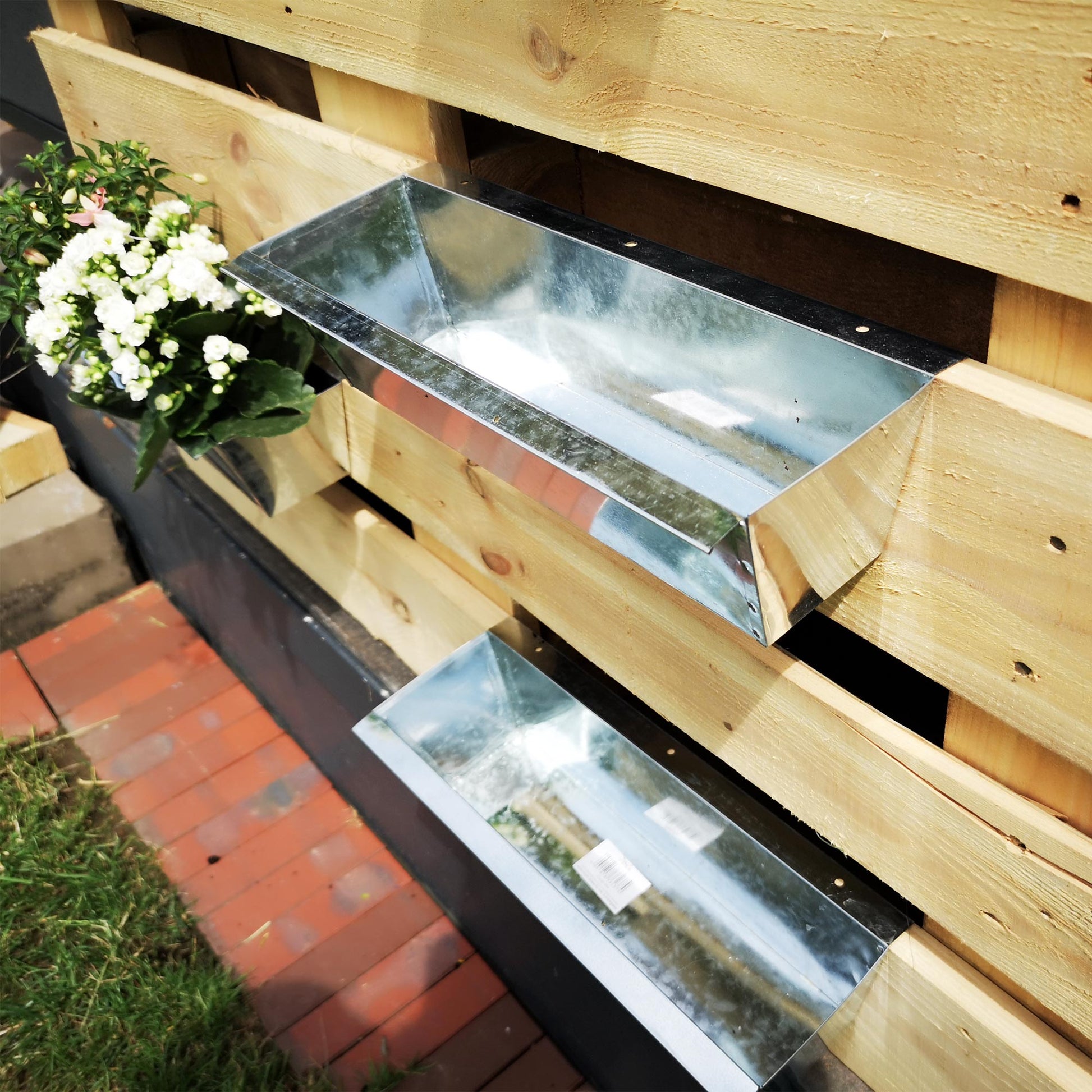 Dieser Blumenkasten aus Zink macht aus einer ausgedienten Europalette ein stylisches Pflanzregal. So haben Sie Platz für viele Pflanzen auf kleinstem Raum. Geeignet für Blumen, Kräuter und Früchte wie z.B. Erdbeeren.