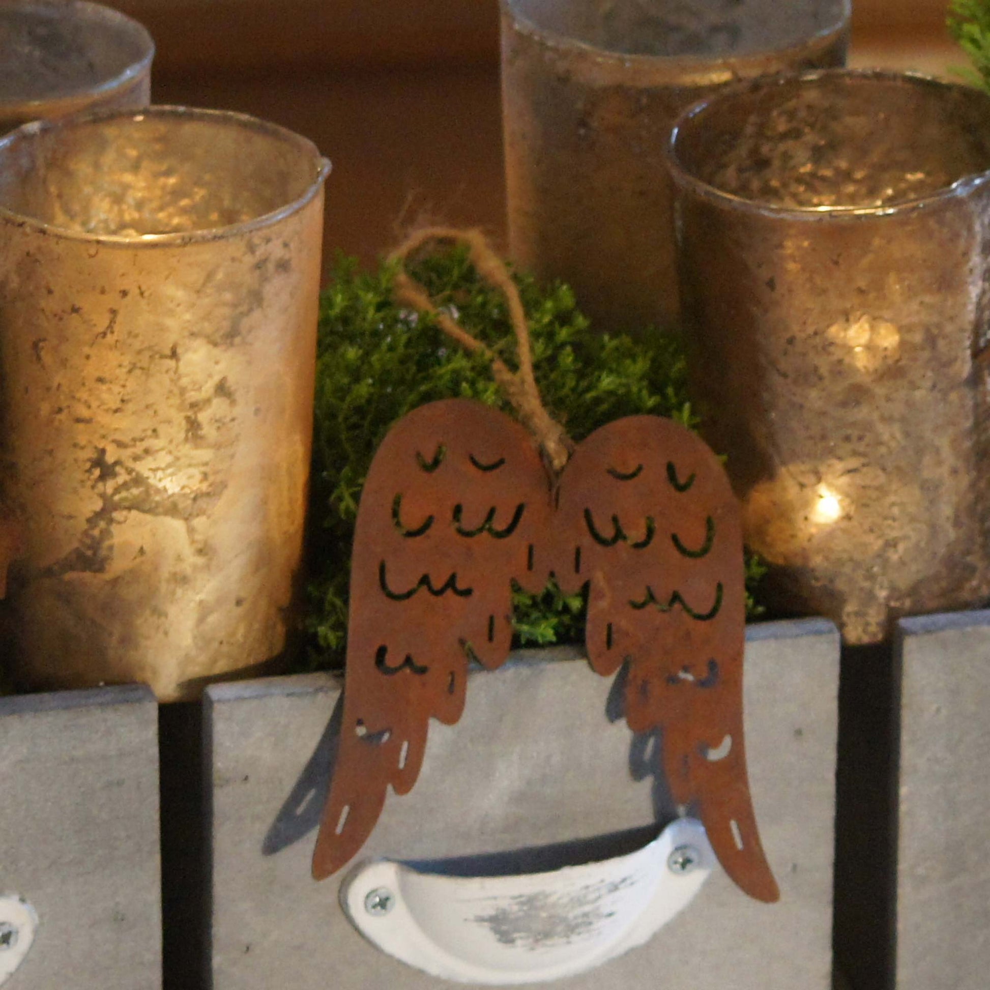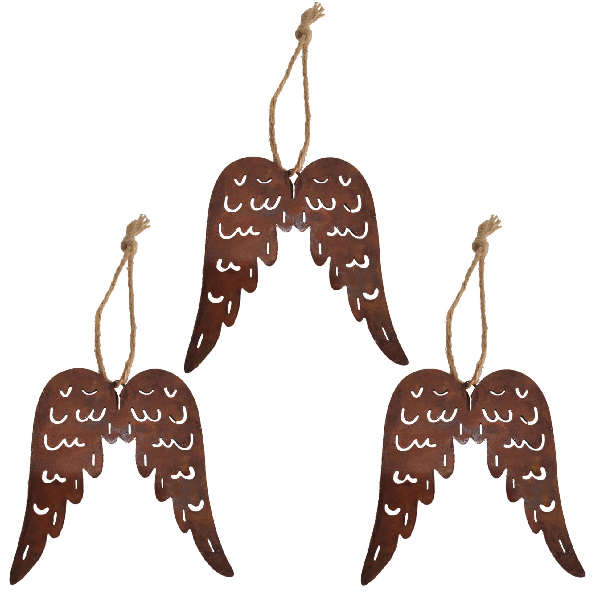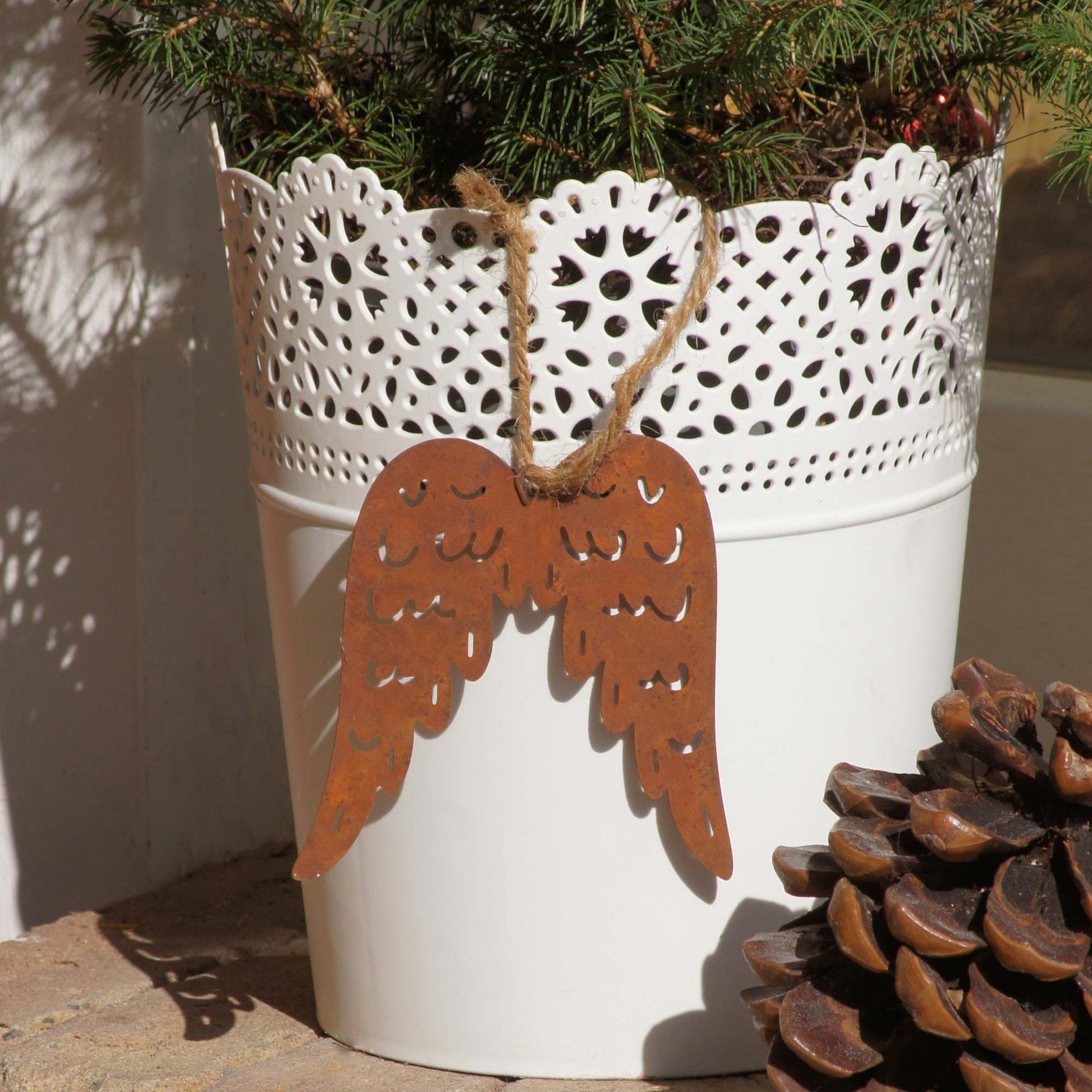 Deko Flügel Rost z Aufhängen m Jutekordel 3er Set