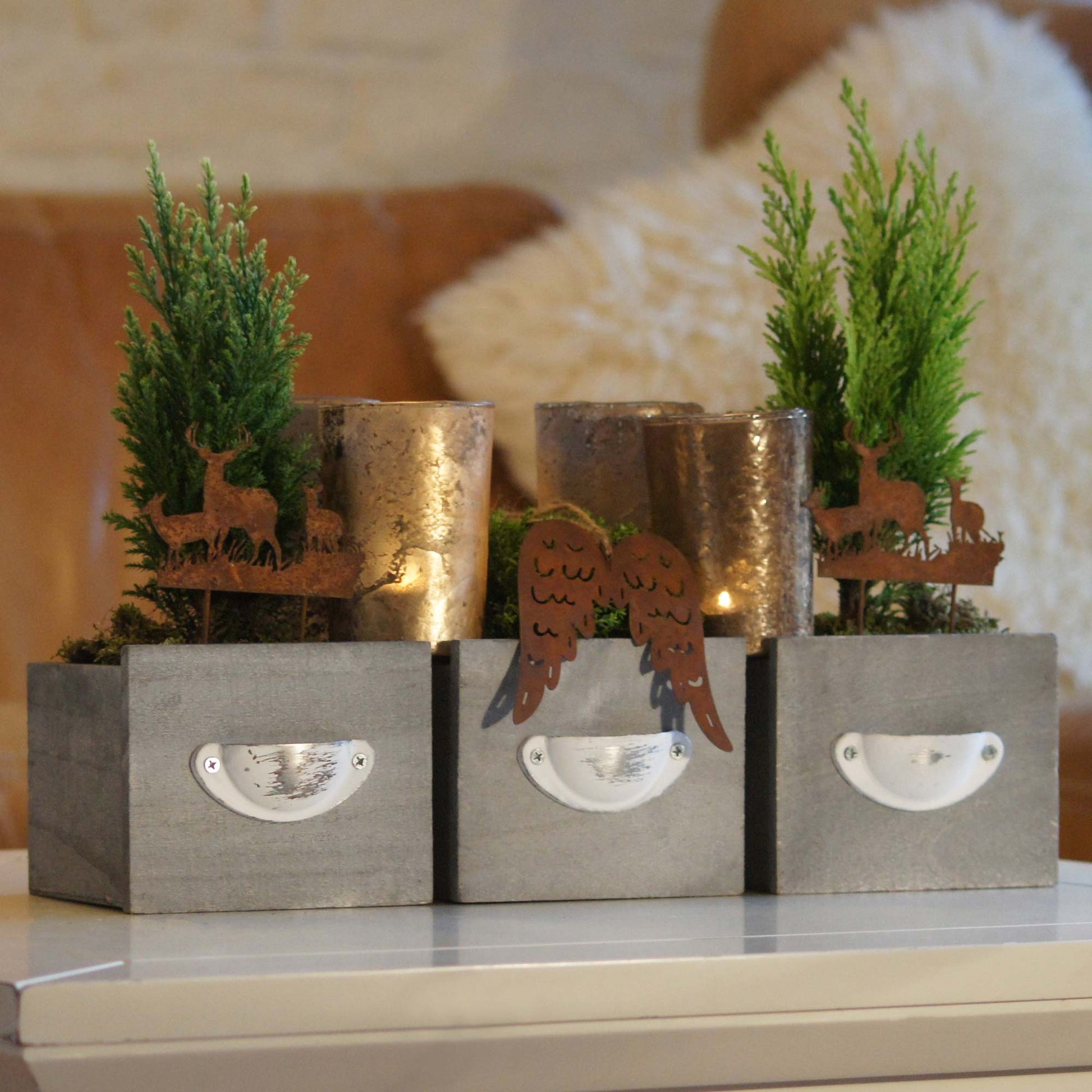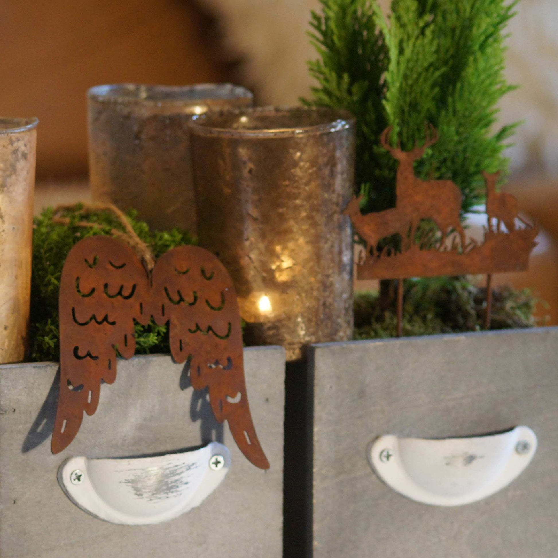 Flügel Rost 3er Set 10x10 cm, Gartendeko Rostoptik, Dekoration für Garten aus Edelrost, Rost Deko zum Aufhängen