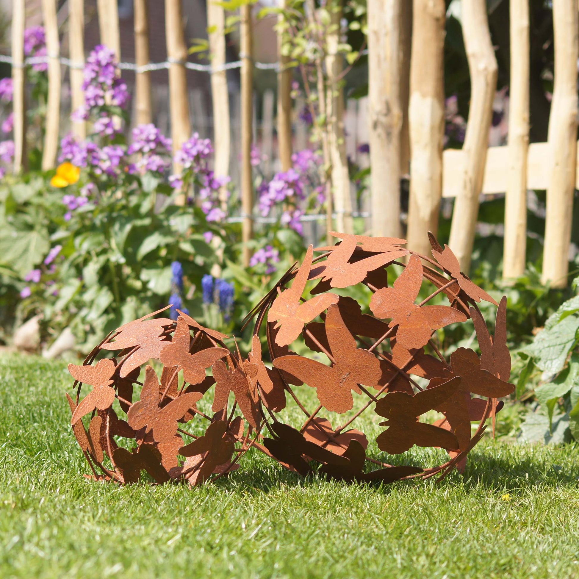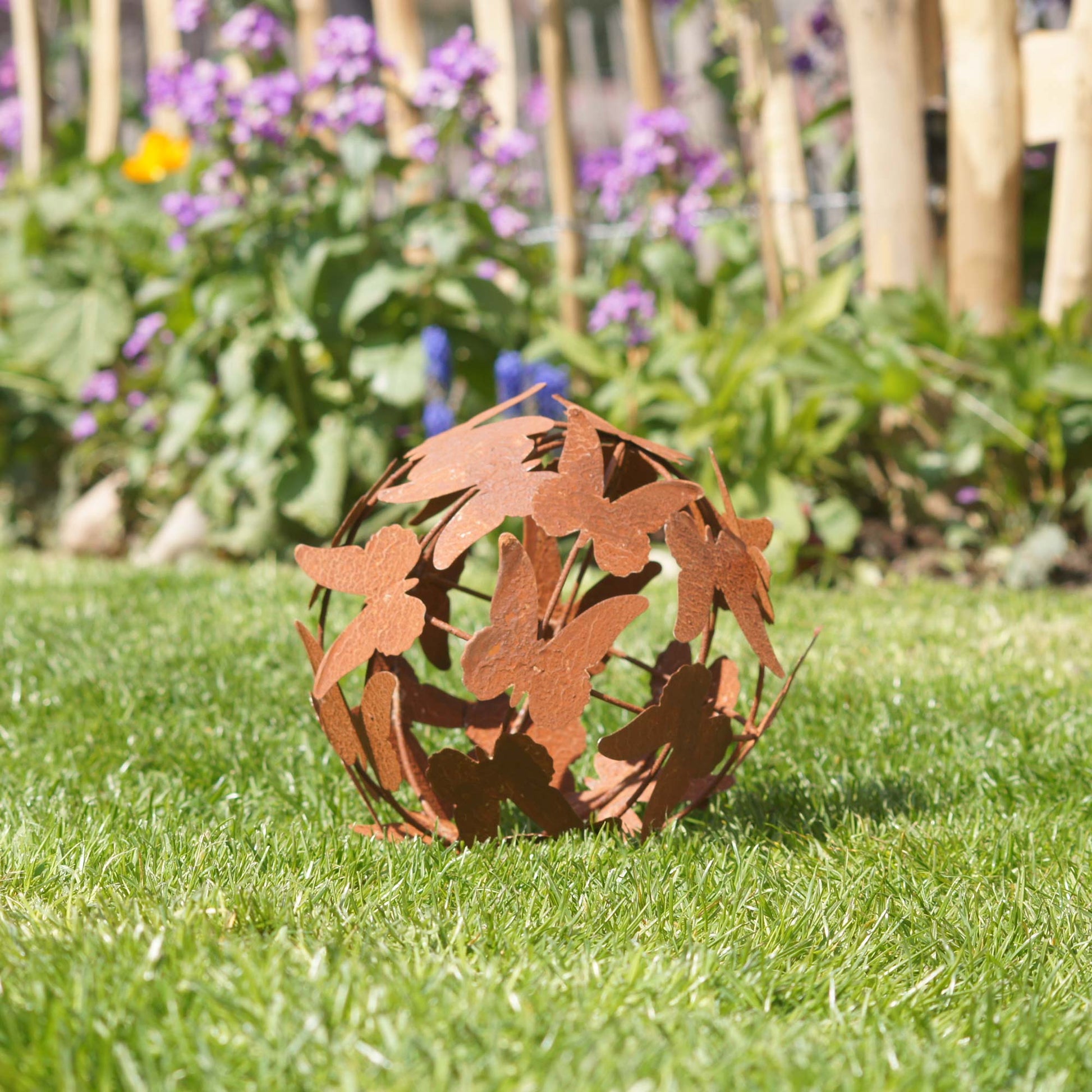 Gartendeko Rost Kugel Schmetterlinge für Garten, Balkon oder Terrasse