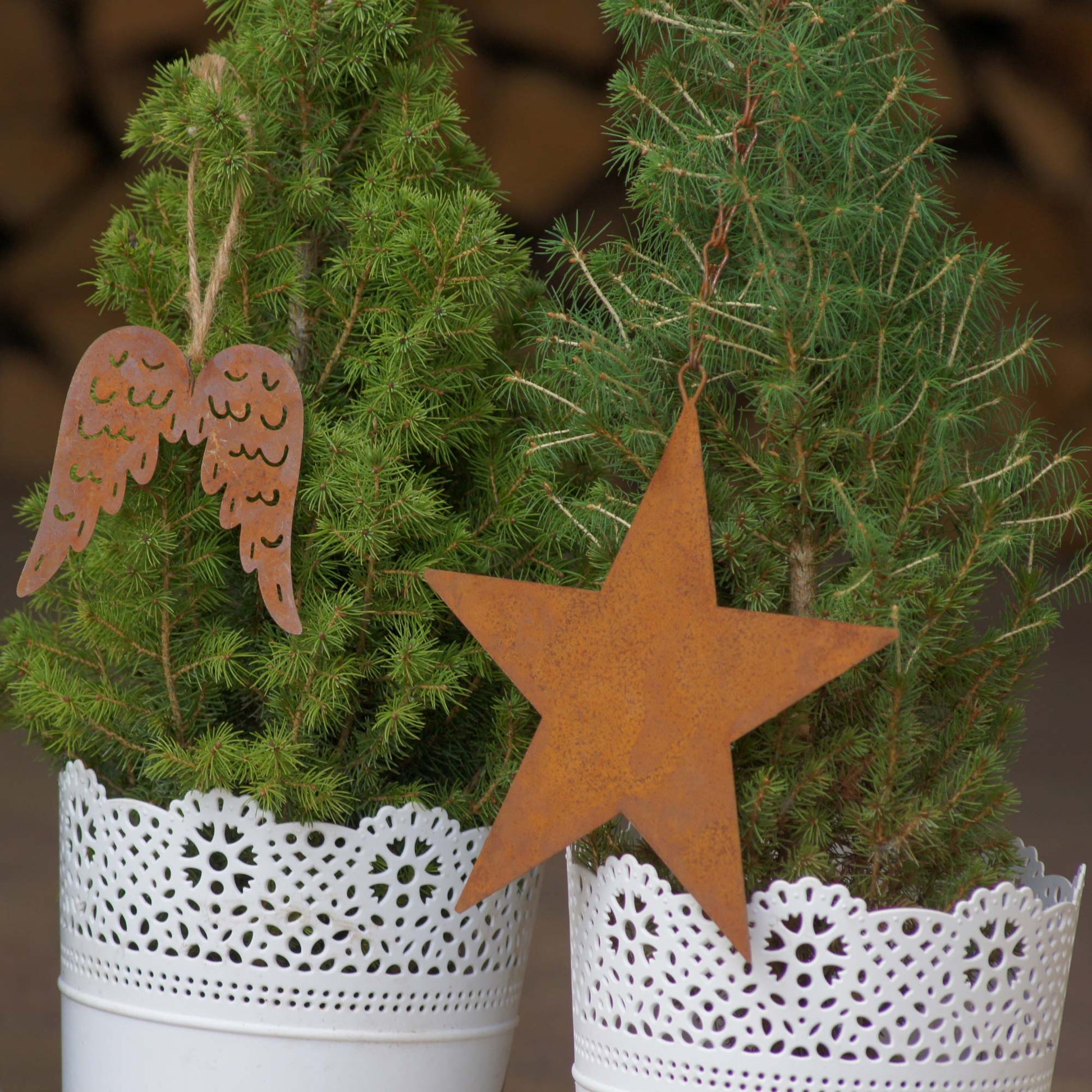 Stern Rost 3er Set 19,5x15,5 cm, Gartendeko Rostoptik, Dekoration für Garten aus Edelrost, Rost Deko zum Aufhängen