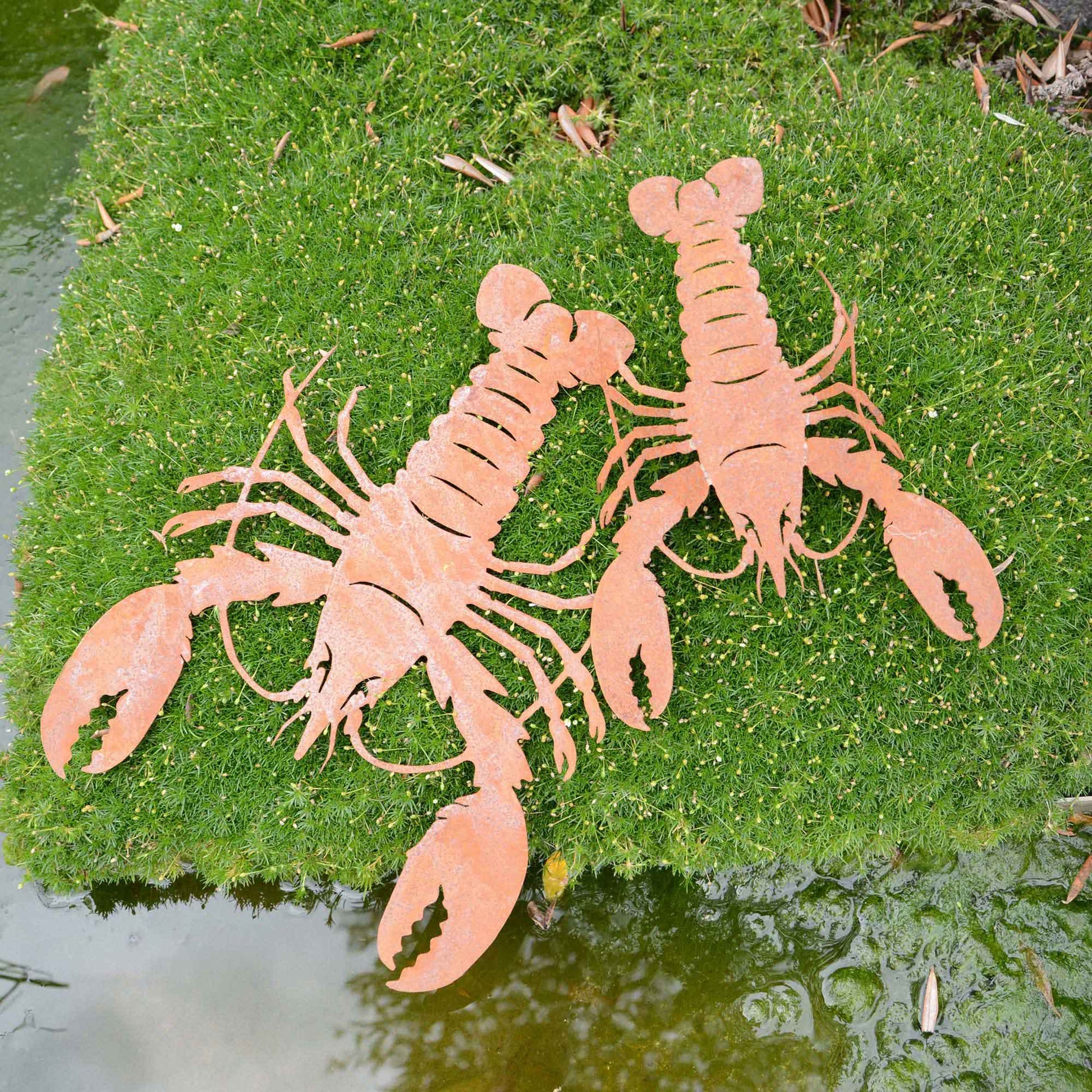 Schöne Dekoration Hummer 2er Set aus Metall in Rostoptik für Ihren Garten oder Wohnbereich