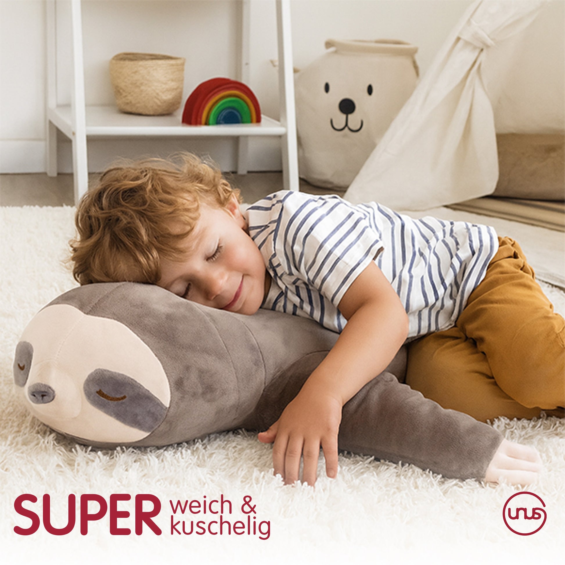 Das UNUS Plüschkissen in Form eines Faultieres besteht aus hochwertigem Material, ist besonders strapazierfähig und eignet sich hervorragend als Seitenschläferkissen, Stillkissen oder als Nackenstütze auf Reisen im Auto oder im Flugzeug. Dank der verschiedenen angebotenen Größen ist für jeden etwas passendes dabei.Die hochwertigen Materialien bieten stets ein weiches und komfortables Gefühl beim Kuscheln und Schlafen auf dem Kissen. Das Faultier ist fusselfrei und fühlt sich zu jeder Zeit sehr angenehm auf der Haut an. Neben dem Einsatz als Schlafkissen können Sie das schläfrige Faultier auch als süße Dekoration im Wohnzimmer, Schlafzimmer oder Kinderzimmer einsetzen.
