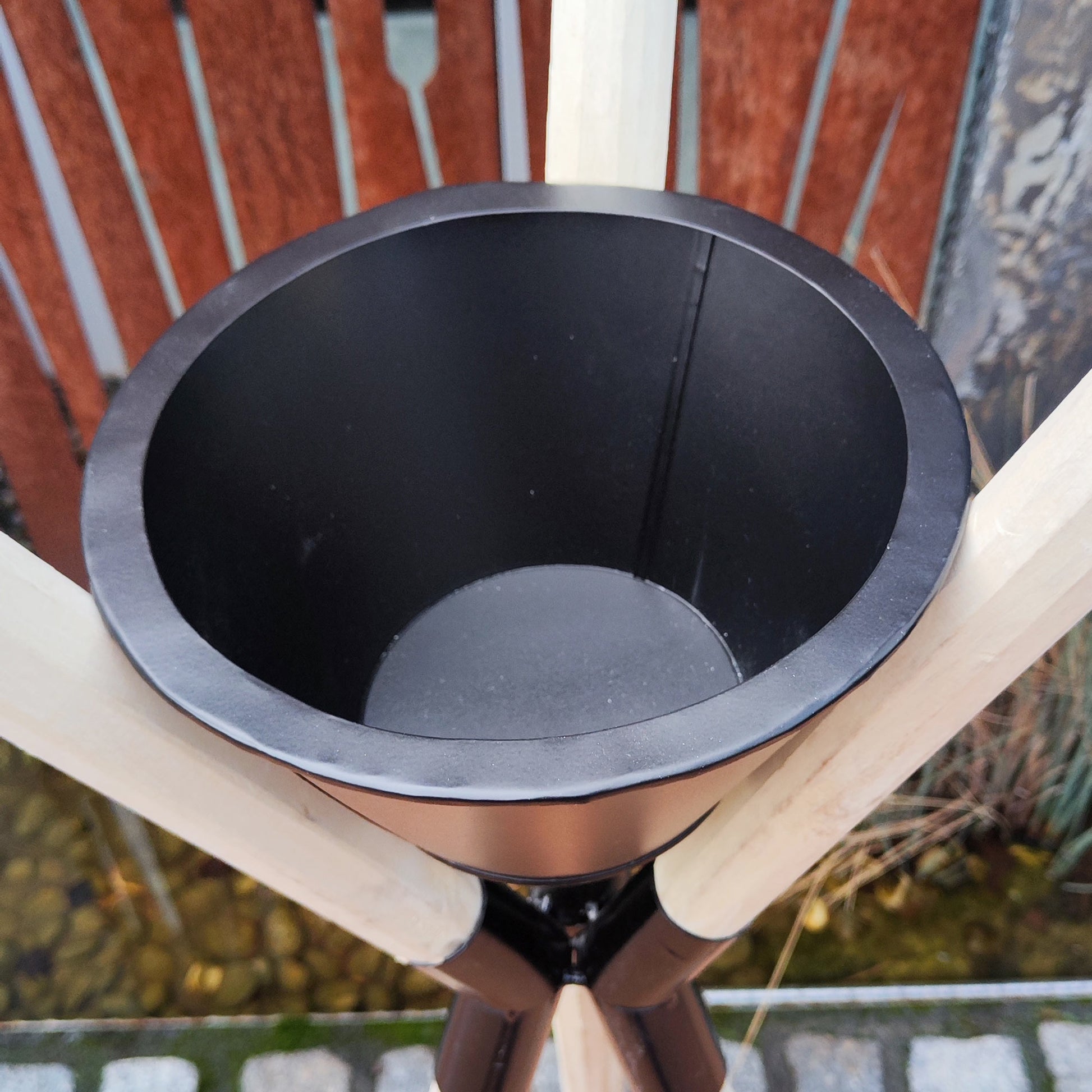 Stilvoll und vielseitig: Moderne Gartenfackel für draußen aus Holz, auch als Fackel und Blumenampel, Blumenständer und Pflanzenständer nutzbar