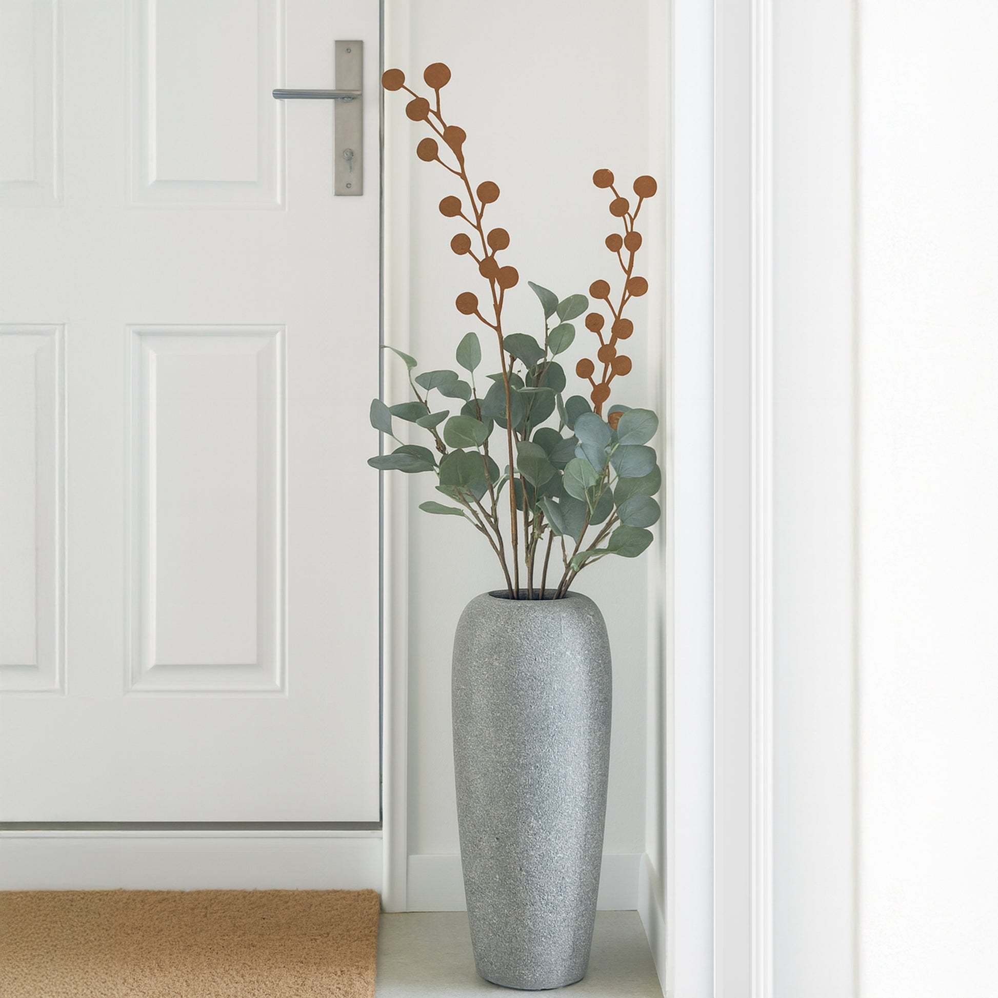 Verleihen Sie Ihrem Garten eine natürliche und elegante Note: Der dekorative Eukalyptus-Roststecker aus Metall bringt harmonische Formen und warme Farbnuancen in Ihren Außenbereich. Mit seiner filigranen Gestaltung und einer Höhe von 104 cm wird er schnell zum Blickfang in Beeten, Pflanzkübeln oder Rabatten. Die edle Rostpatina sorgt für einen besonderen Charme, der sich perfekt mit Pflanzen und Blumen kombinieren lässt.