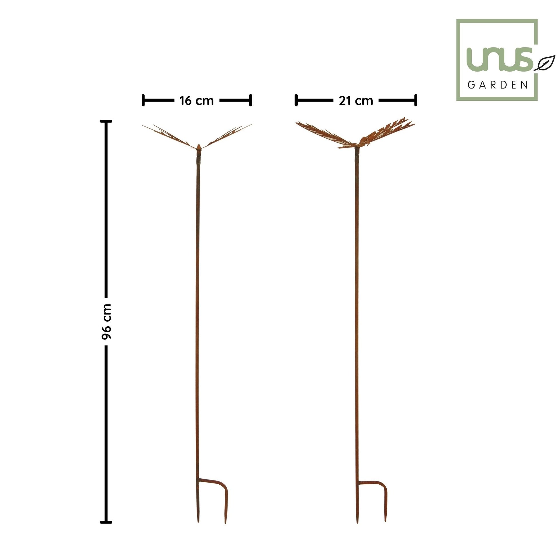 Das UNUS Gartenstecker Set mit zwei filigran gestalteten Libellen aus rostfarbenem Metall bringt natürliche Eleganz in jeden Außenbereich. Die kunstvoll ausgeschnittenen Flügel und die authentische Edelrost Optik machen die Libellen zu einem dekorativen Blickfang in Beeten, Pflanzkübeln oder auf der Terrasse.