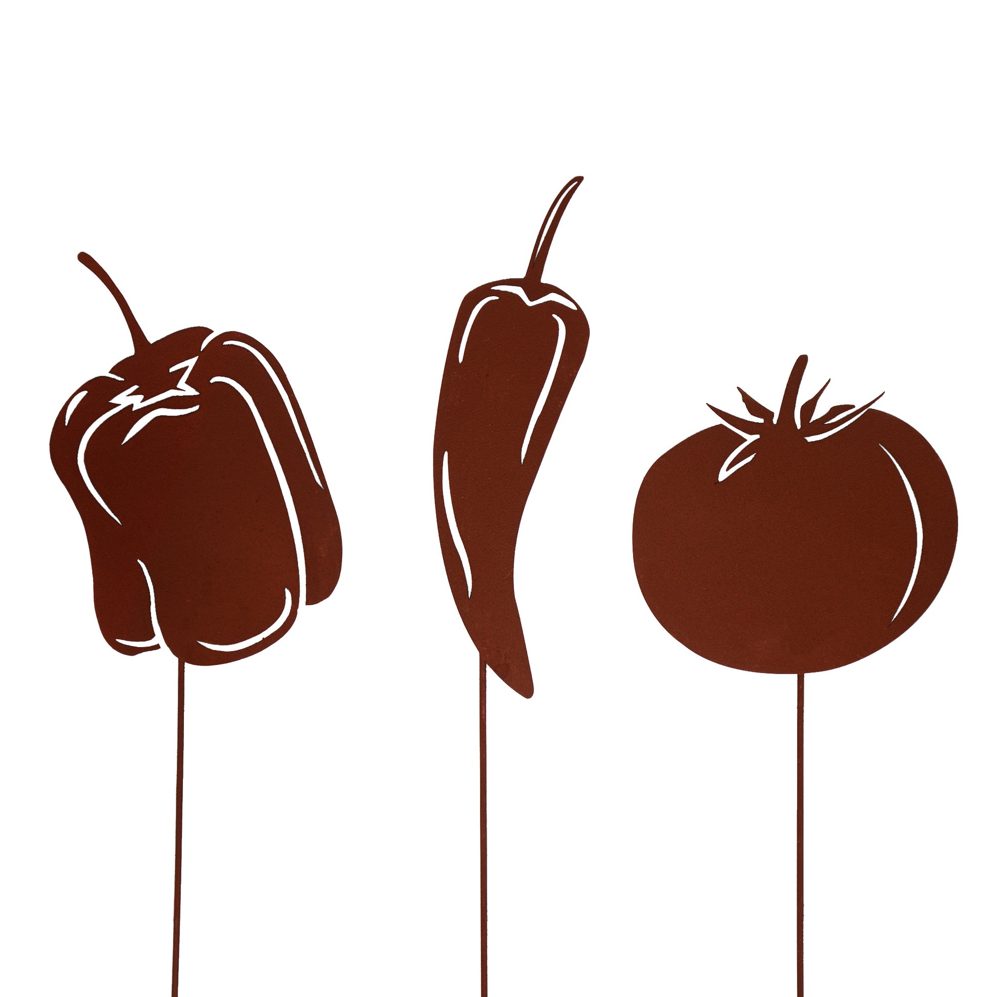Gartenstecker Mediterranes Gemüse - 3er Set - Rostoptik