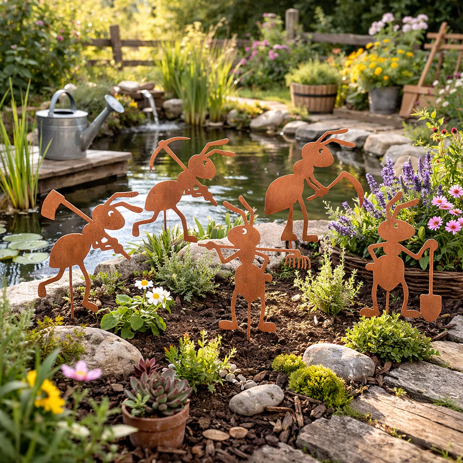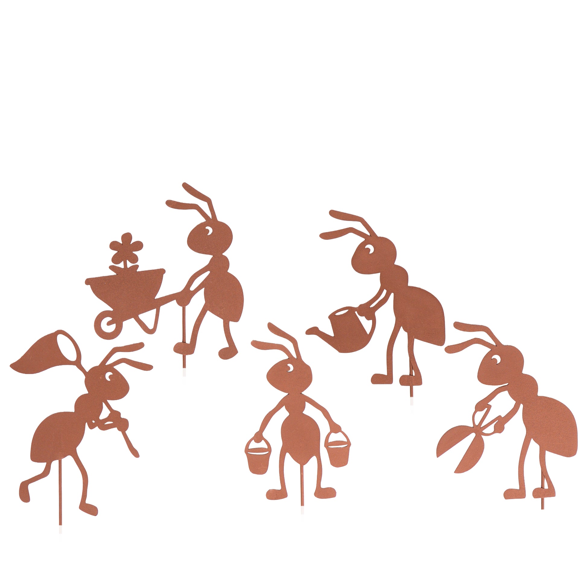 Gartenstecker Rost Ameisen Gärtner und Arbeiter 5er Set in verschiedenen Größen