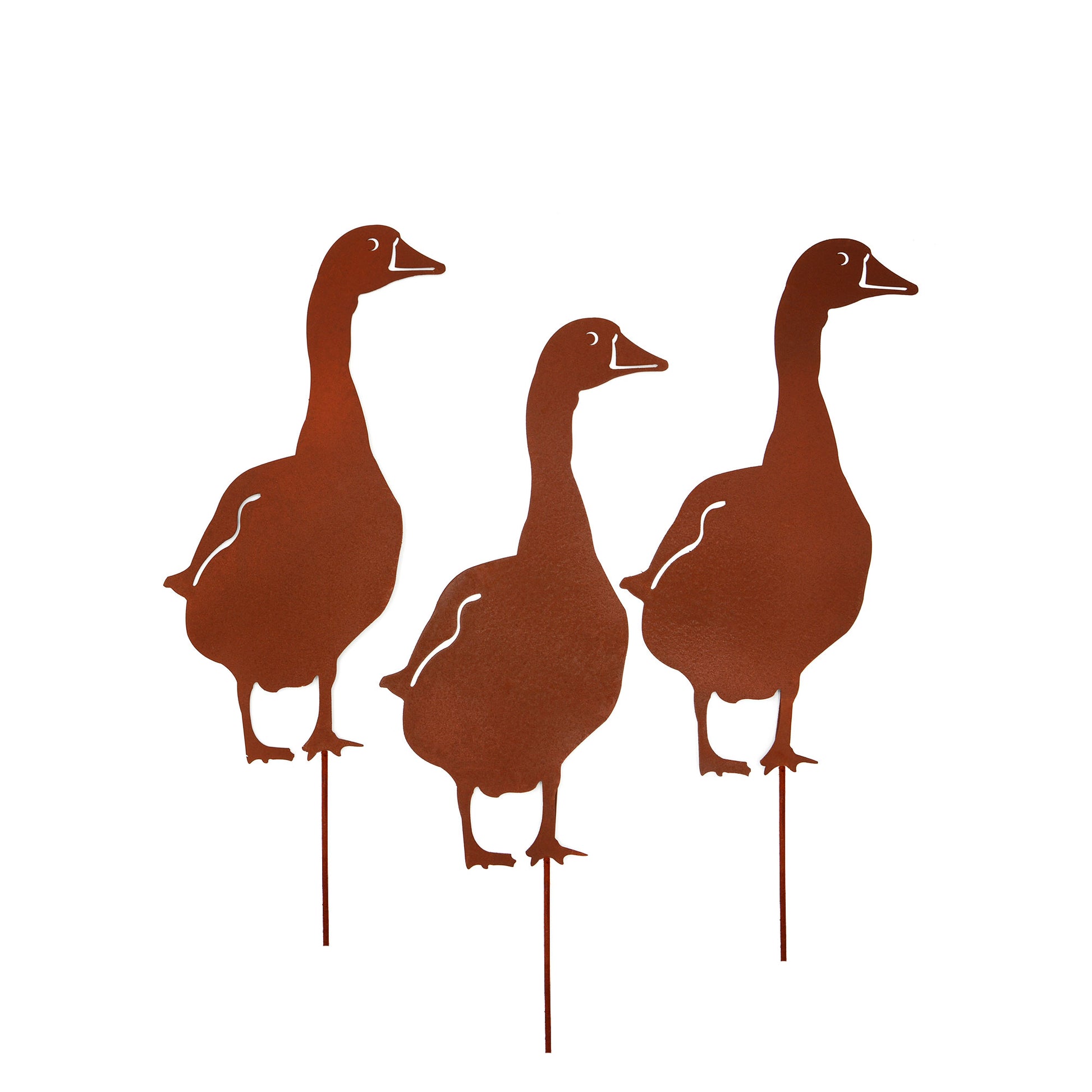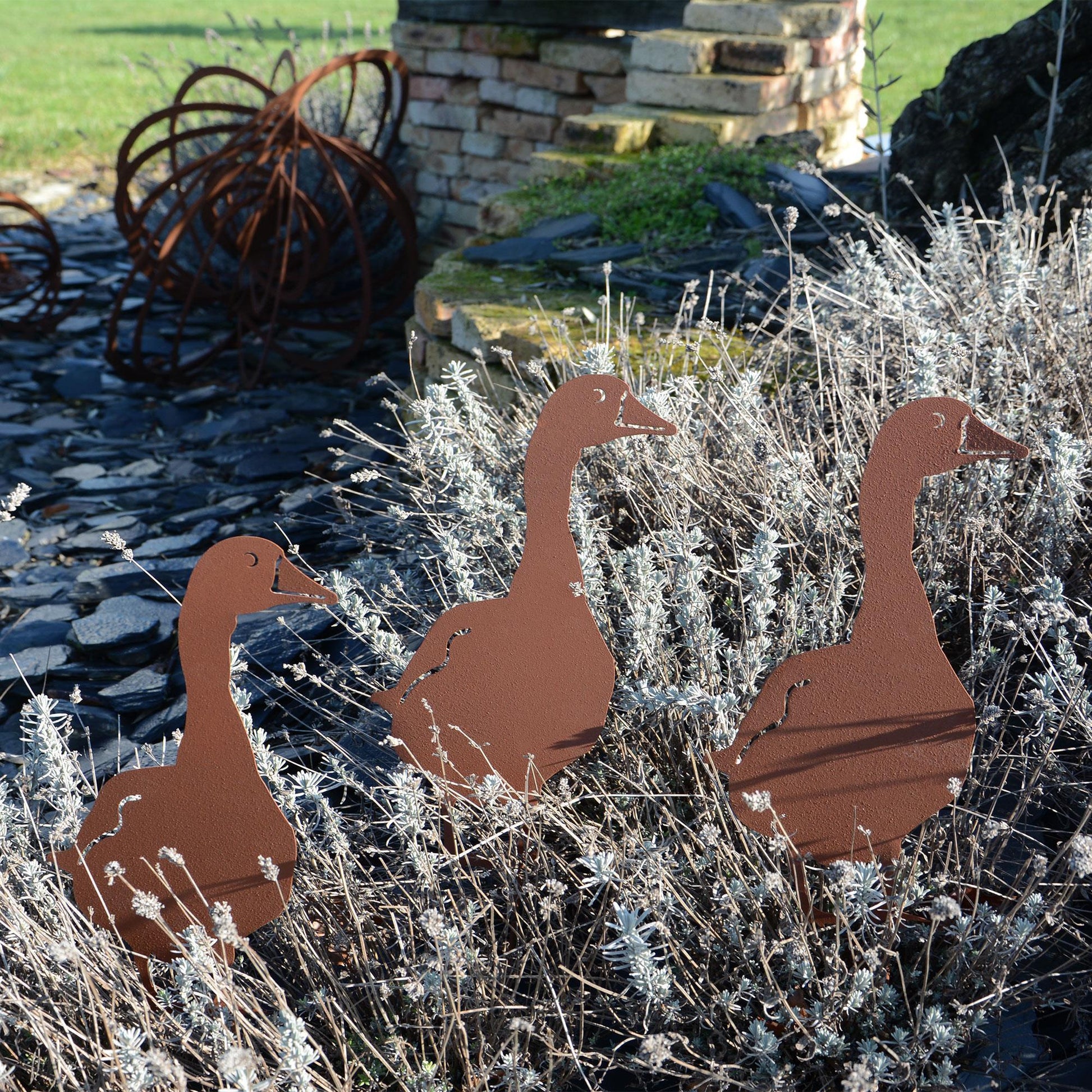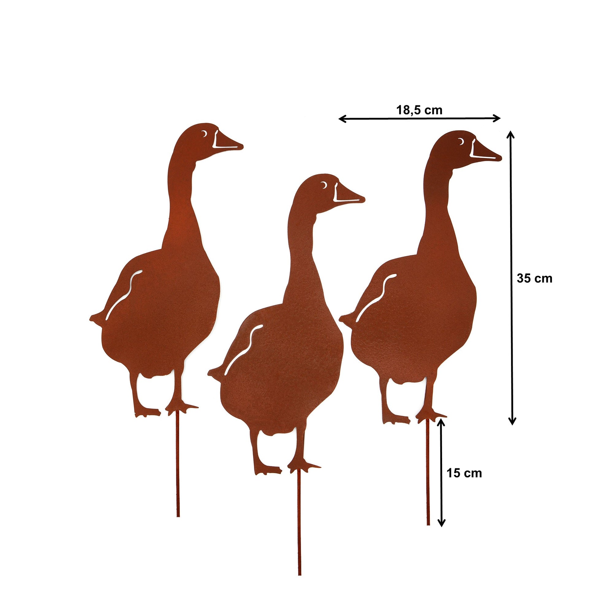 UNUS Garden Gänse Gartenstecker 3er Set, Gartendeko Rostoptik, Roststecker aus Edelrost Metall, Rost Deko für Garten, Terrasse, Balkon oder Blumentopf