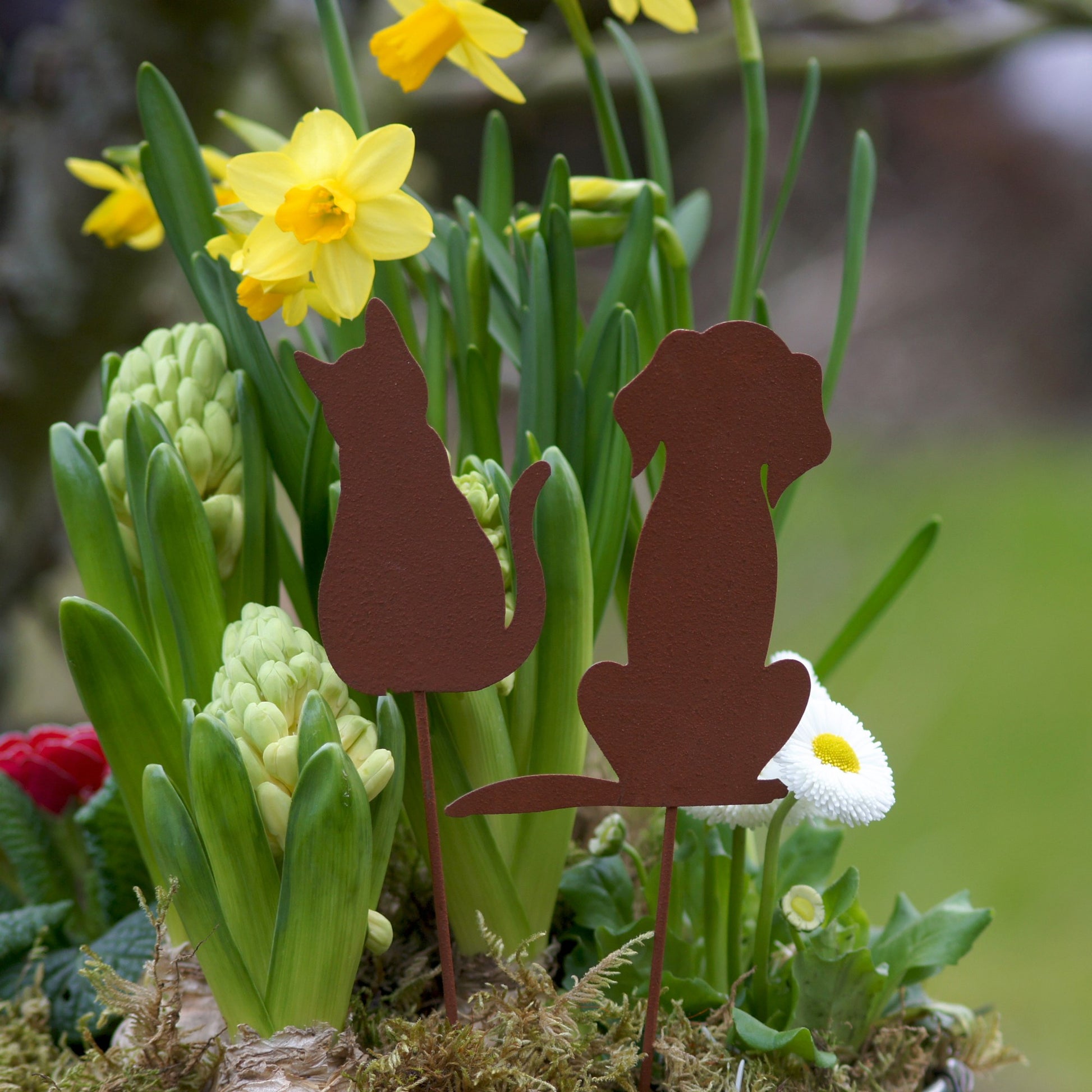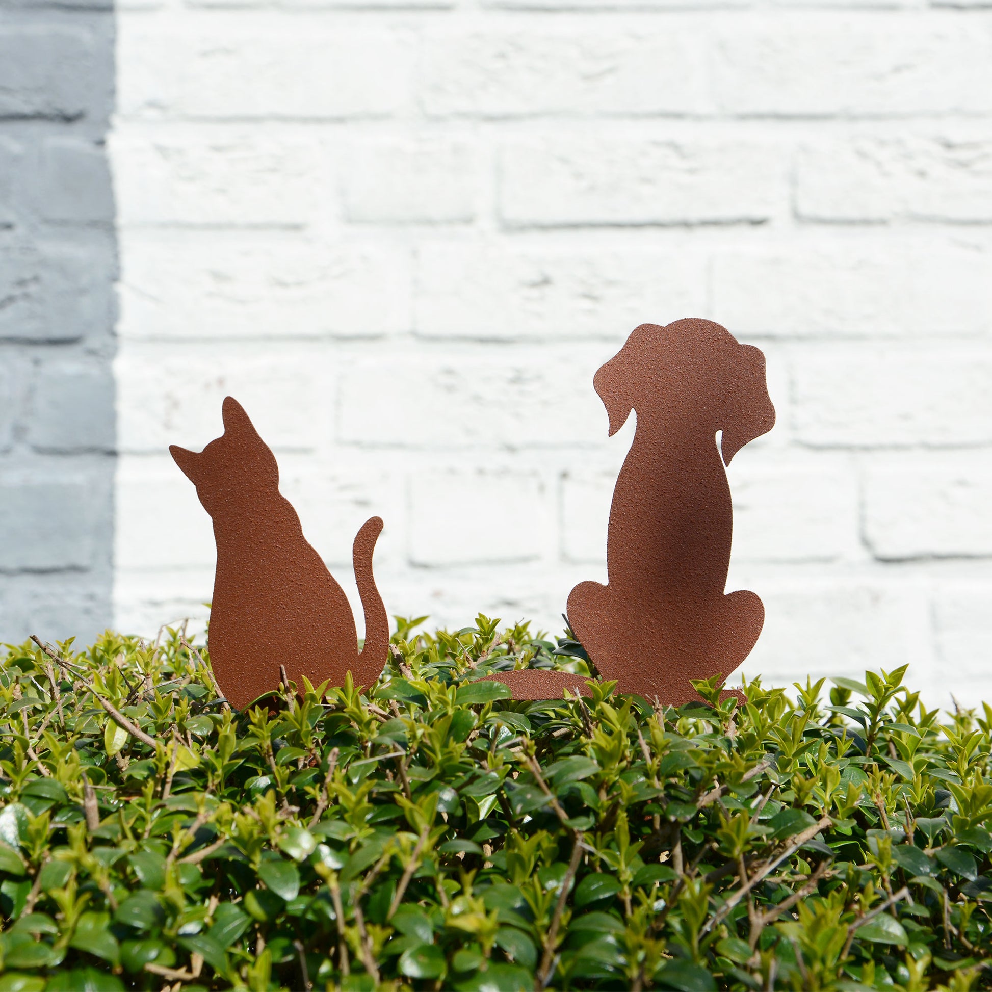 UNUS Garden Hund und Katze Gartenstecker 2er Set, Gartendeko Rostoptik, Roststecker aus Edelrost Metall, Rost Deko für Garten Terrasse Balkon Blumentopf