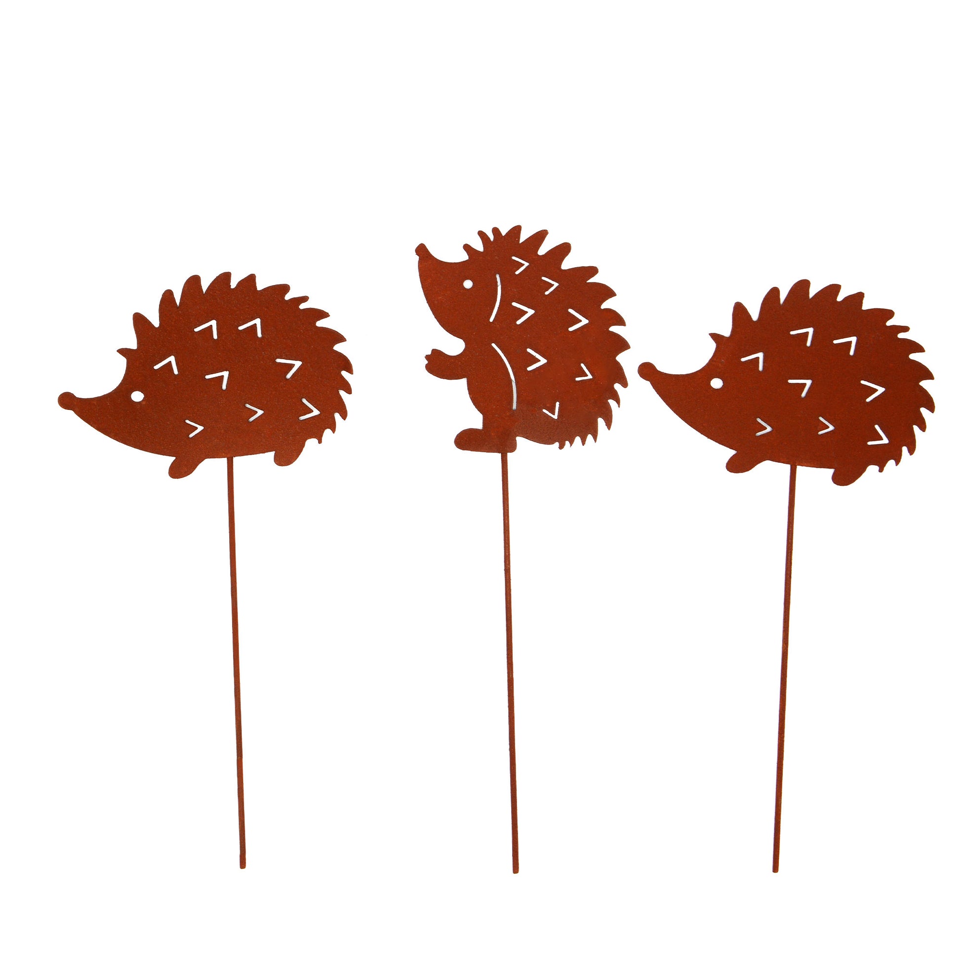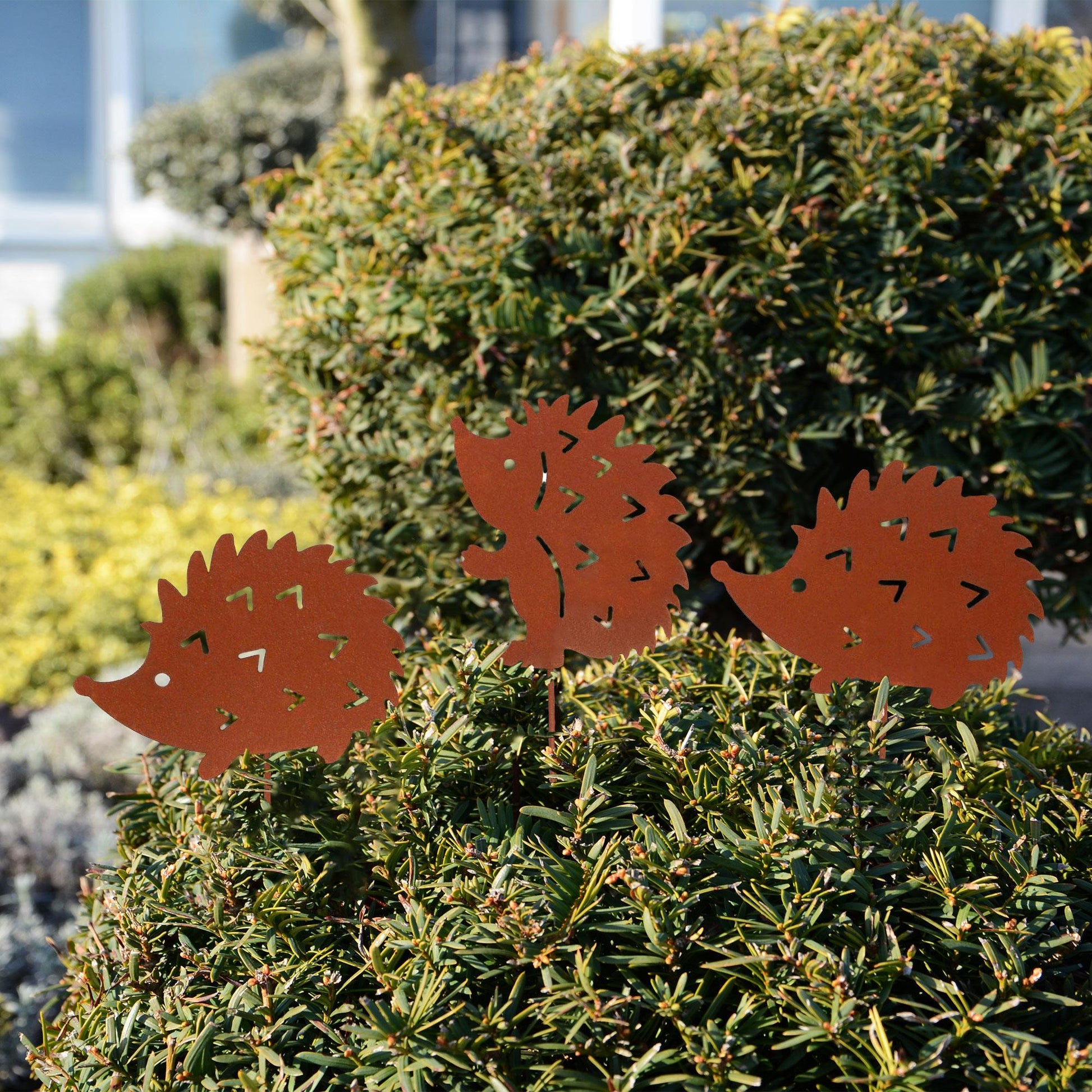 UNUS Garden Igel Gartenstecker 3er Set, Gartendeko Rostoptik, Roststecker aus Edelrost Metall, Rost Deko für Garten Terrasse Balkon Blumentopf