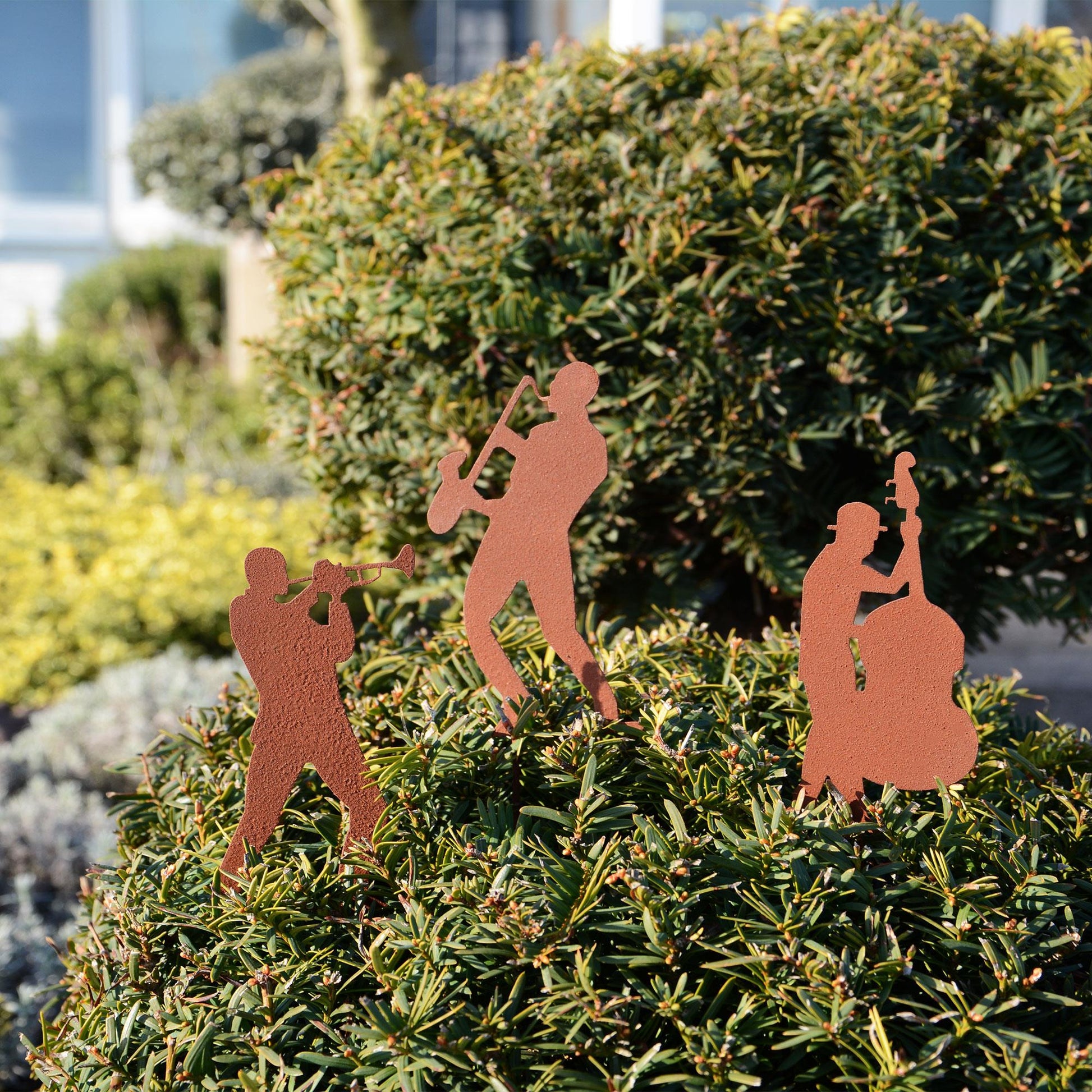 Machen Sie Ihren Garten mit unseren Gartenstecker aus Edelrost noch schöner. Die wunderschönen Musiker lassen sich in fast jeder Umgebung integrieren. Die kunstvoll gezeichneten, feinen Formen bringen das gewisse Etwas in Ihren Garten. Die Handhabung der Stecker ist kinderleicht. Einfach die Stäbe in die Erde drücken und schon ist Ihr Garten oder Blumentopf dekoriert.
