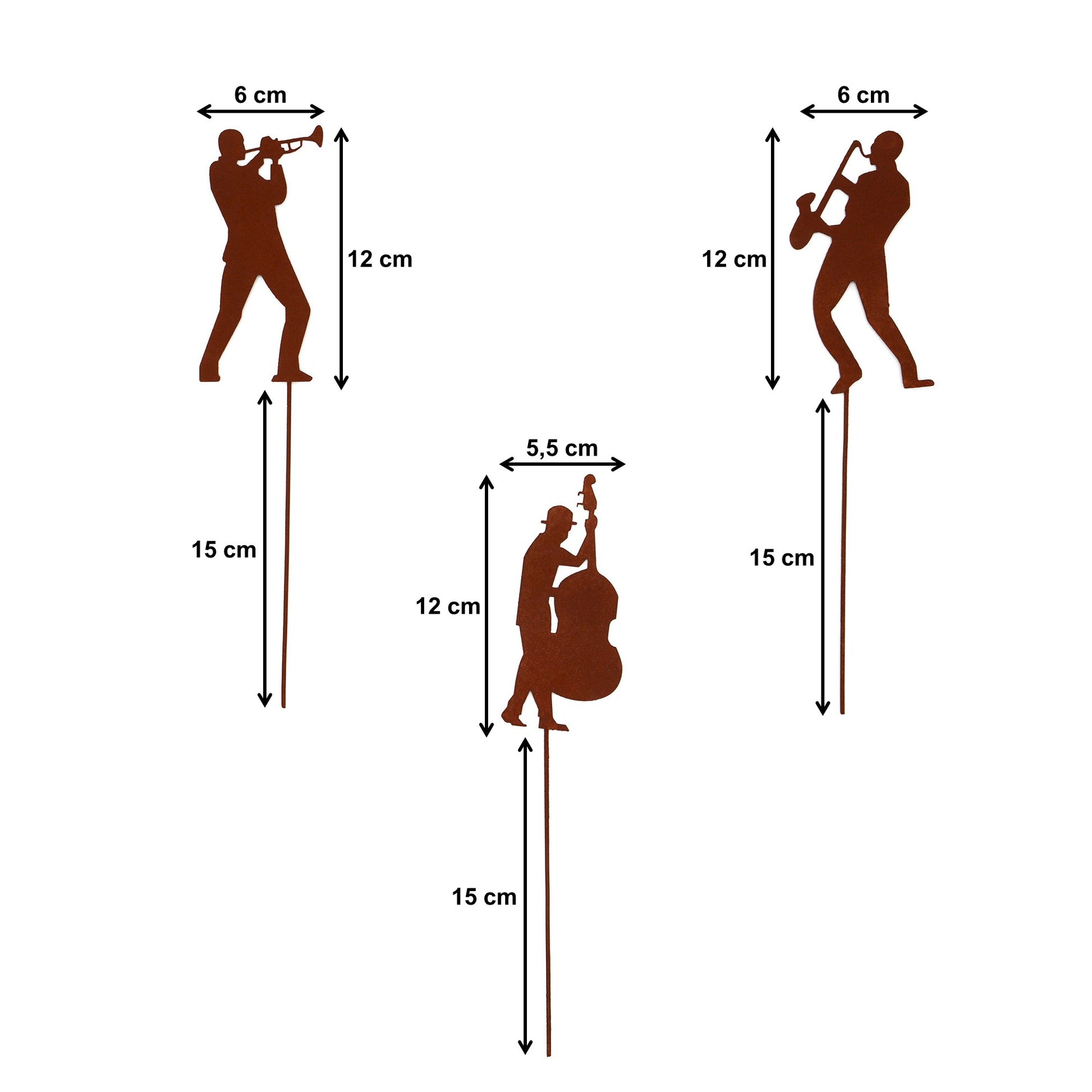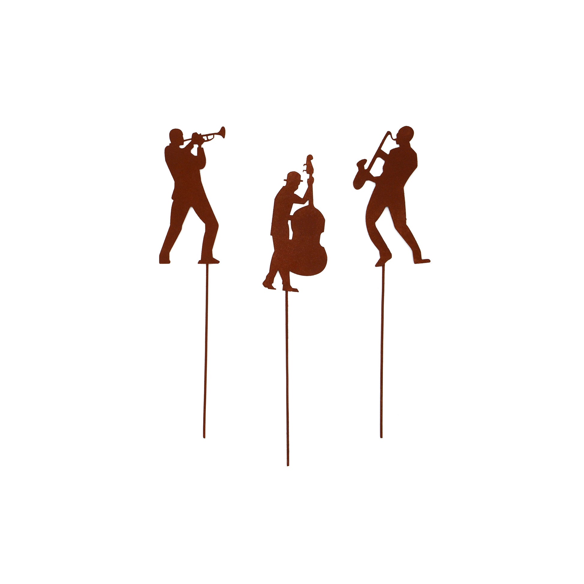 Die Musiker bestehen aus robustem und hochwertigen Metall mit einer einzigartigen Rostoptik. Die Roststecker können sowohl drinnen als auch draußen dekoriert werden. Die Gartenstecker eignen sich auch hervorragend als außergewöhnliches und kreatives Geschenk für Gartenfreunde und Dekofans! Die Pflanzenstecker werden mit fixierten Stäben geliefert und lassen sich ganz bequem und unkompliziert aufstellen. Die Musiker werden zum Hingucker in Ihrem Garten und ziehen die Blicke Ihrer Nachbarn auf sich.