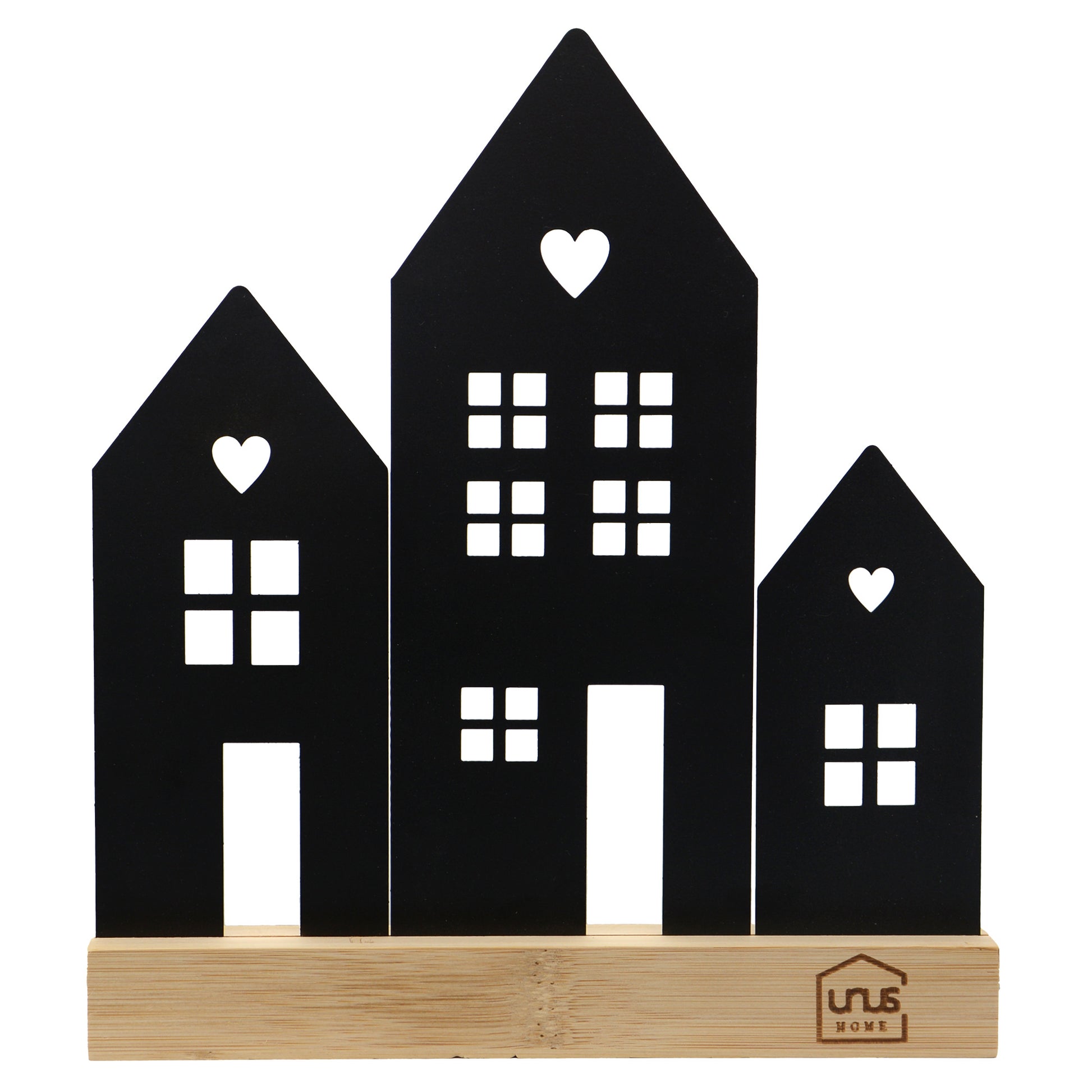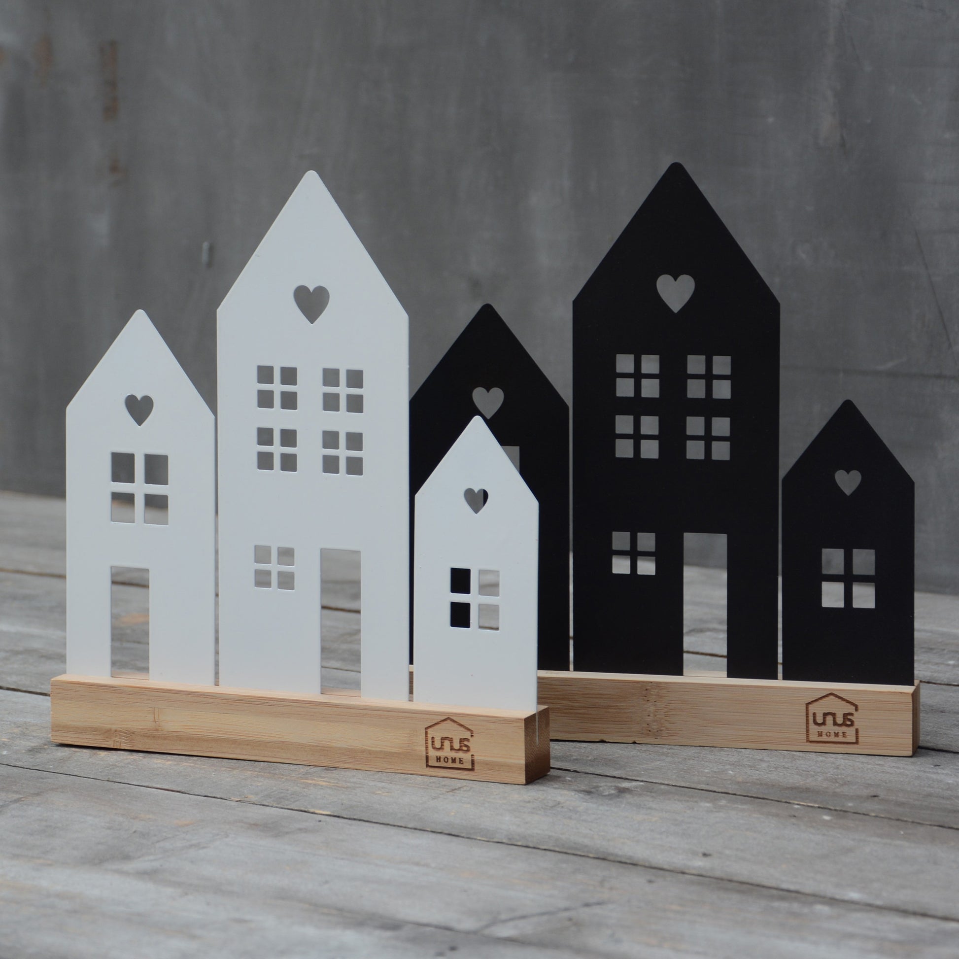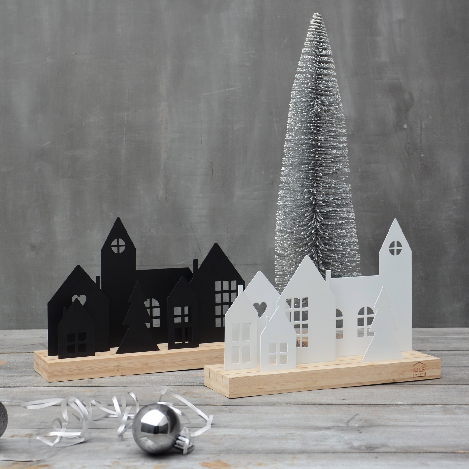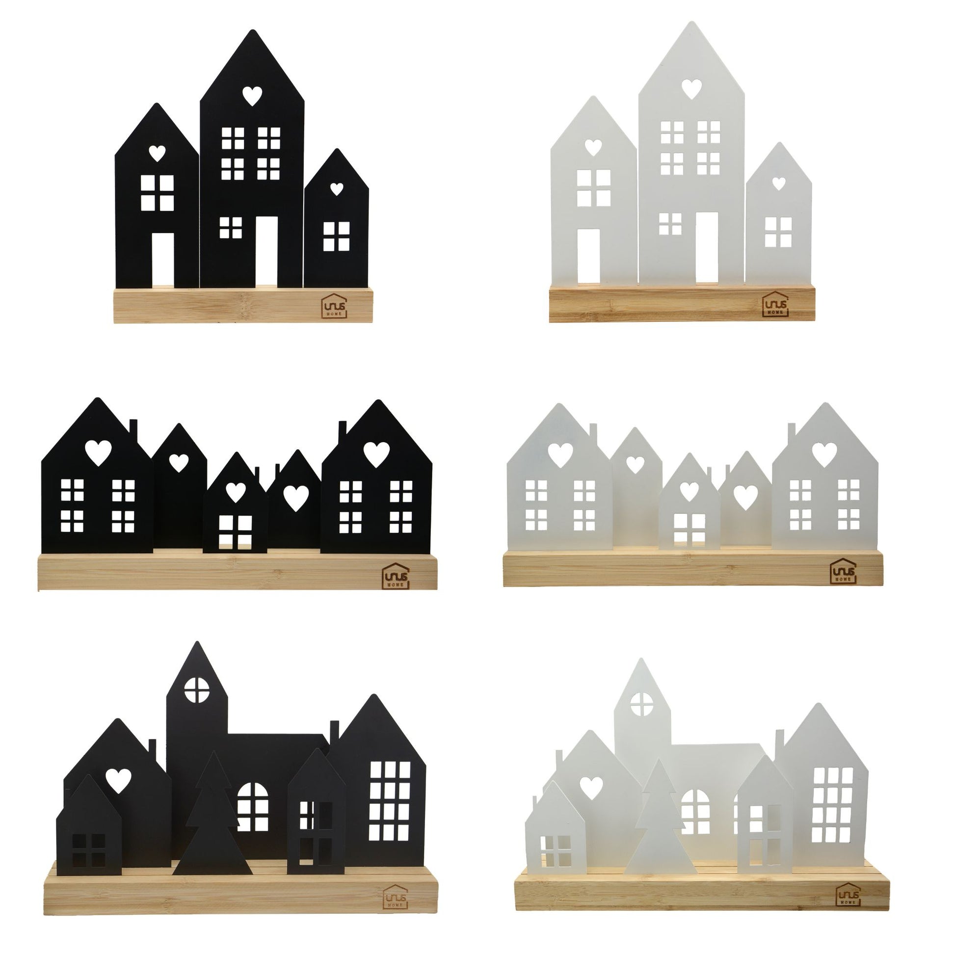 Unsere stimmungsvollen Häuser-Aufsteller bringen das ganze Jahr über eine gemütliche Atmosphäre in dein Zuhause. Die detailverliebten Dekorationsstücke sind aus Metall gefertigt und stehen auf einem eleganten Ständer aus natürlichem Bambus-Holz. Sie gibt es in 3 verschiedenen Größen - jeweils in Schwarz oder Weiß.