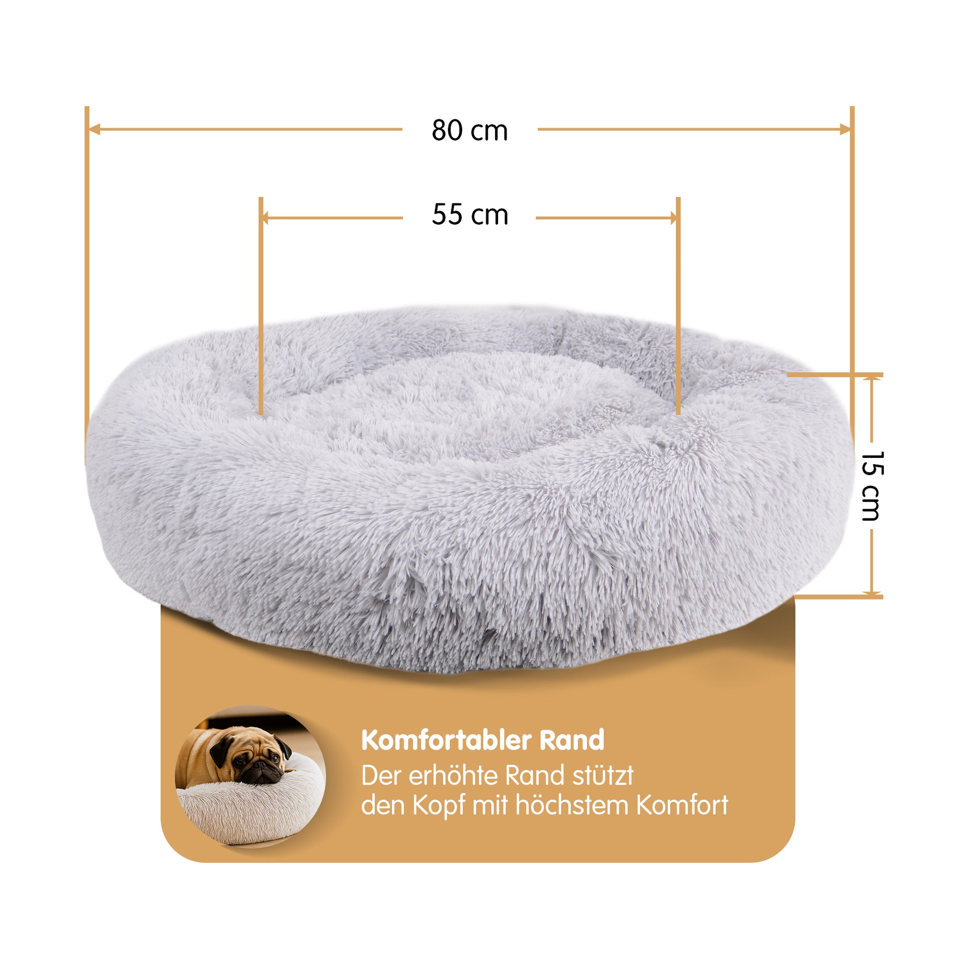 Dieses kuschelige Haustierkissen bietet Katzen und Hunden einen weichen, angenehmen Schlafplatz. Die runde Form und der erhöhte Rand vermitteln Geborgenheit und fördern erholsames Ausruhen und Schlafen.