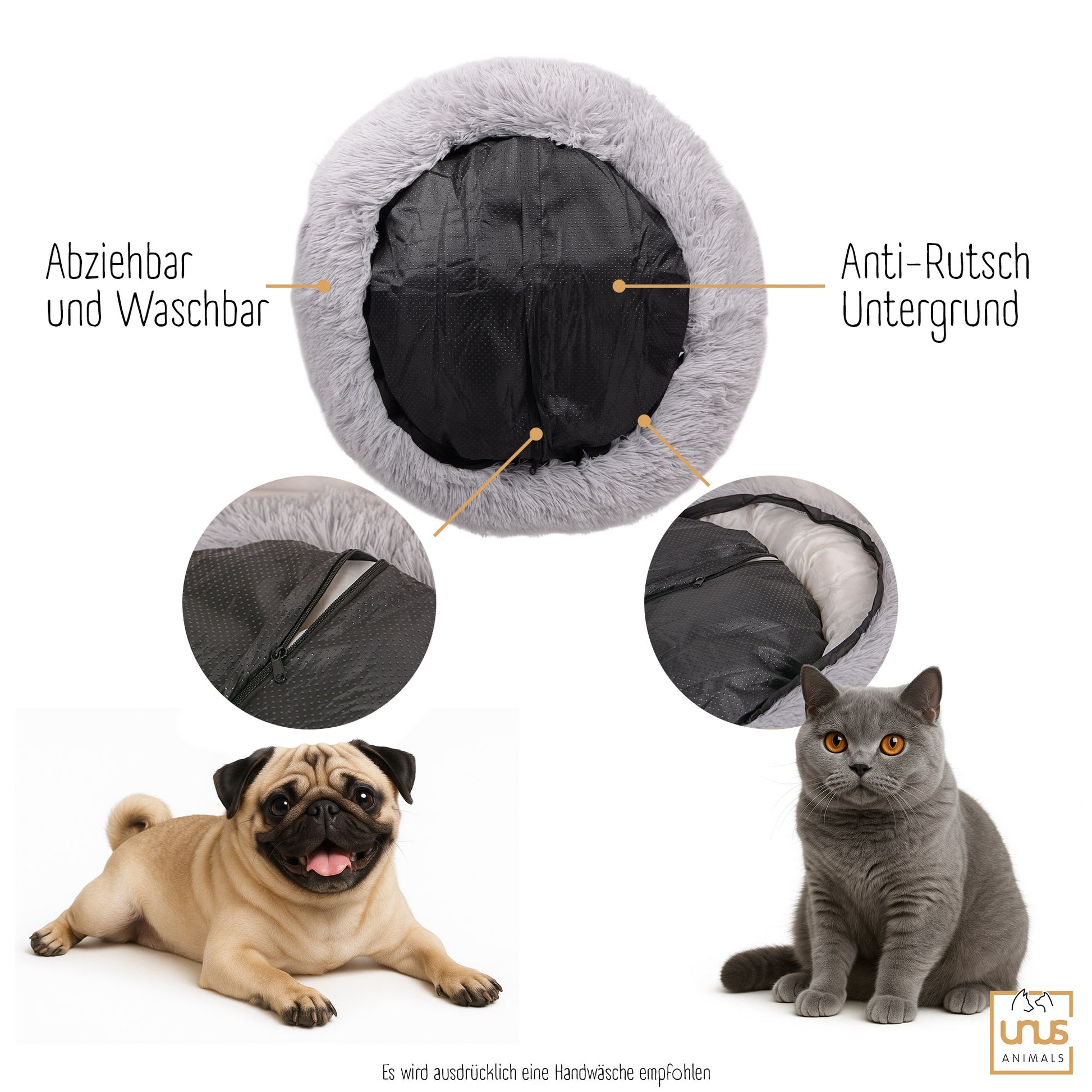 UNUS Haustierkissen Plüsch rund – für Katzen & Hunde