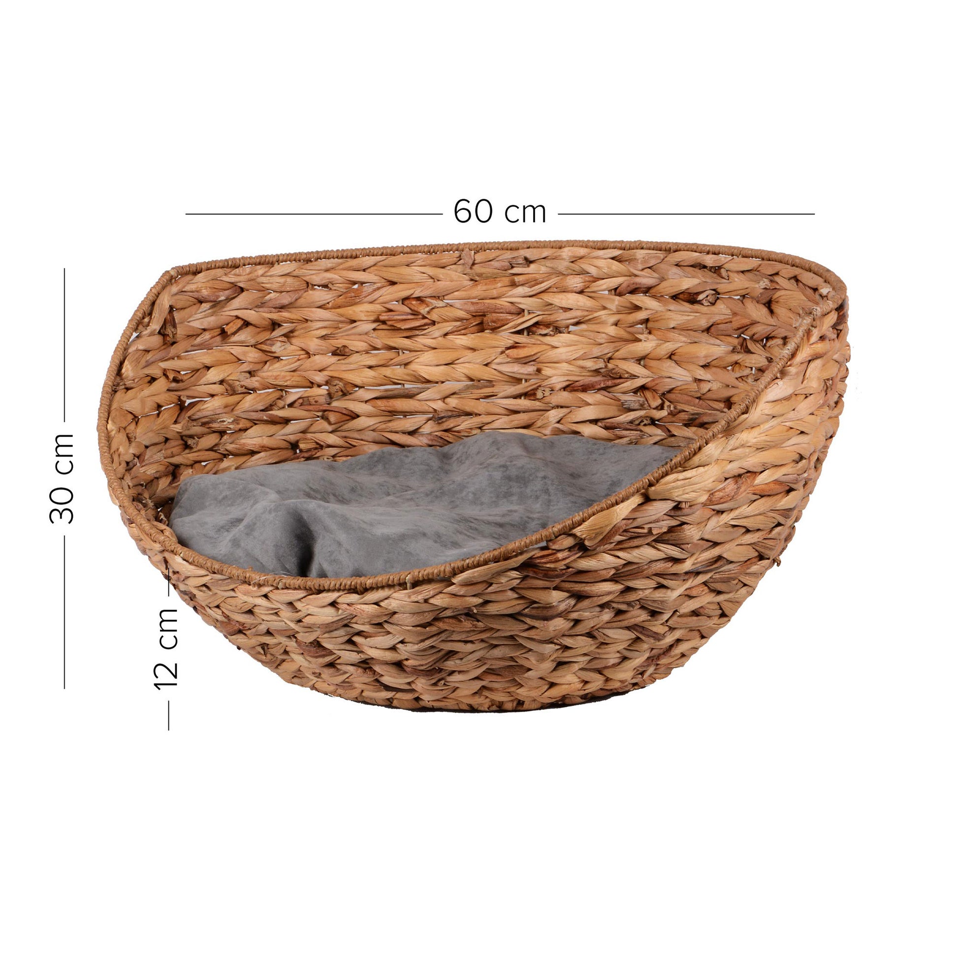 Haustierkorb rund/halboffen natur mit Kissen grau