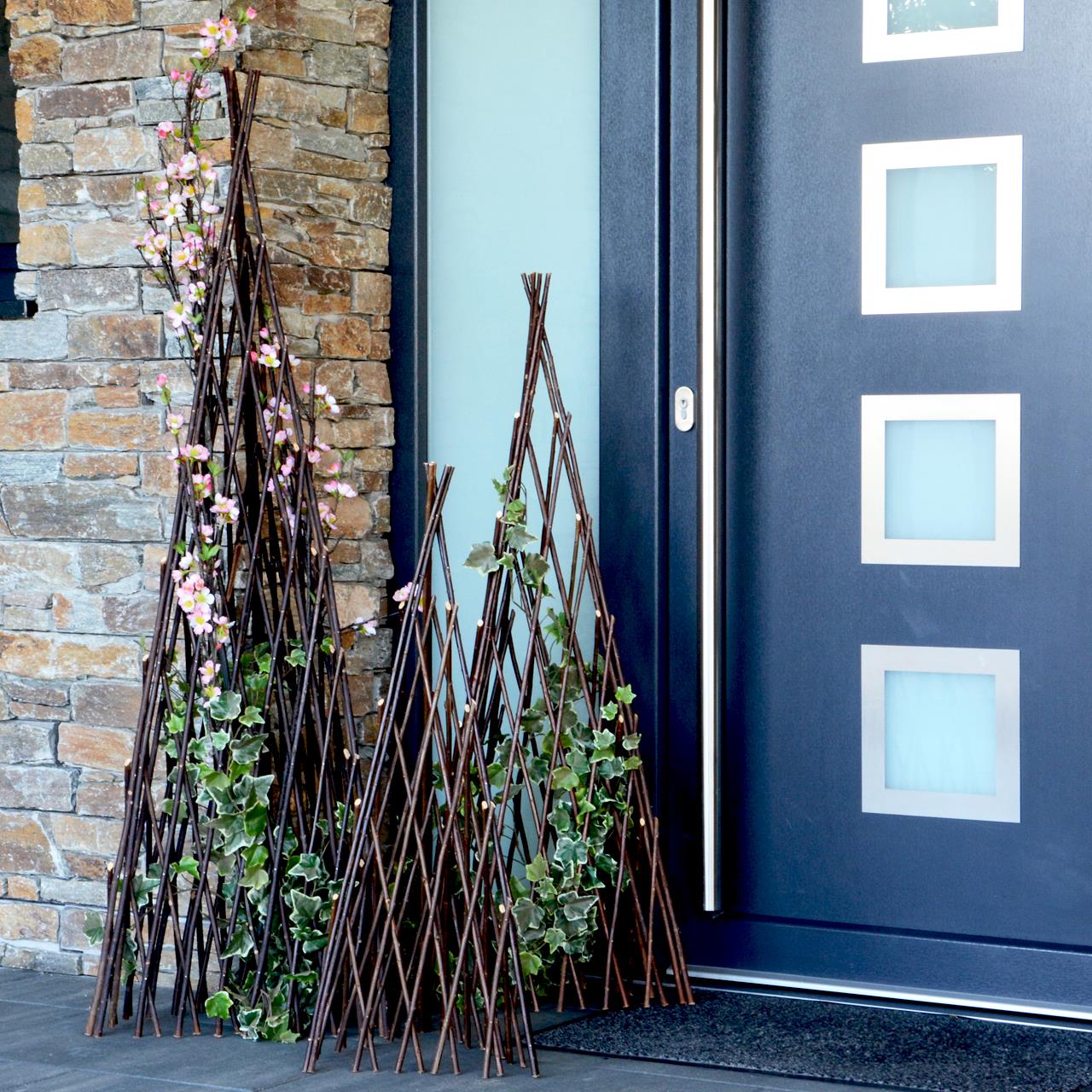 Set aus 3x Rankpyramide Spalier Rankobelisk als dekorative Rankhilfe aus Weide