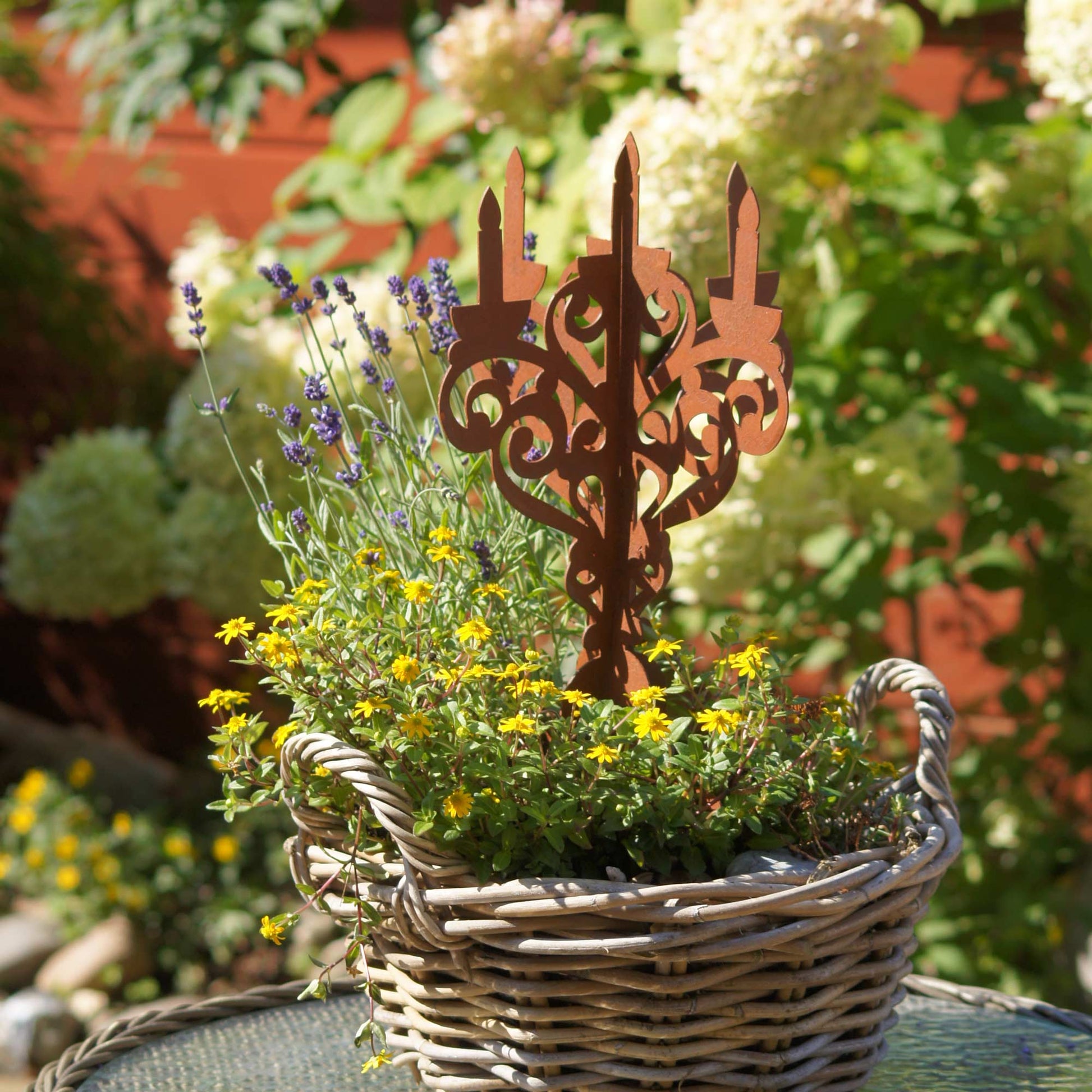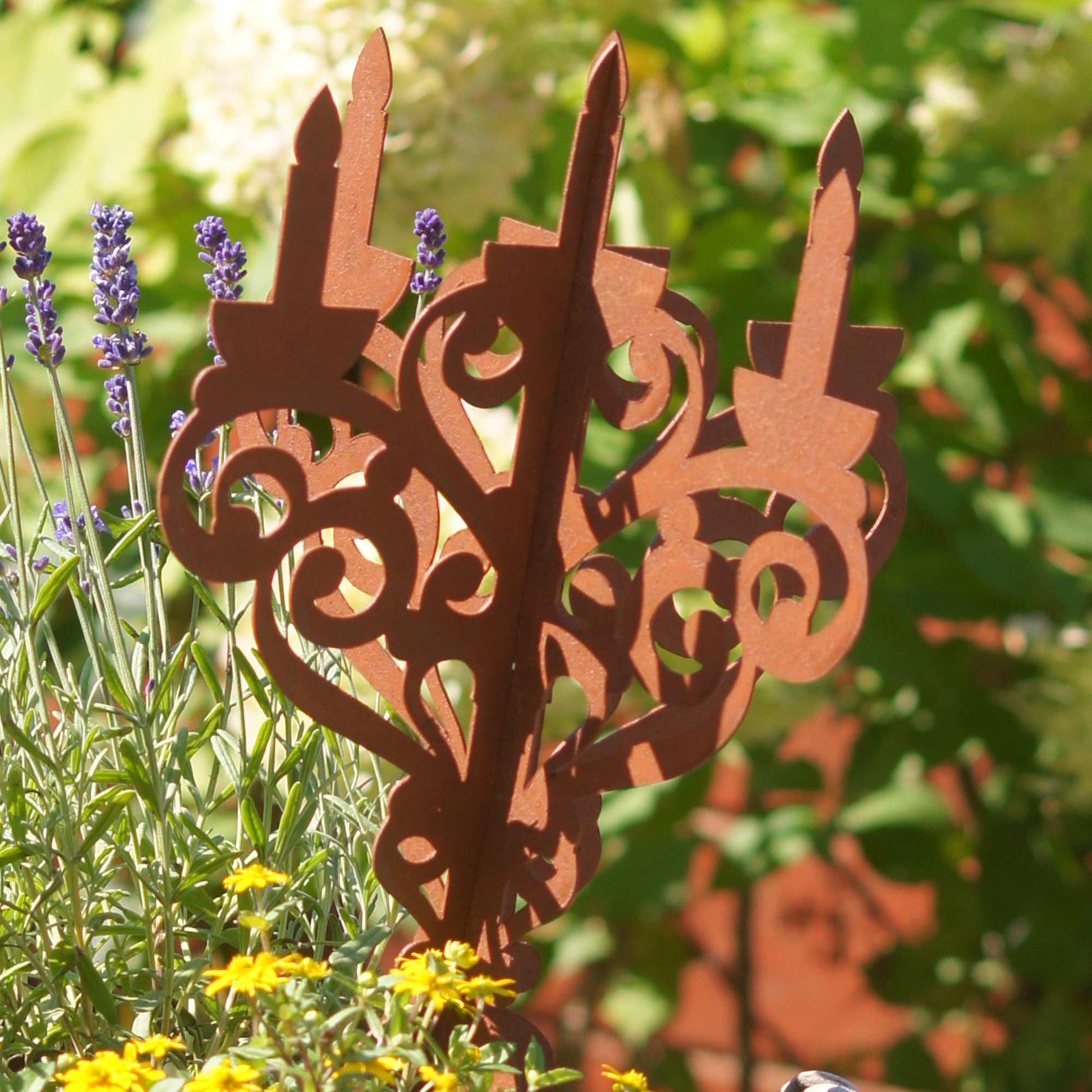Der Gartenstecker wurde aus robustem Metall gefertigt. Der Roststecker ist witterungsfest und frostfest. Sie können ihn das ganze Jahr über draußen stehen lassen.