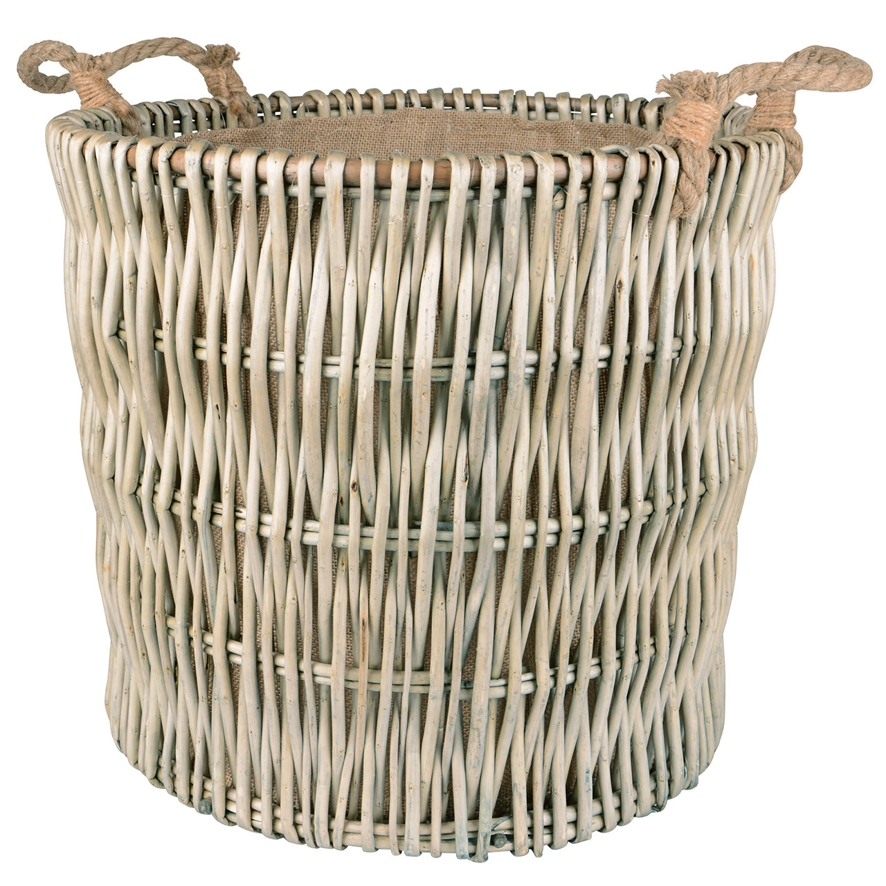 Korb Weide rund 2 Seilgriffe innen grau weiß