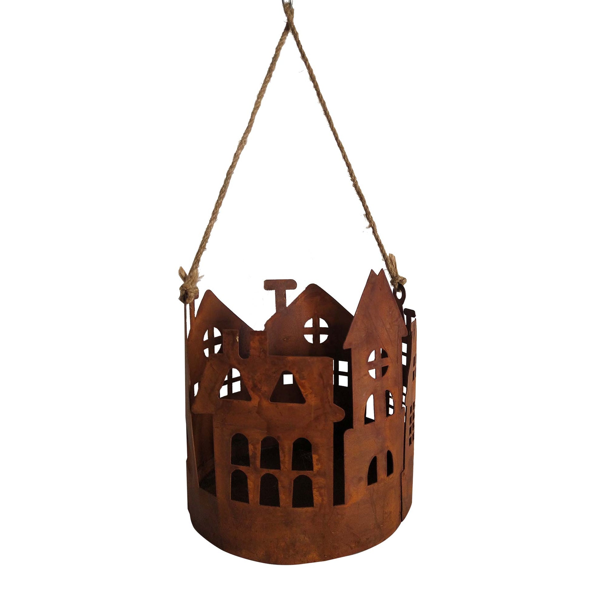 Machen Sie Ihren Garten oder Ihr Zuhause mit unserer dekorativen Gartenlaterne aus Edelrost noch schöner. Das wunderschöne Windlicht lässt sich in fast jede Umgebung integrieren. Es ist vor allem als hübsche Dekoration für Ihren Garten geeignet, macht sich aber auch gut auf der Terrasse, dem Balkon oder in Ihrem Zuhause. Die kunstvoll gezeichneten, feinen Formen bringen das gewisse Etwas mit. Die Laterne einfach an der Kordel aufhängen und schon ist Ihr Garten oder Ihr Zuhause dekoriert.