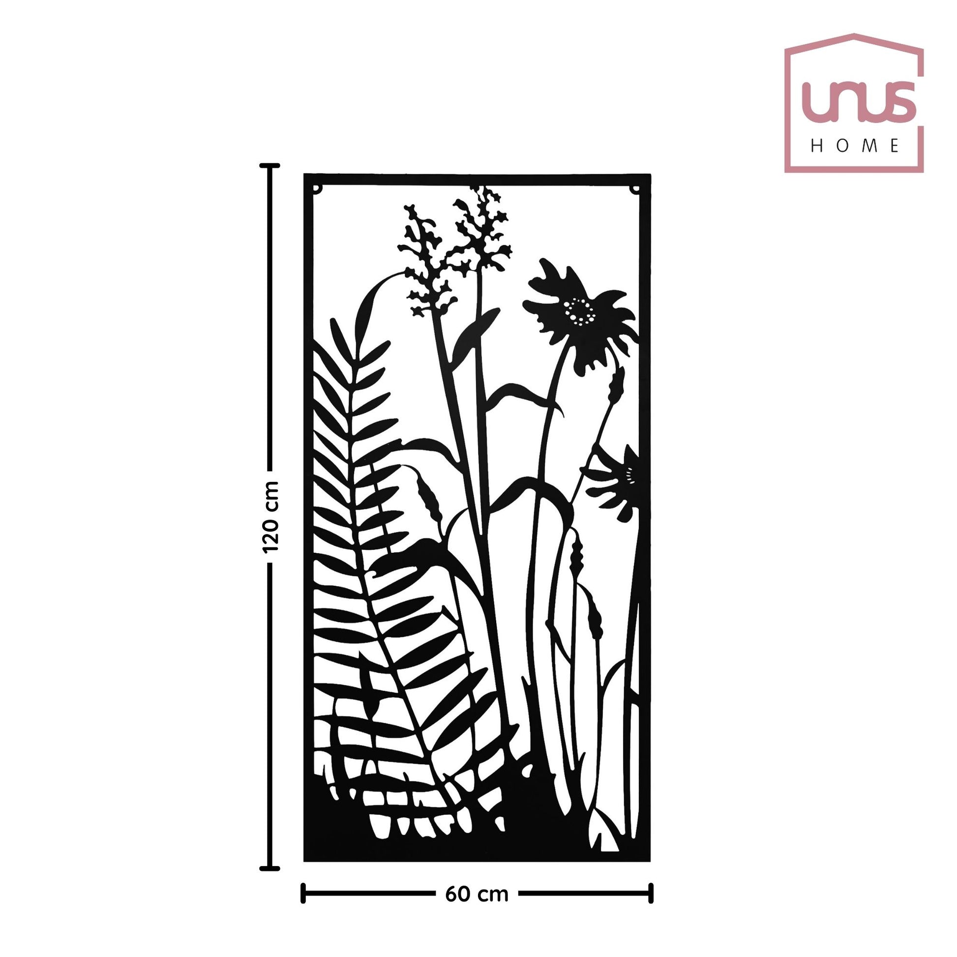 UNUS® Metallbild Farn und Blumen – stilvolle Wanddeko mit Haken