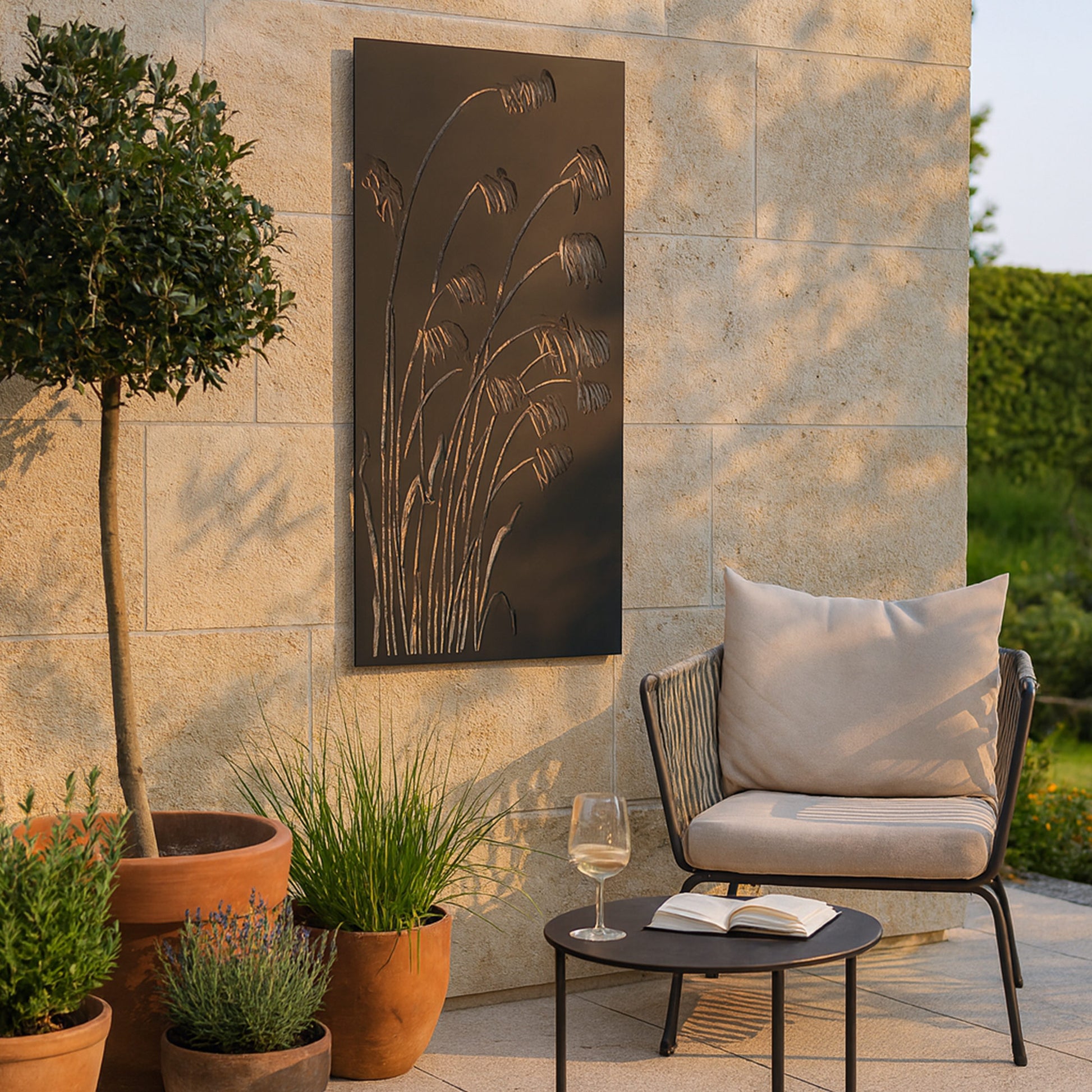 Mit dem UNUS® Metallbild Schilfrohr setzen Sie auf eine Wanddeko, die Natürlichkeit und modernes Design harmonisch verbindet. Ideal für eine stilvolle Wohn- und Gartengestaltung.