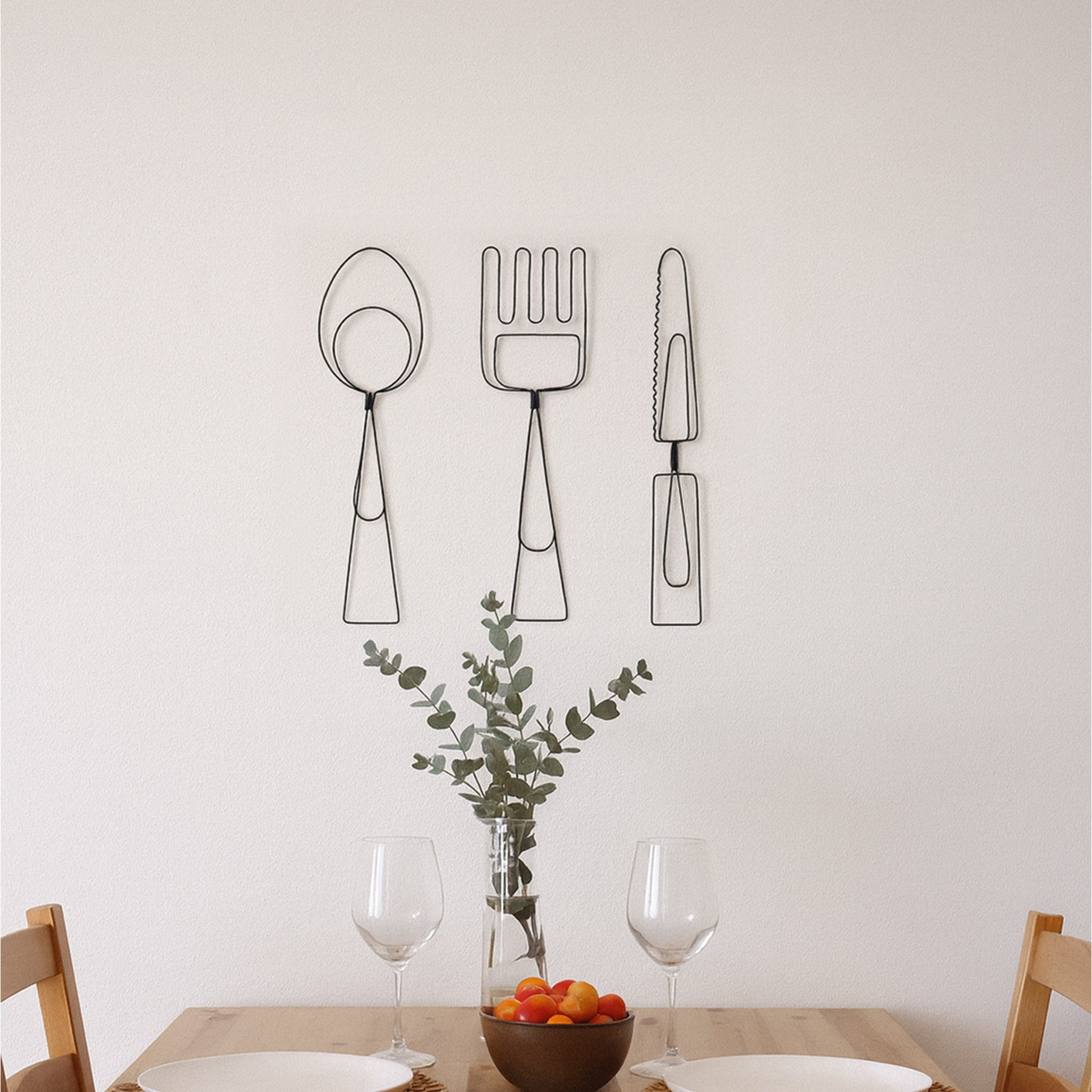 Ob in der Küchenzeile, im Essbereich oder als charmantes Detail in einem kleinen Café – die Besteck-Dekoration bringt modernen Stil in jeden Raum. Dank des leichten Gewichts ist die Montage einfach und flexibel.