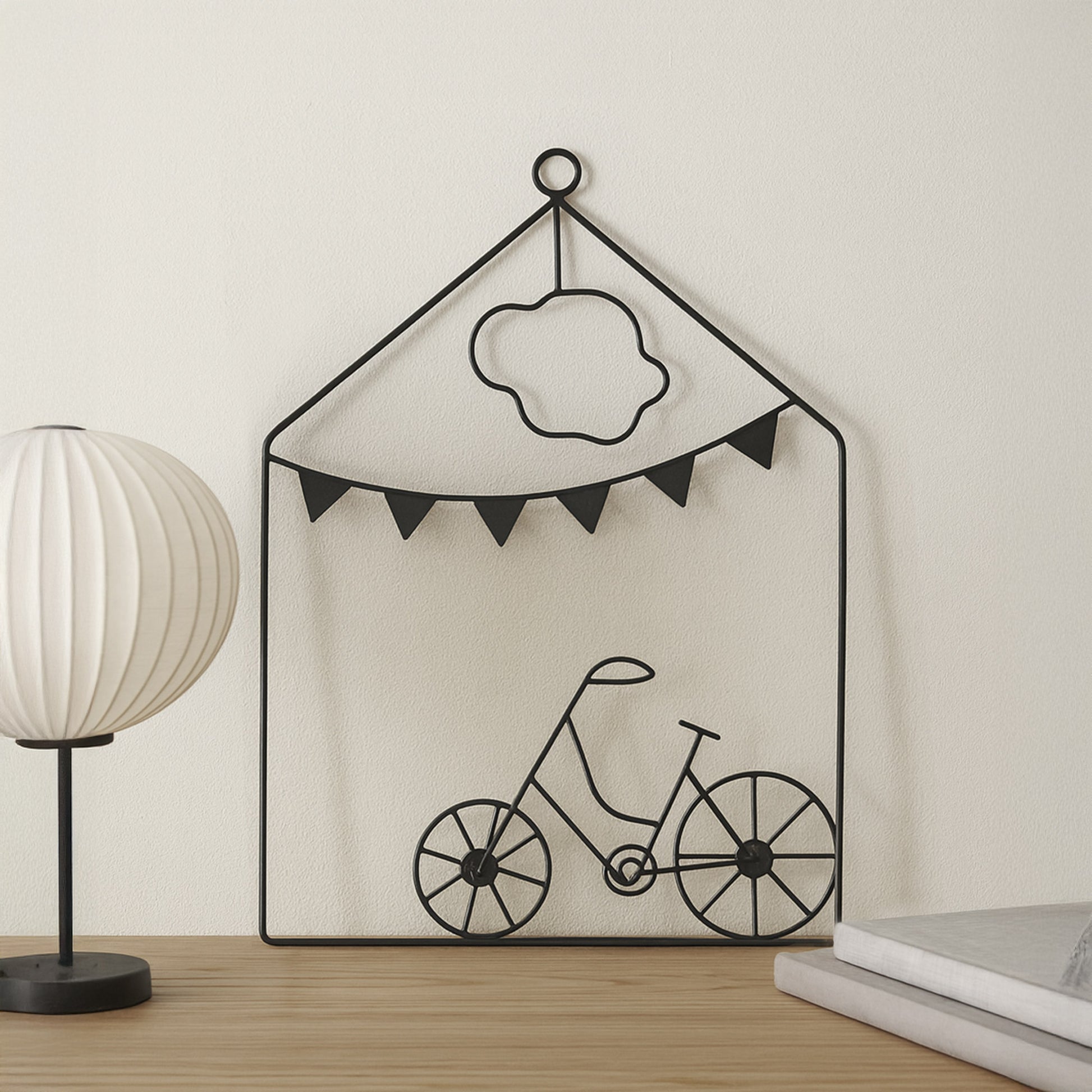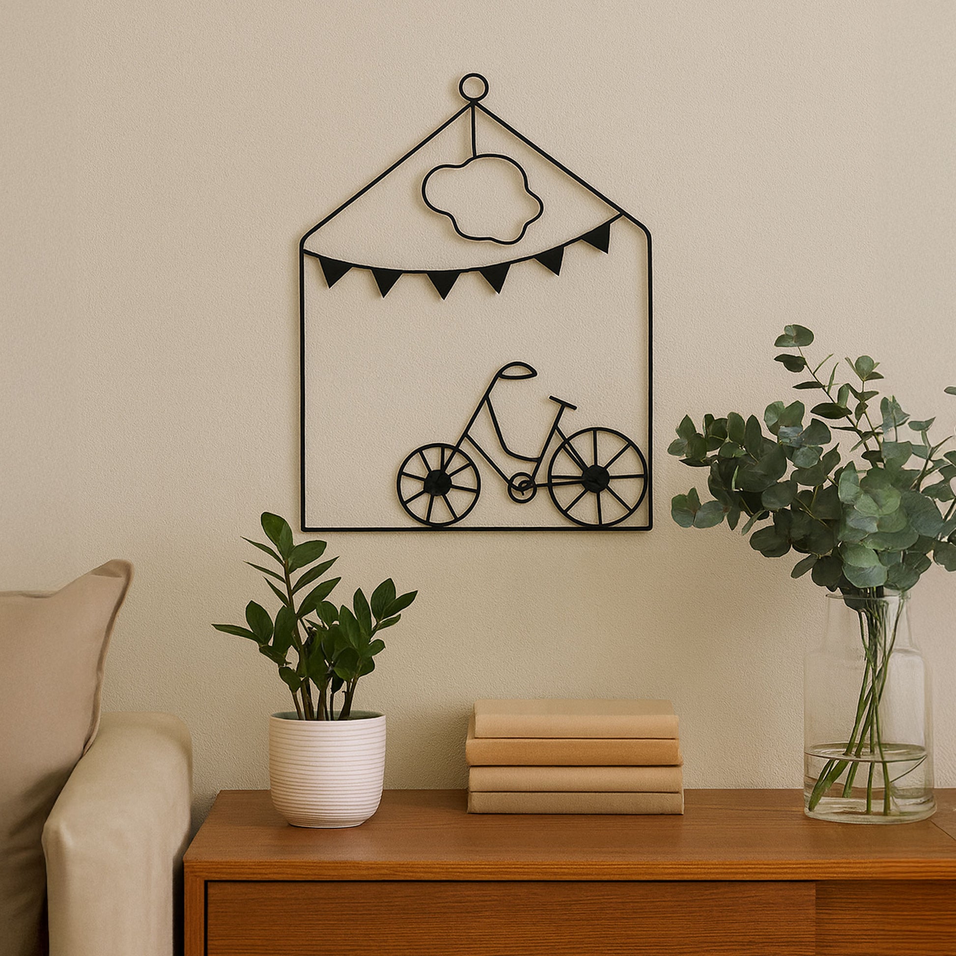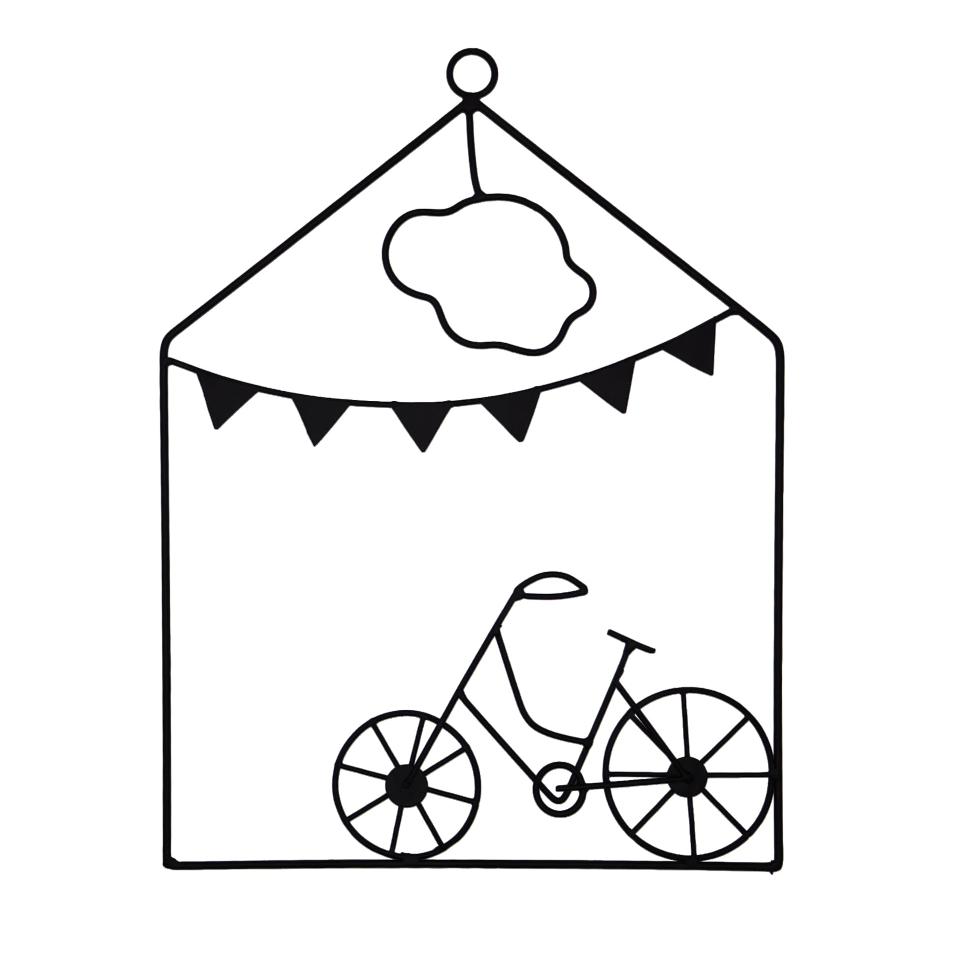 Das filigrane Design zeigt ein Fahrrad unter einer kleinen Wolke und einer dekorativen Girlande – perfekt für alle, die schlichte Formen mit einer kreativen Note lieben. Ob im Wohnzimmer, im Kinderzimmer, im Flur oder im Büro: Dieses Wandbild setzt charmante Akzente und passt sich dank des minimalistischen Designs jedem Einrichtungsstil an.